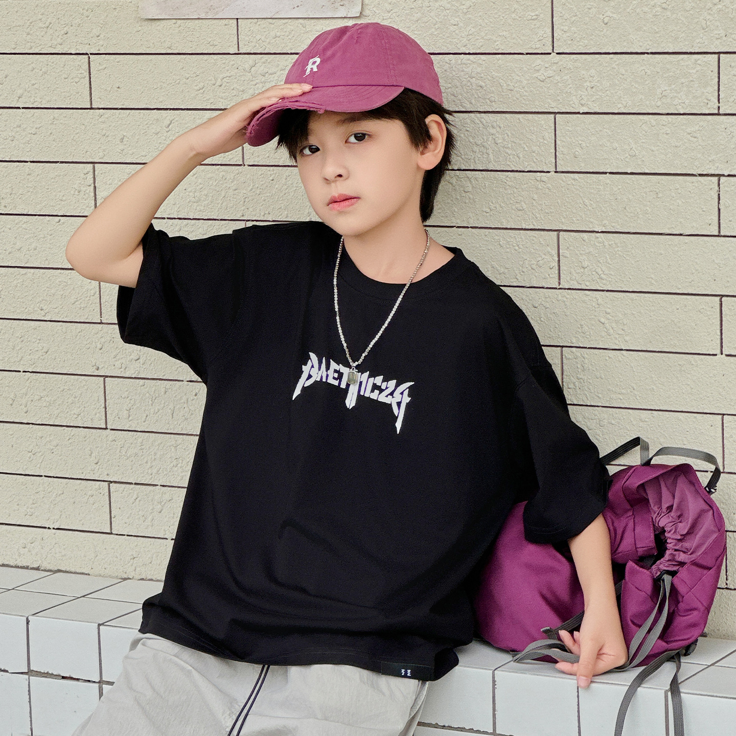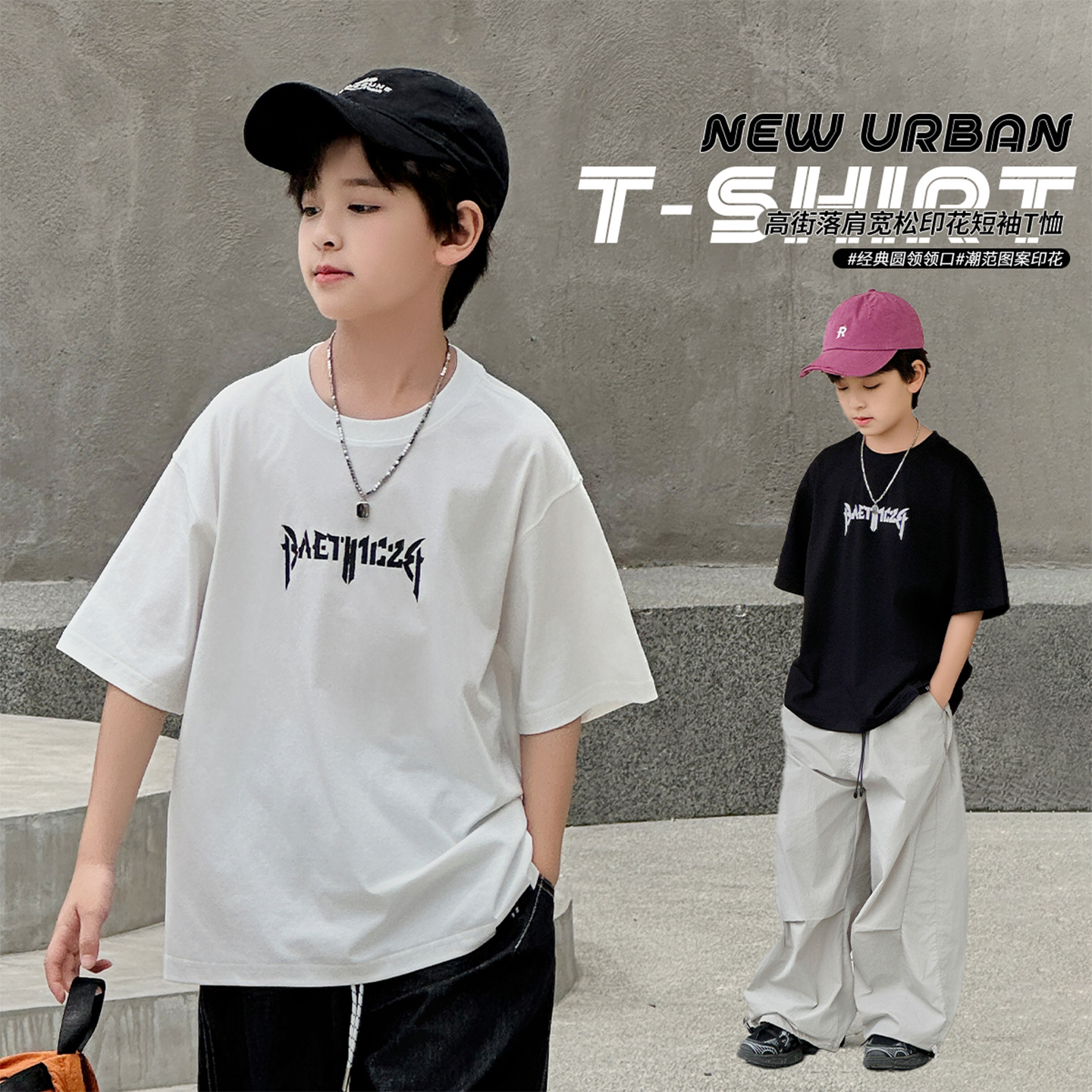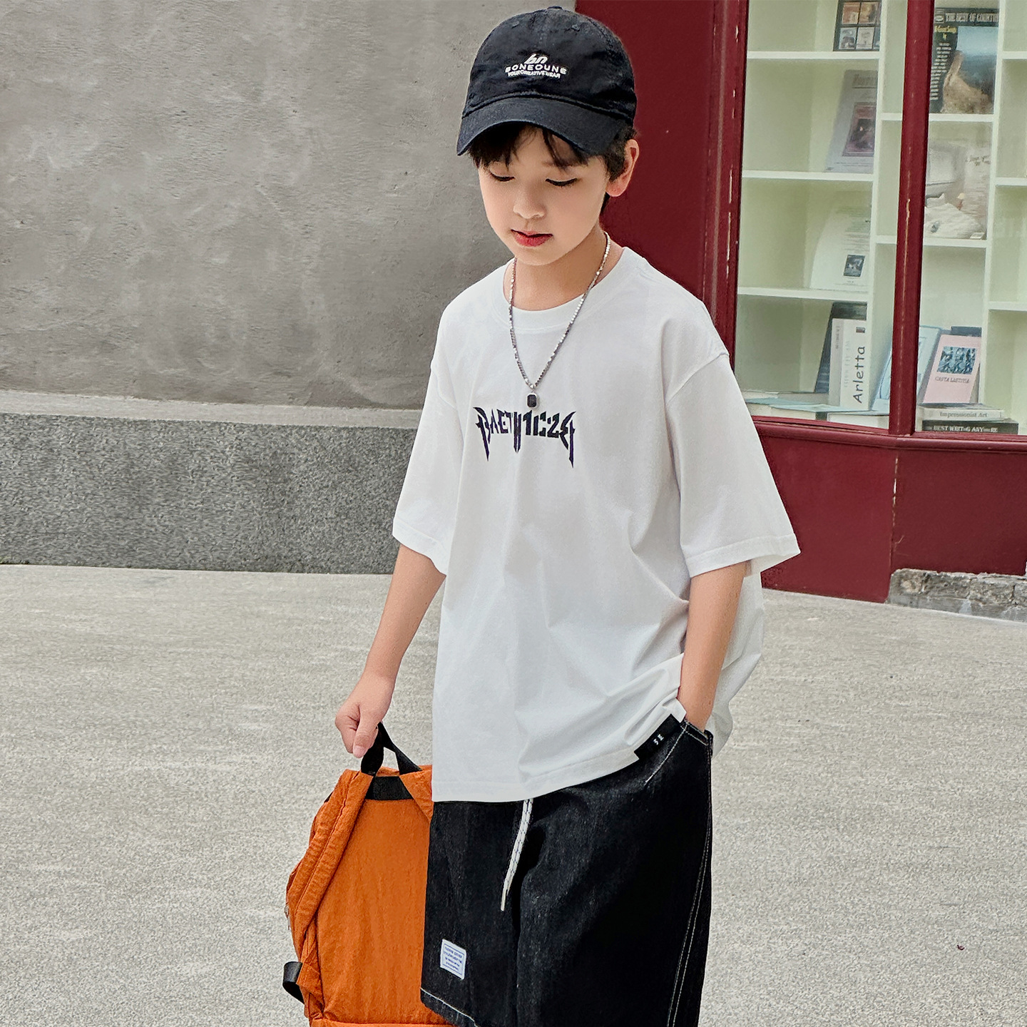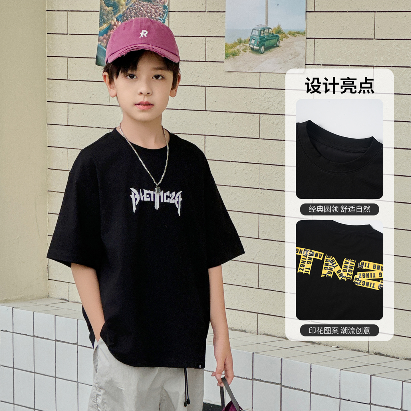 아동용 반팔 티셔츠 2025 소년 여름 신작 트렌디 브랜드 프린트 시원한 디자인 루즈한 반팔 탑스토어 가기