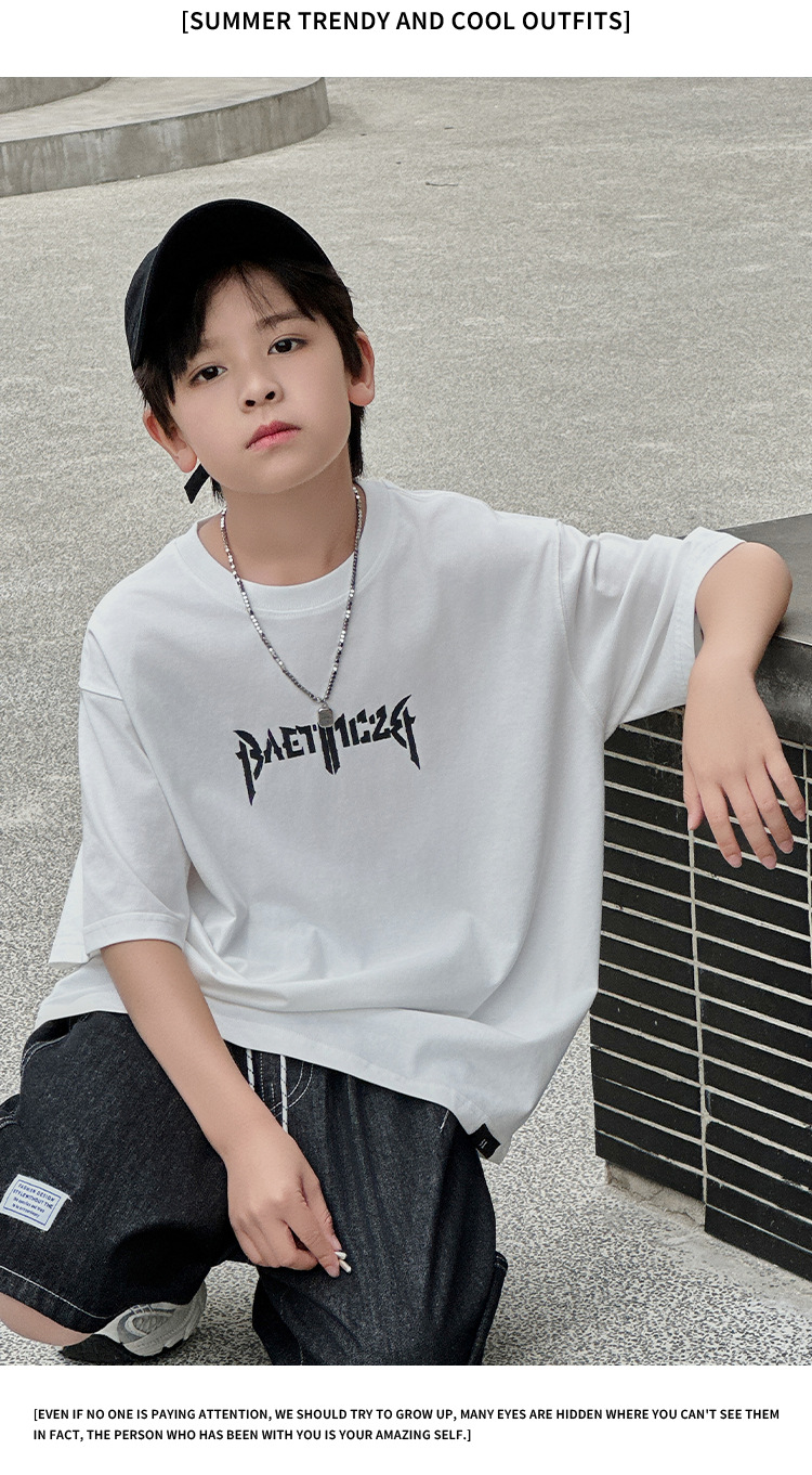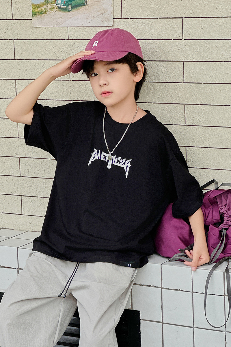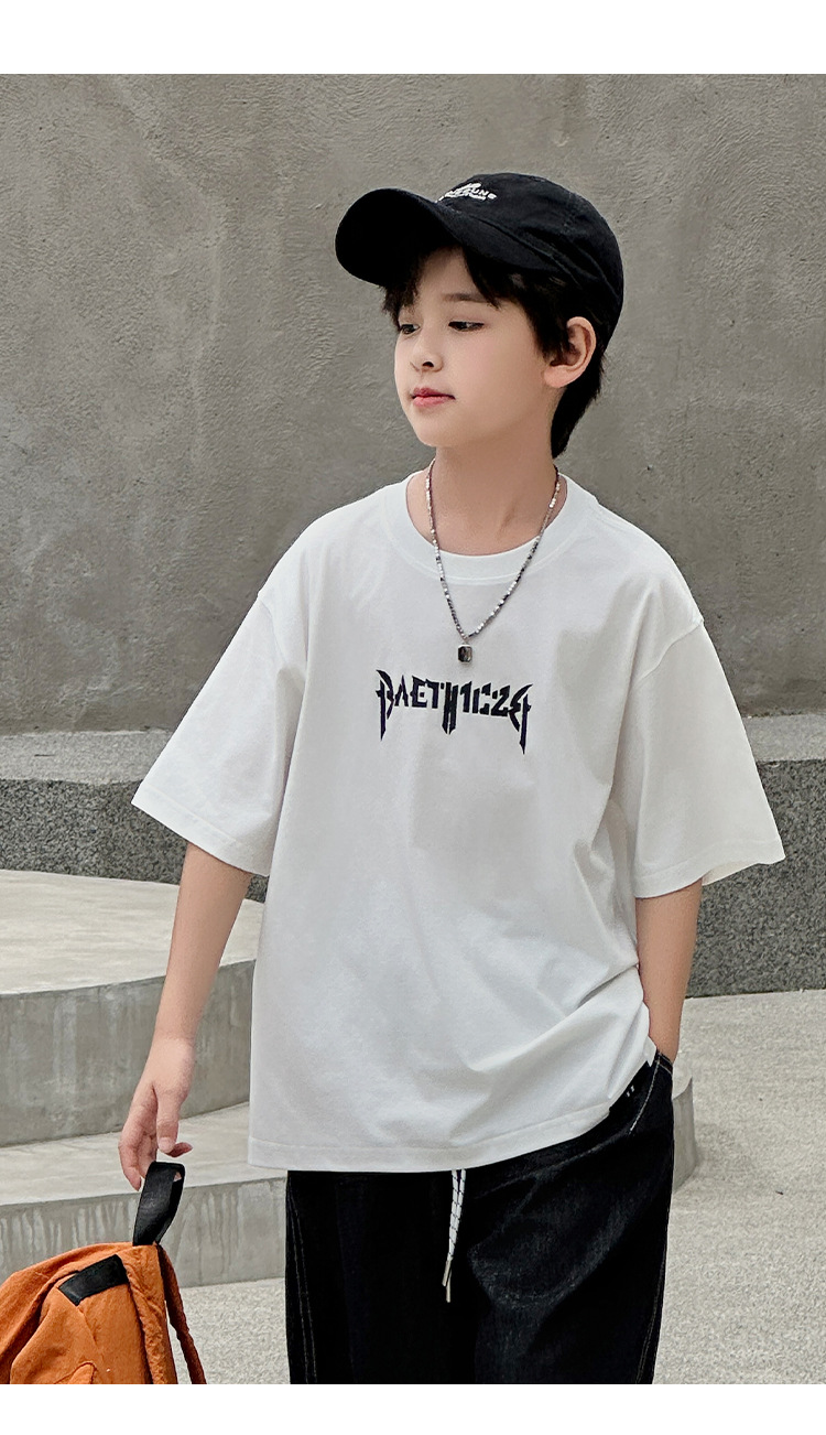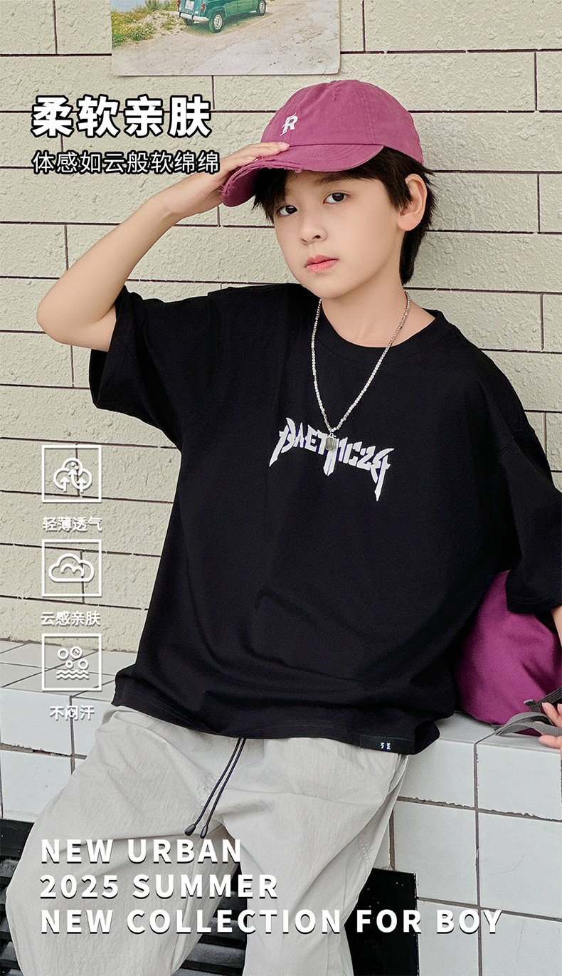 아동용 반팔 티셔츠 2025 소년 여름 신작 트렌디 브랜드 프린트 시원한 디자인 루즈한 반팔 탑