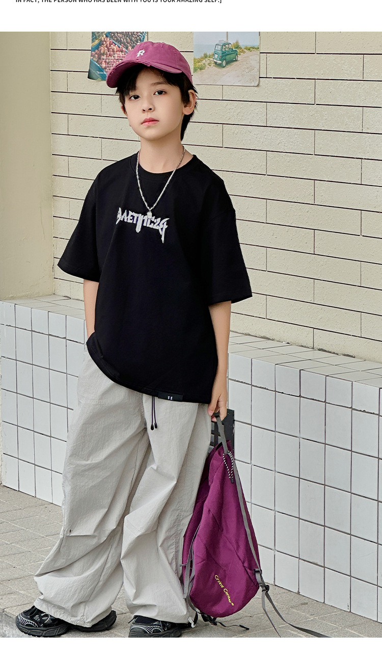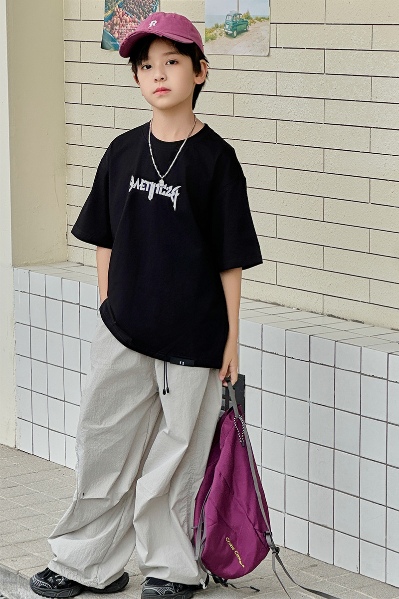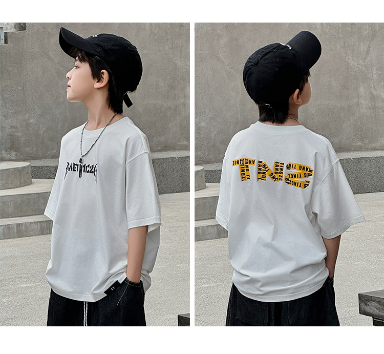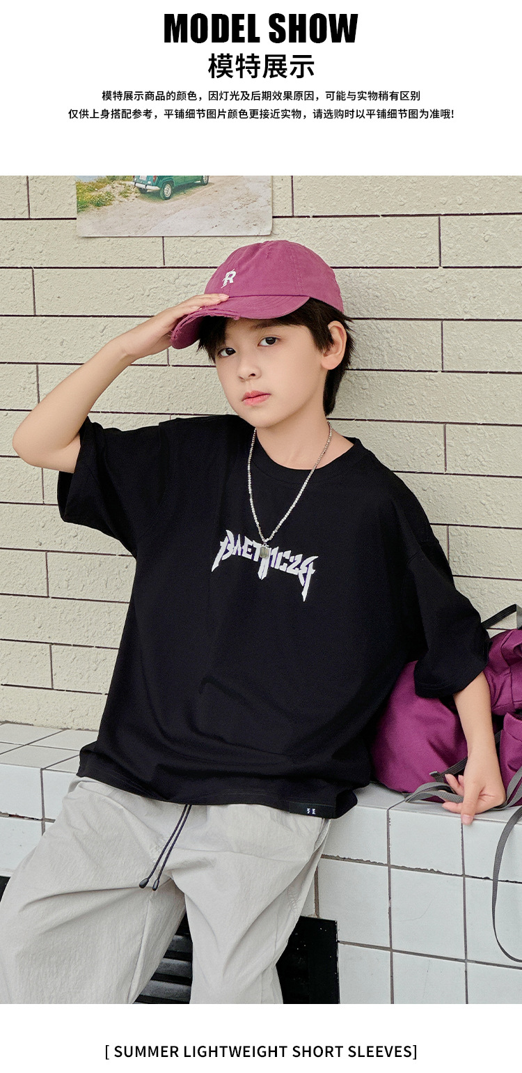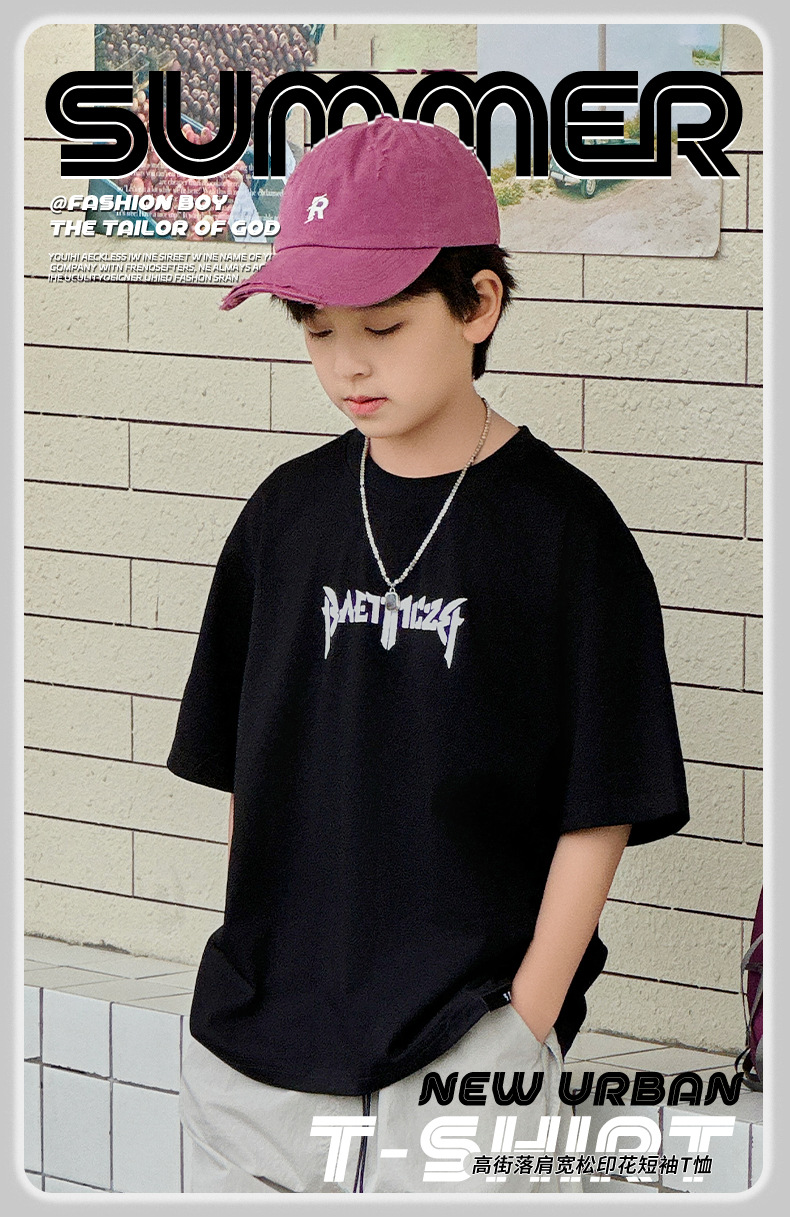 아동용 반팔 티셔츠 2025 소년 여름 신작 트렌디 브랜드 프린트 시원한 디자인 루즈한 반팔 탑