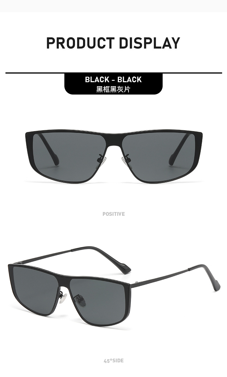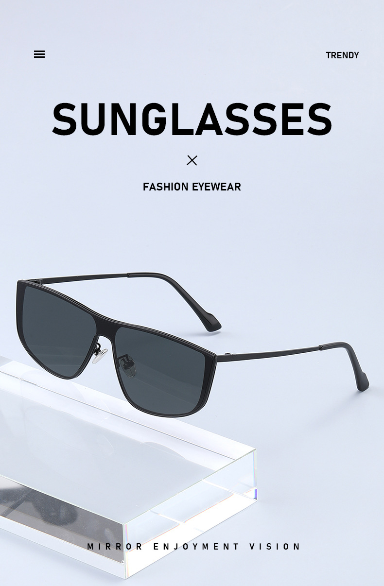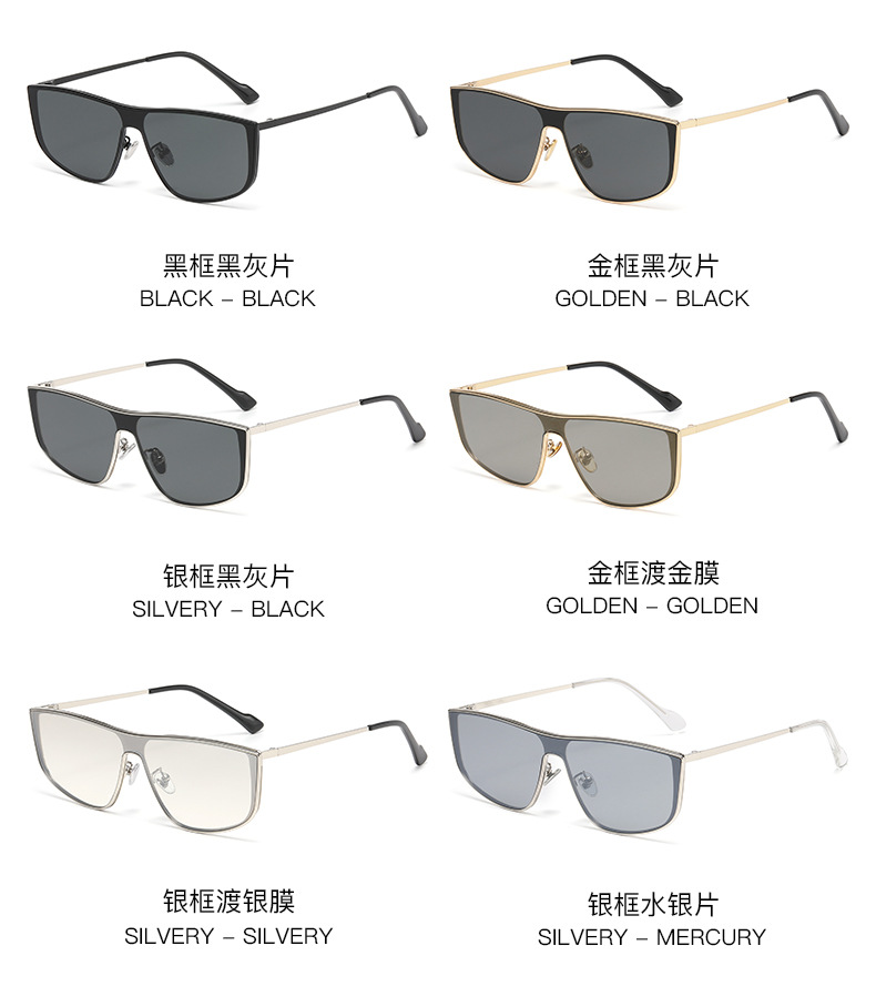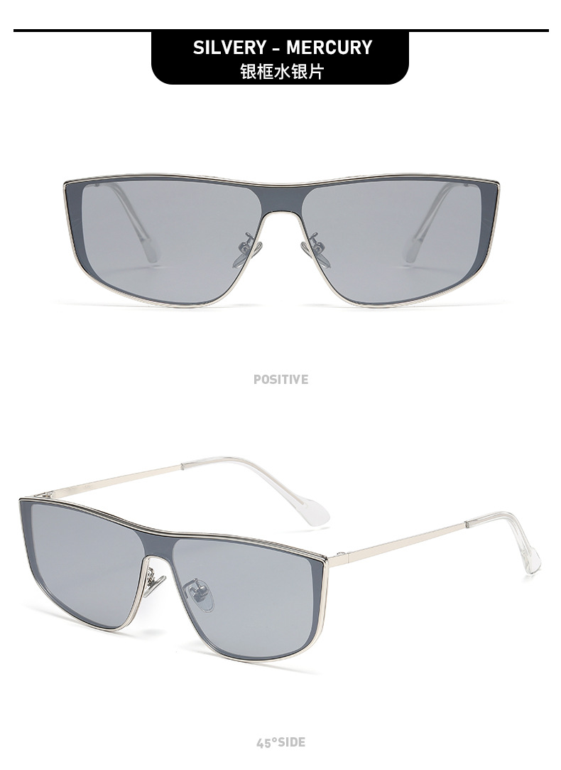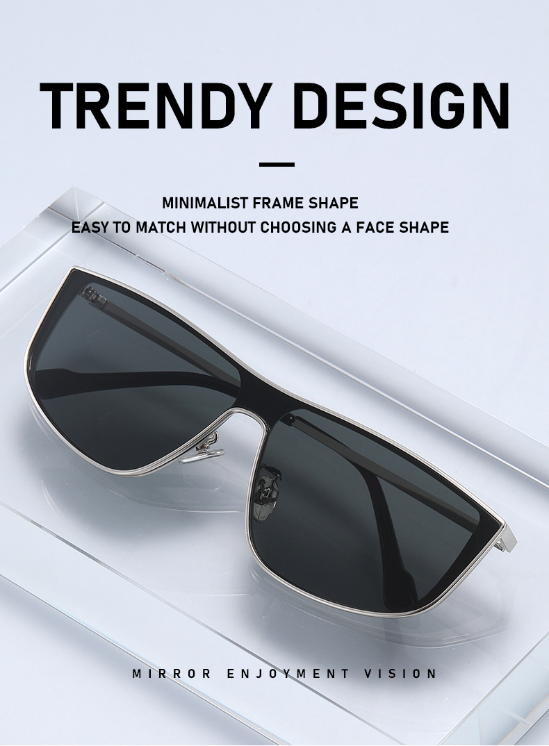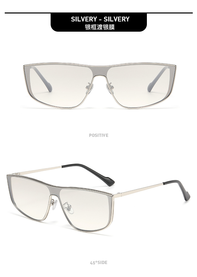 메탈 실버 프레임 그레이 일체형 선글라스 고급형 2025 슬리밍 사진 촬영 선글라스 사각 및 둥근 얼굴용