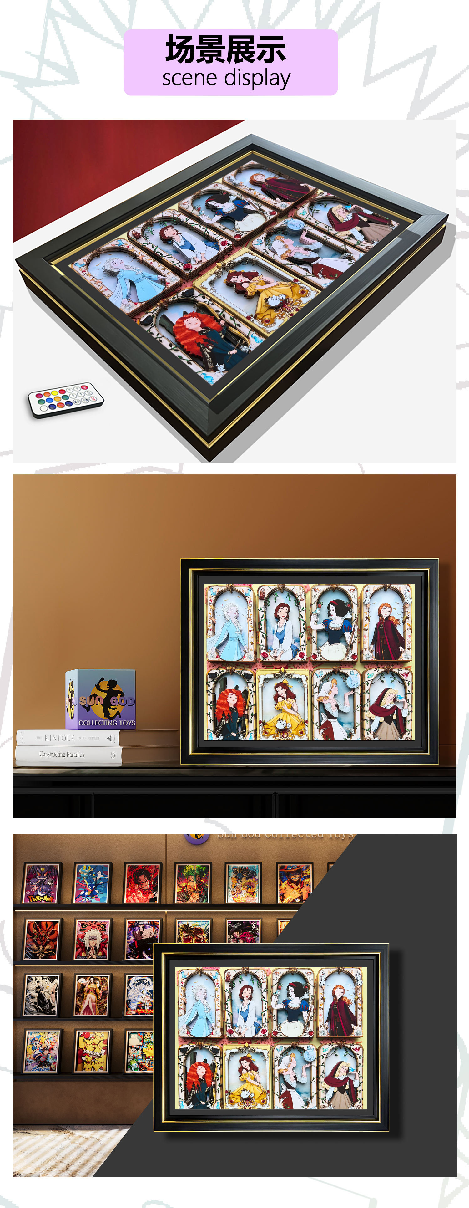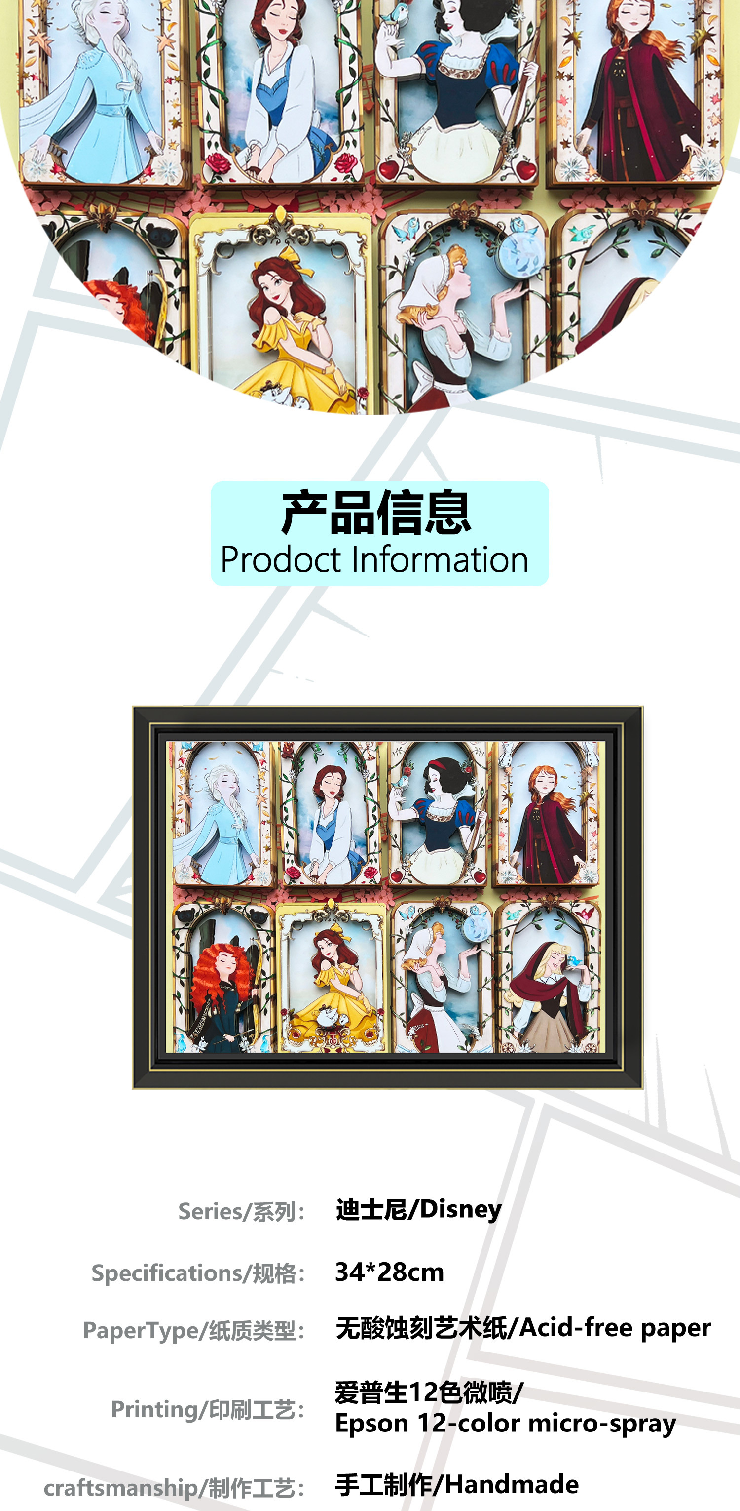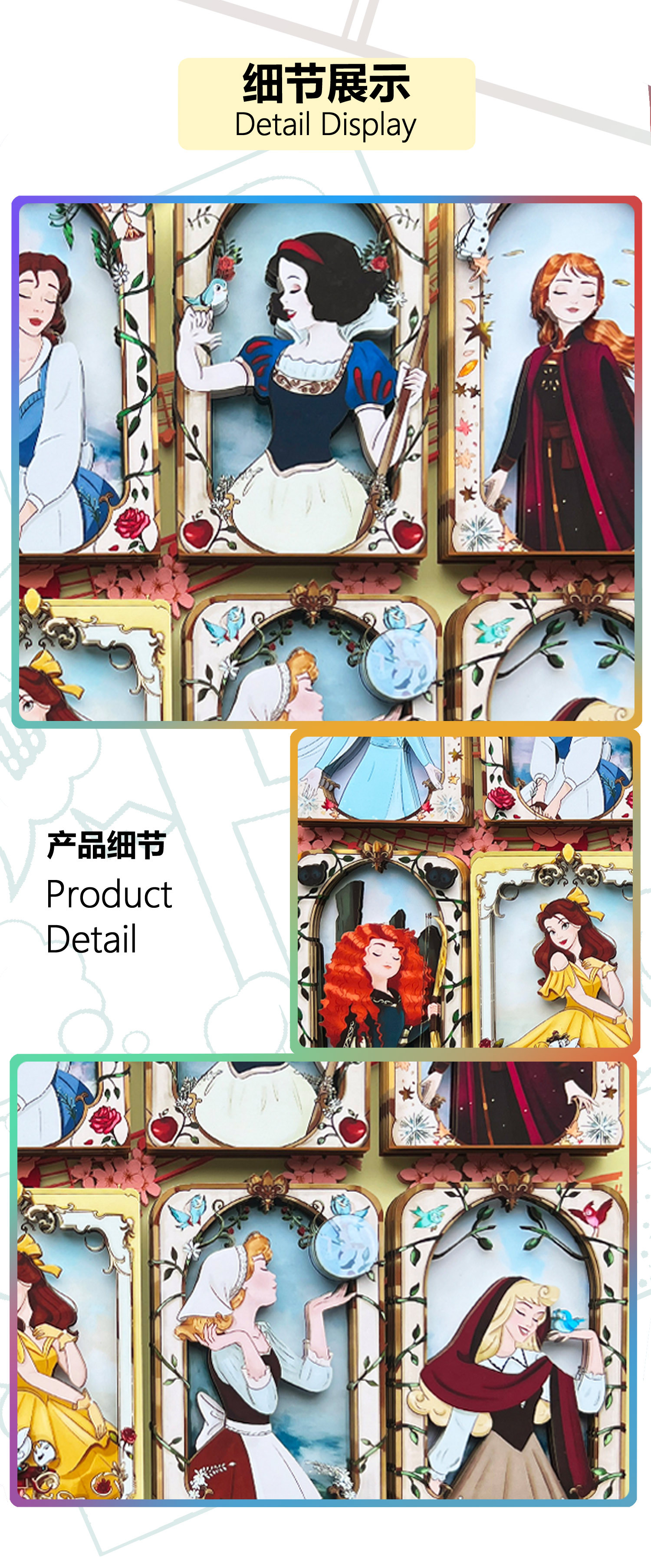 [공장 직접 판매] 3D 입체 사진 프레임 만화 동화 공주 엘사 크리 에이 티브 종이 조각 절묘한 테이블 선물스토어 가기