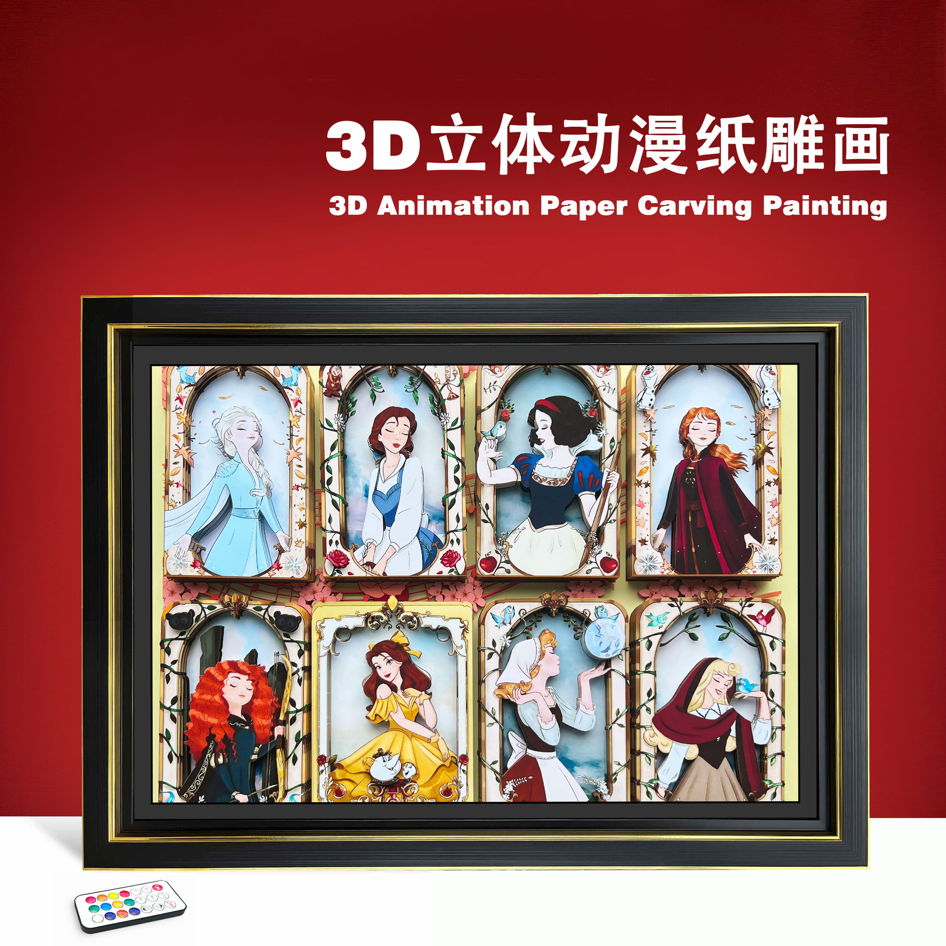 [공장 직접 판매] 3D 입체 사진 프레임 만화 동화 공주 엘사 크리 에이 티브 종이 조각 절묘한 테이블 선물