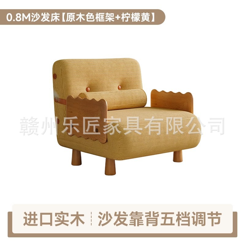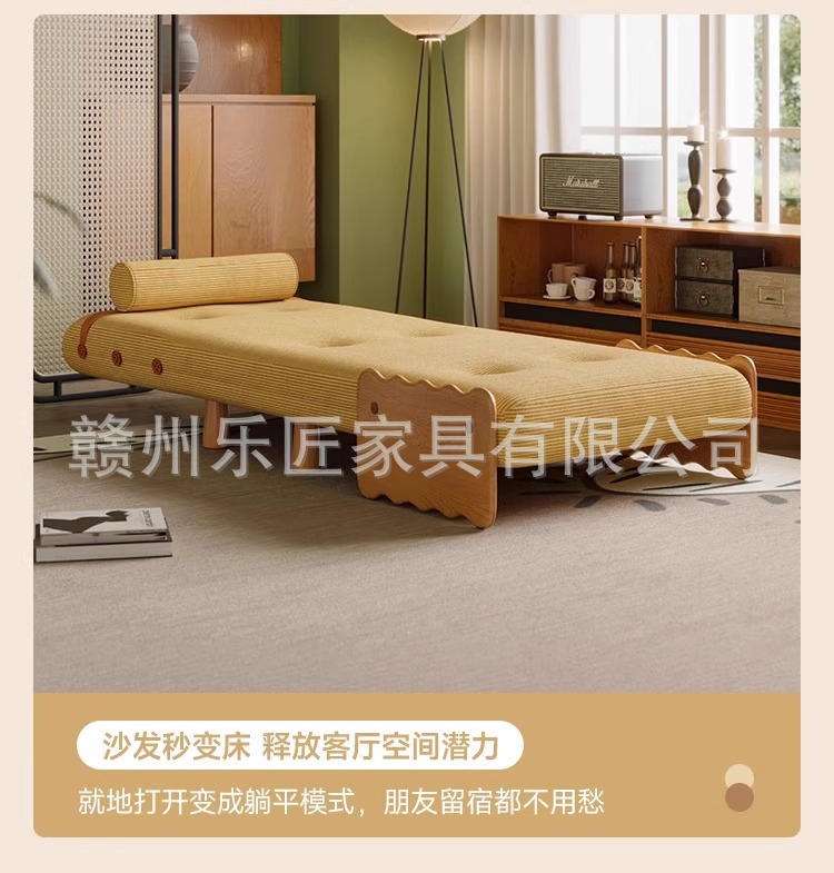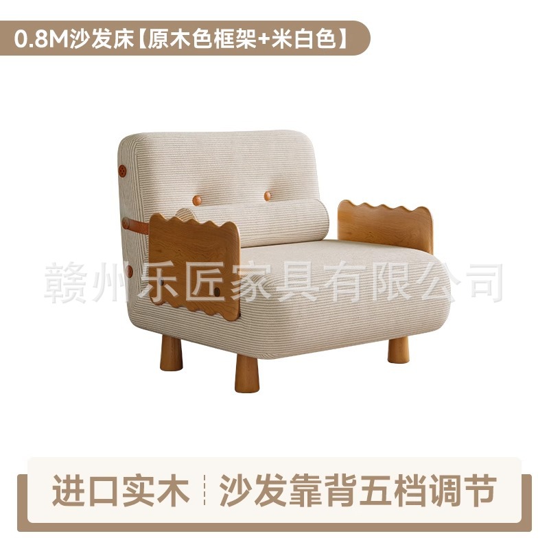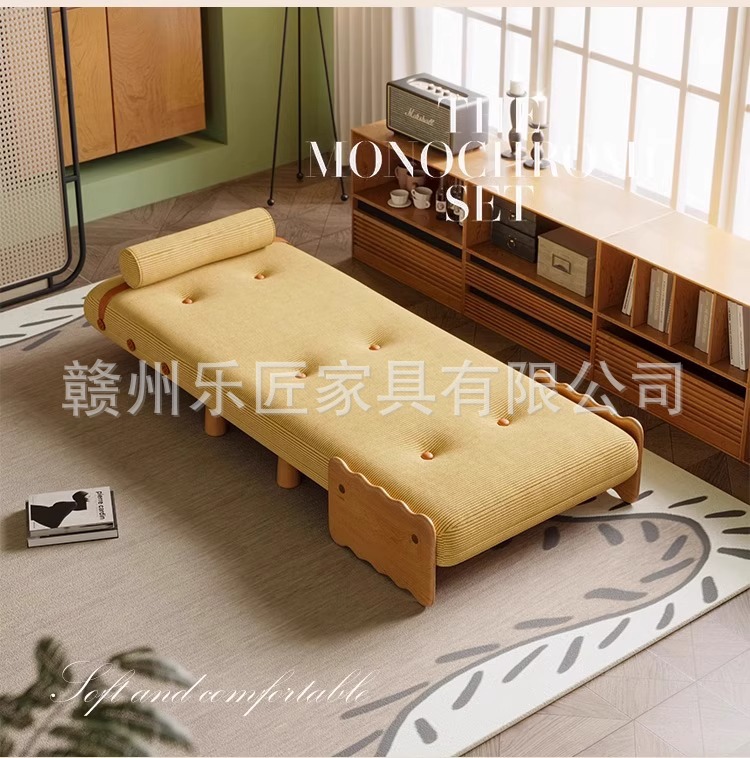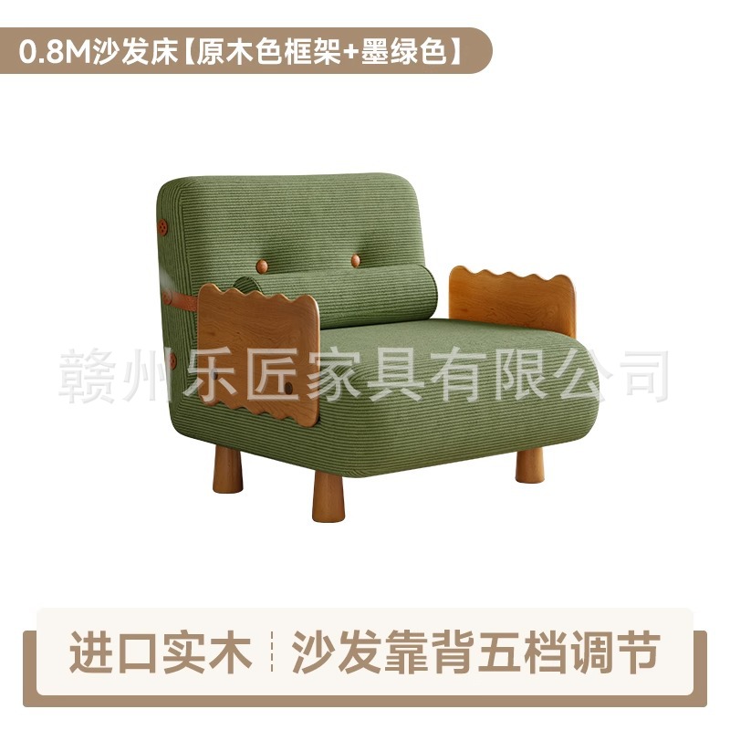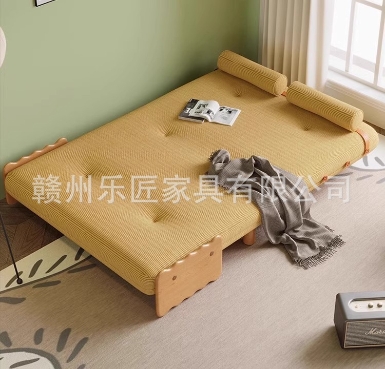 현대적인 미니멀리스트 단단한 나무 접이식 소파 베드 이중 목적 코듀로이 싱글 다기능 침실 작은 아파트 슬라이딩 침대