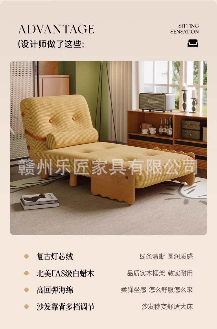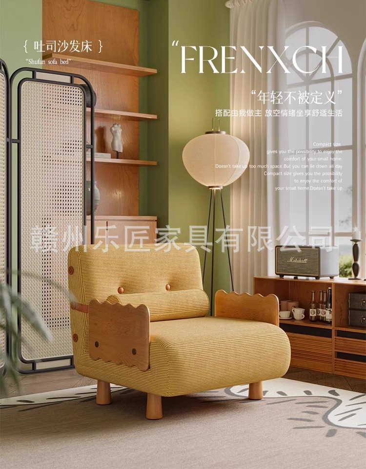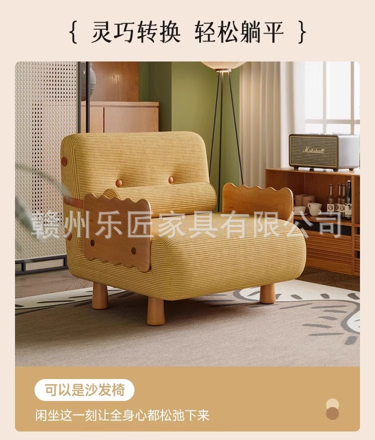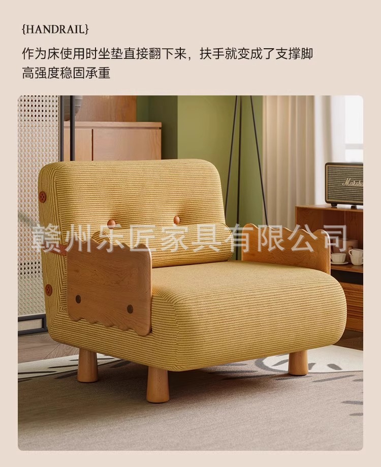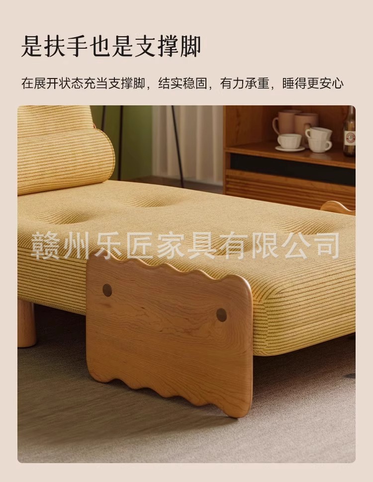 현대적인 미니멀리스트 단단한 나무 접이식 소파 베드 이중 목적 코듀로이 싱글 다기능 침실 작은 아파트 슬라이딩 침대