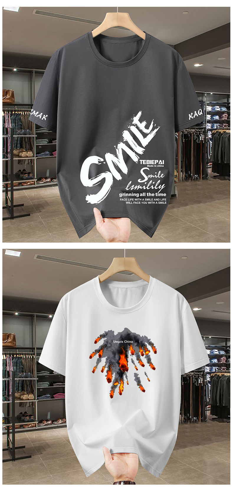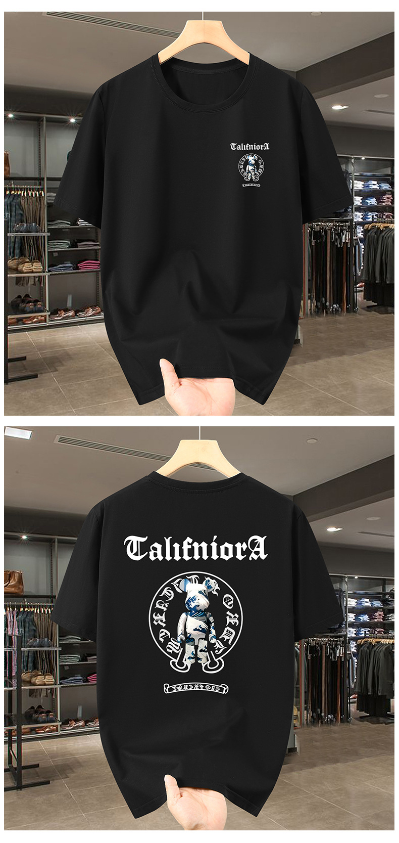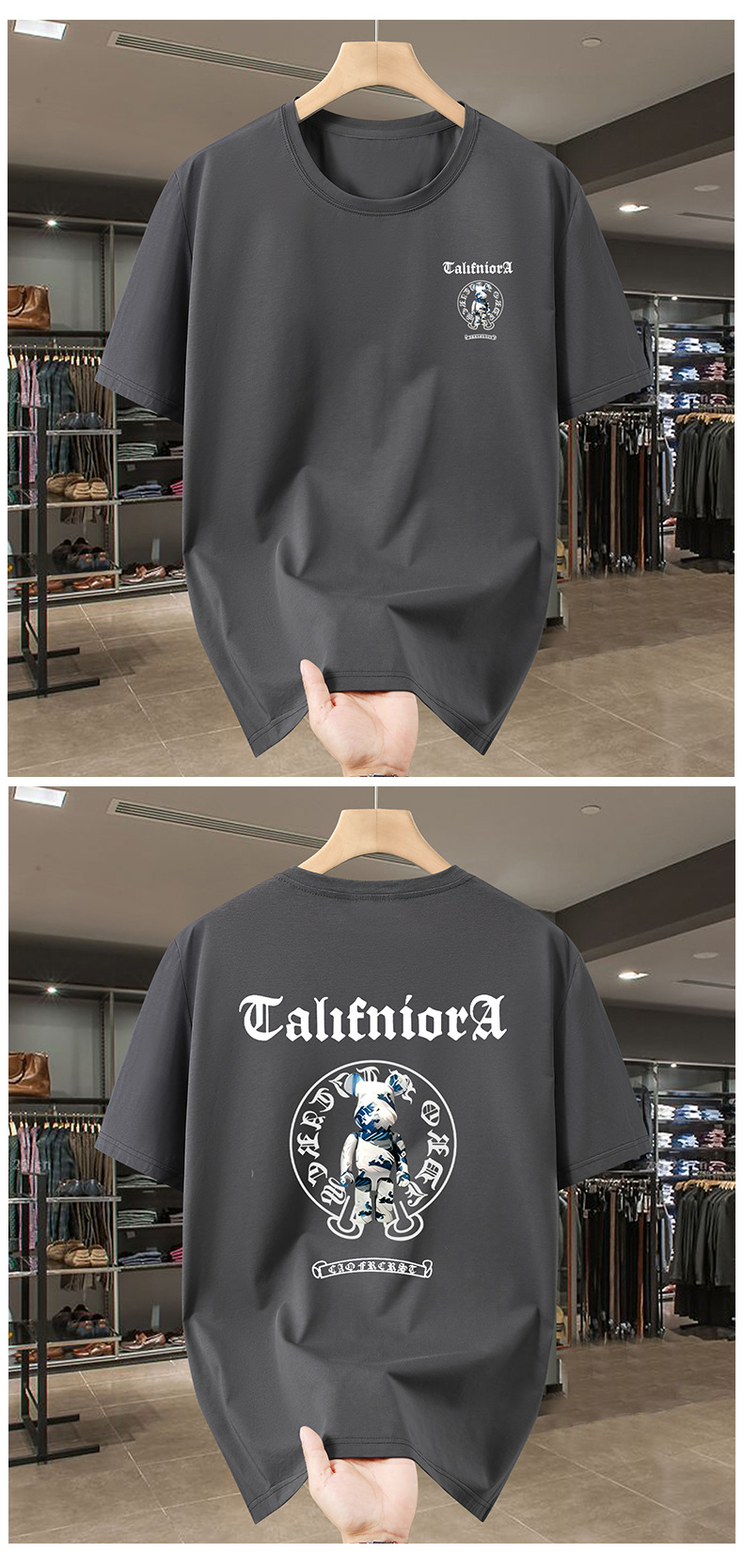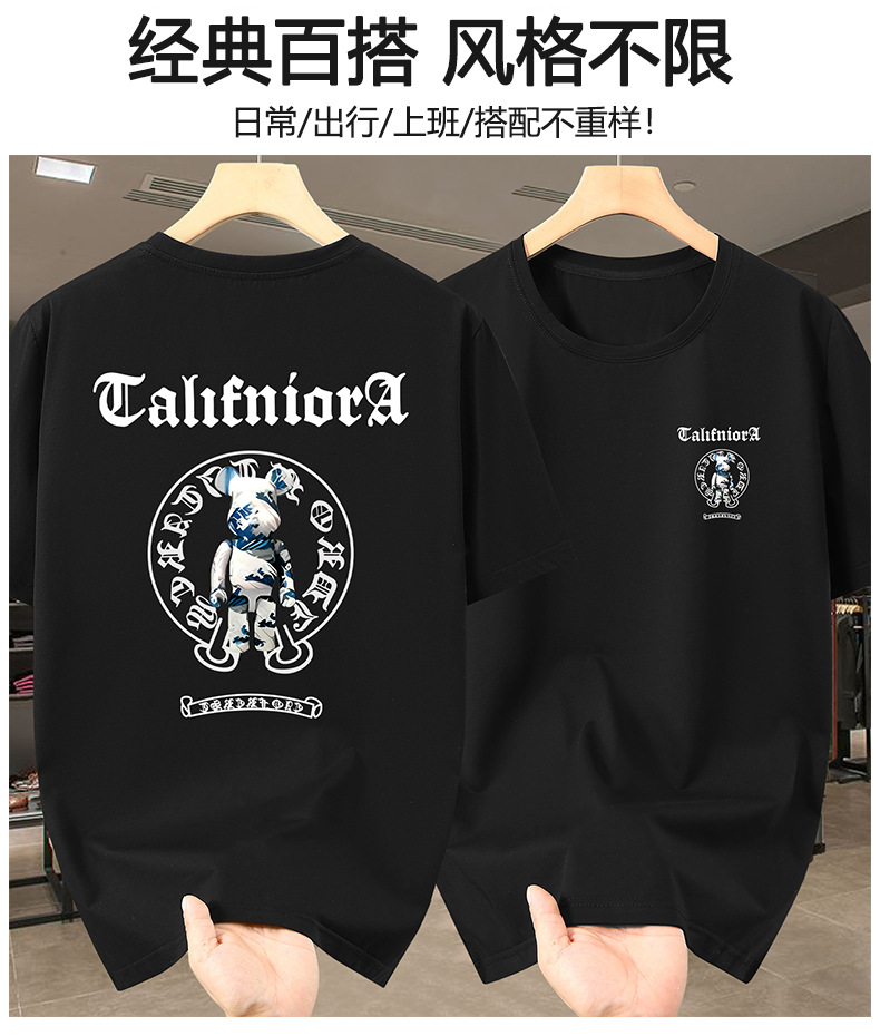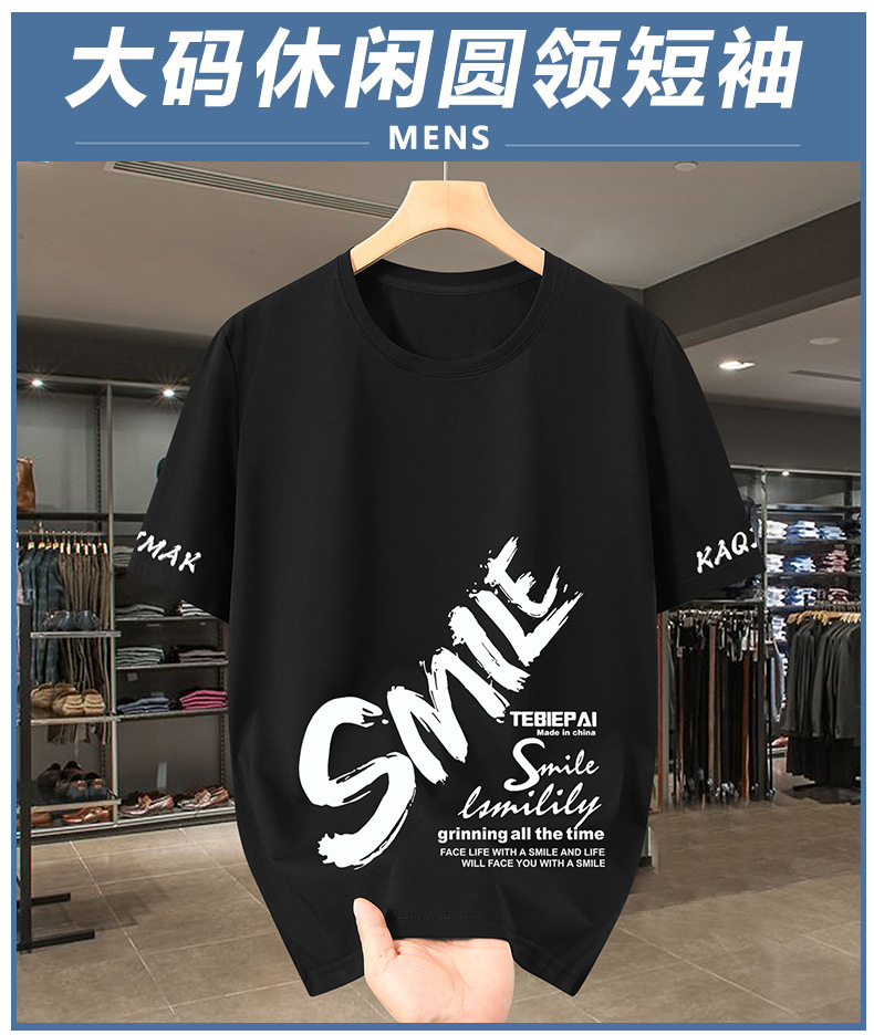 2025 여름 플러스 사이즈 라운드 넥 티셔츠 남성 루즈 캐주얼 프린트 탑 150kg스토어 가기