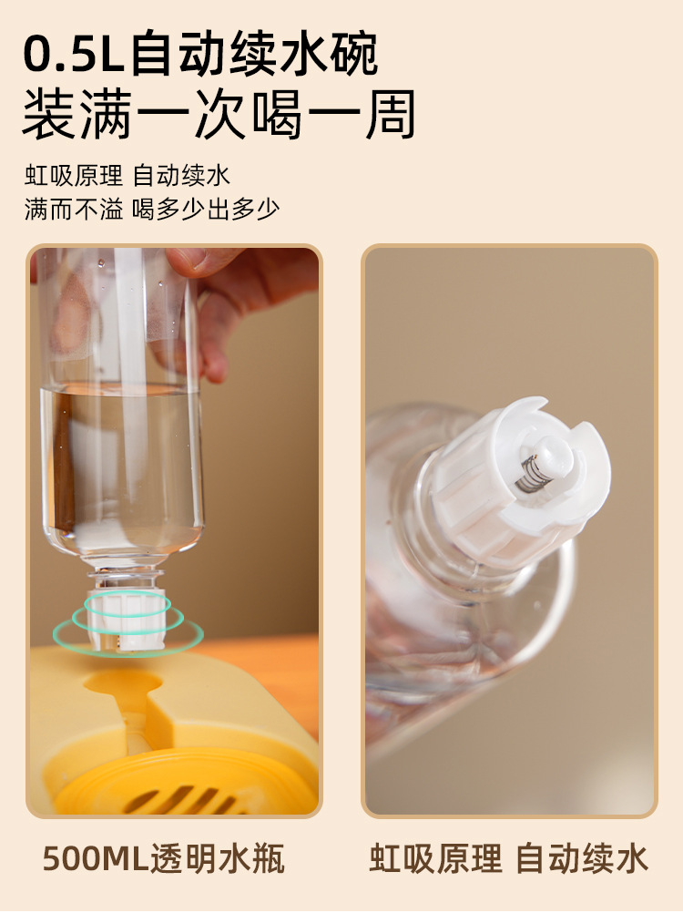 • 크림색 노란색 - 대용량 물병 + 방습 배플, 식수 및 먹이 공급 기능이 통합되어 있습니다.
