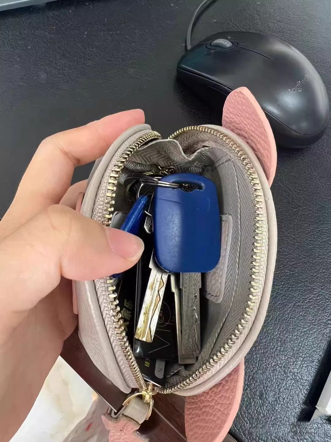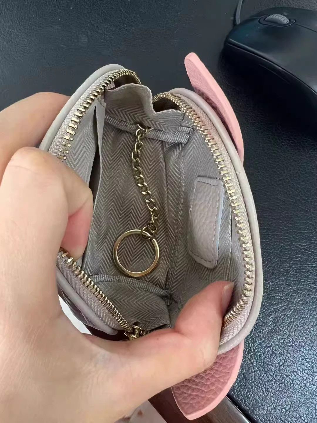 정품 가죽 질감 지갑 열쇠 가방 투인원 2025 틈새 귀여운 경량 동전 지갑 부드러운 가죽 작은 은화 가방 여성용