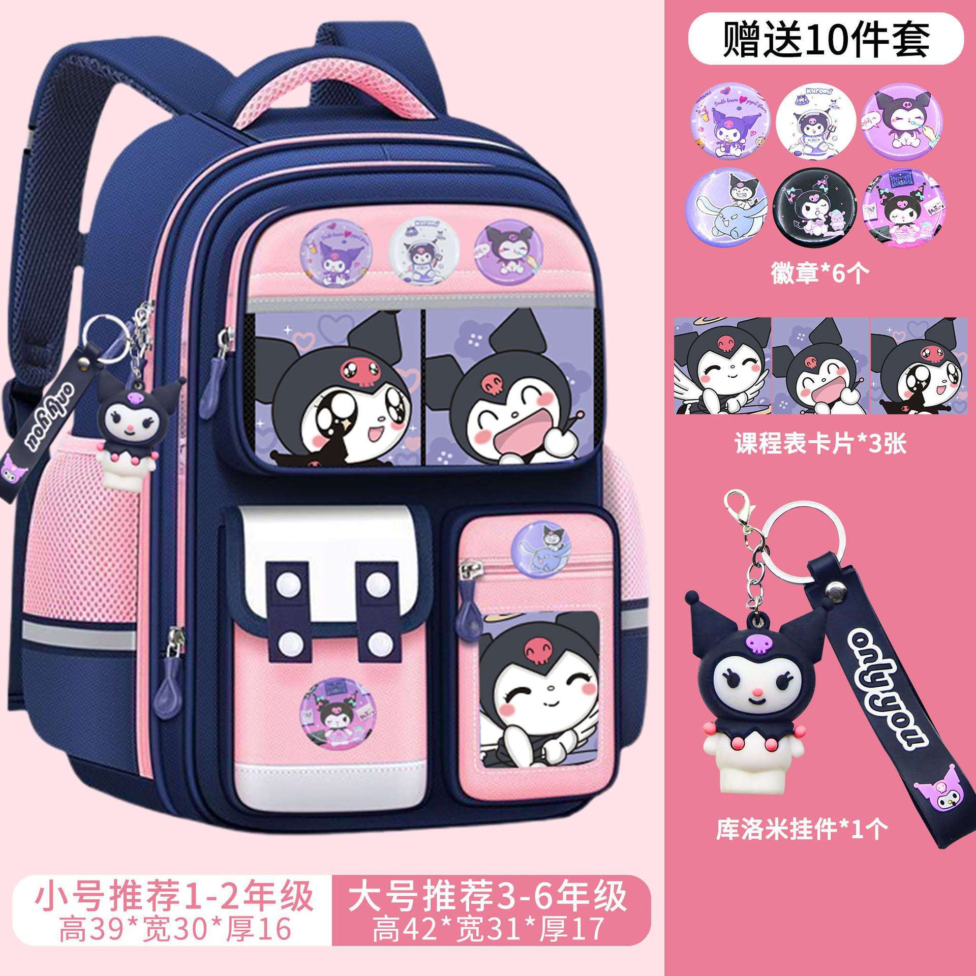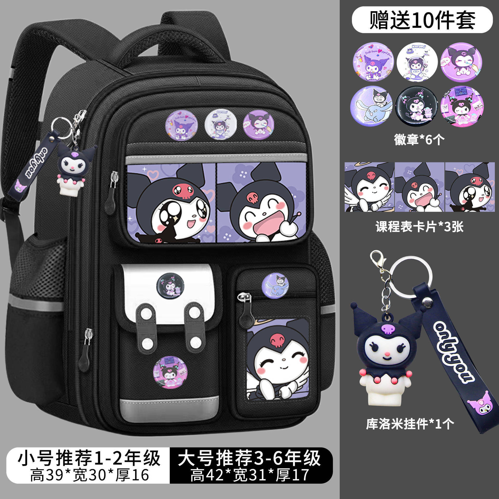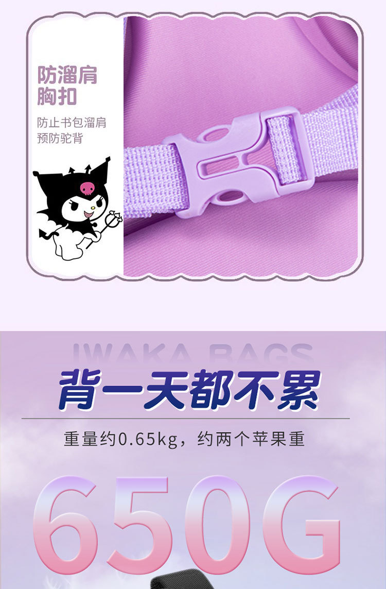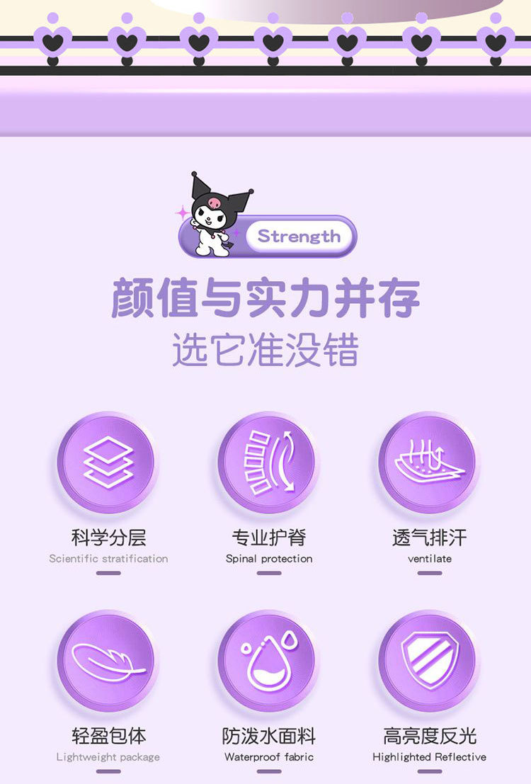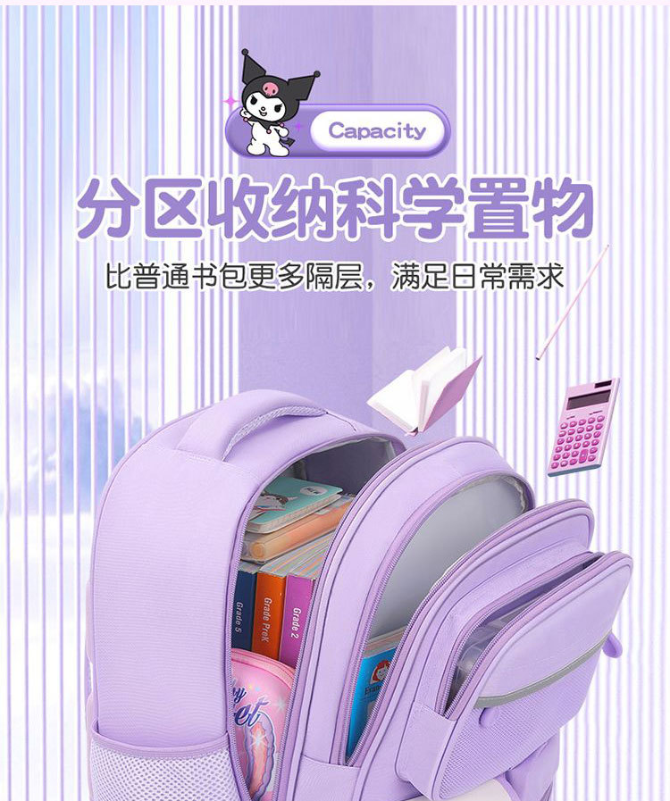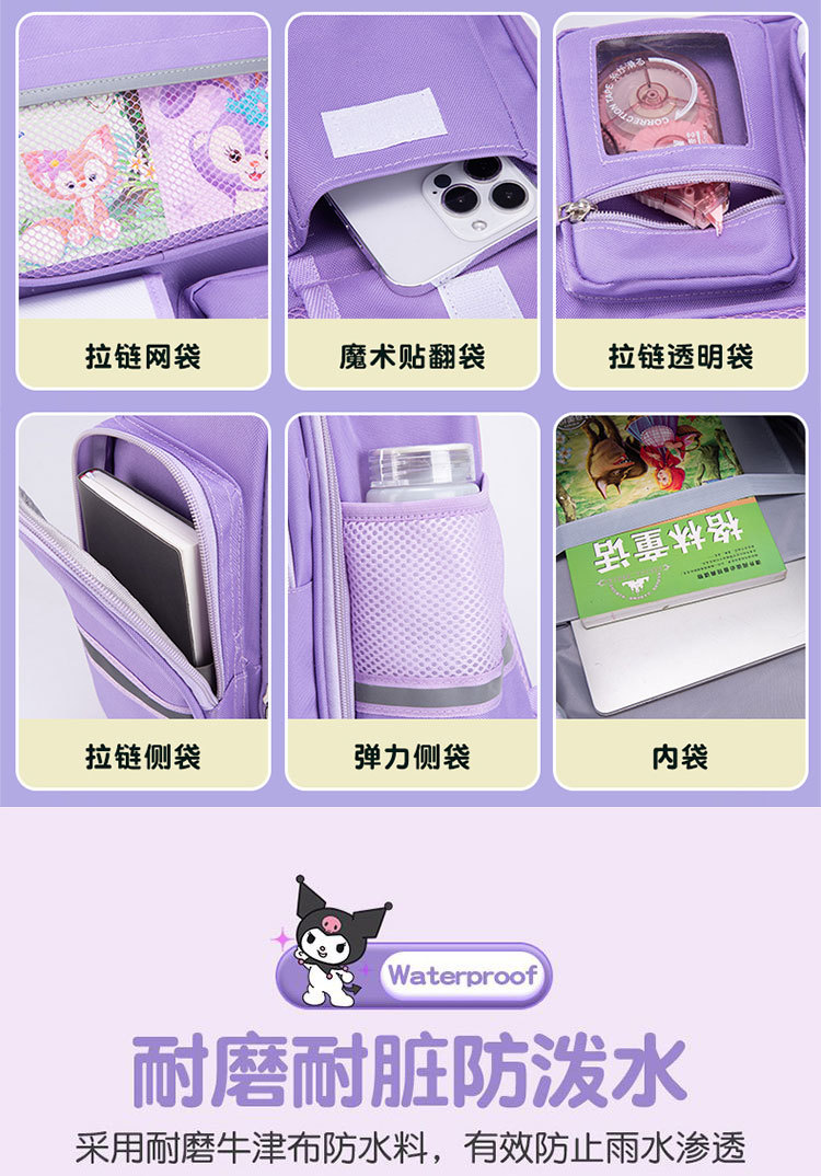 국경 간 인기 Kuromi 초등학교 가방 소녀 1-3-6 학년 소녀 대용량 어린이 배낭