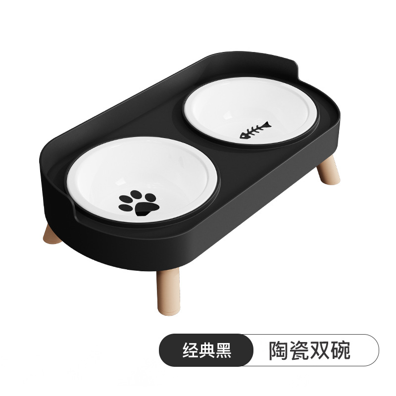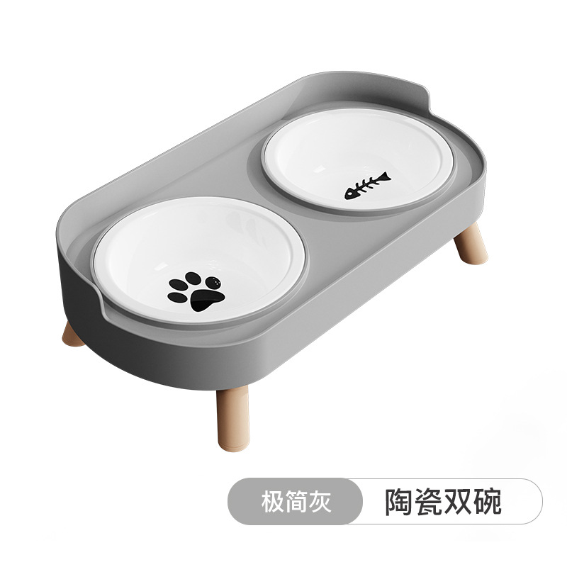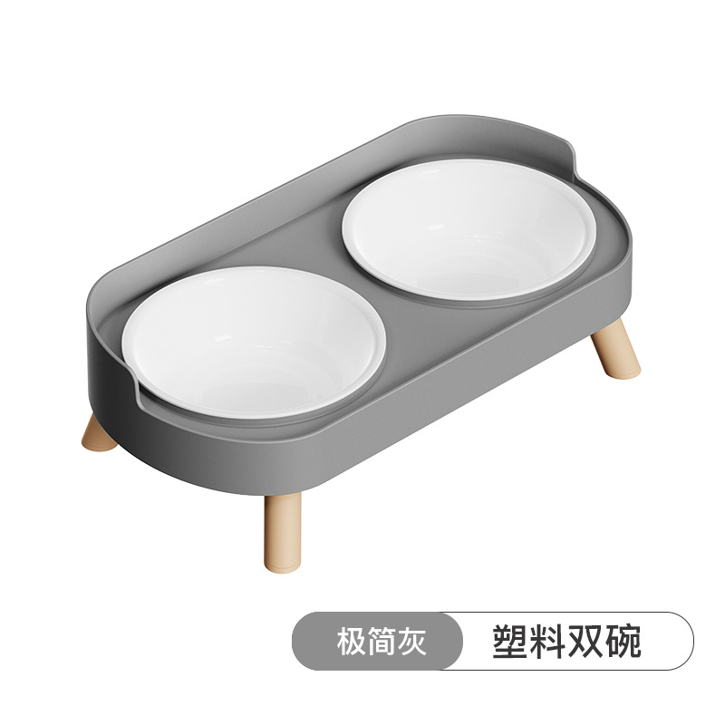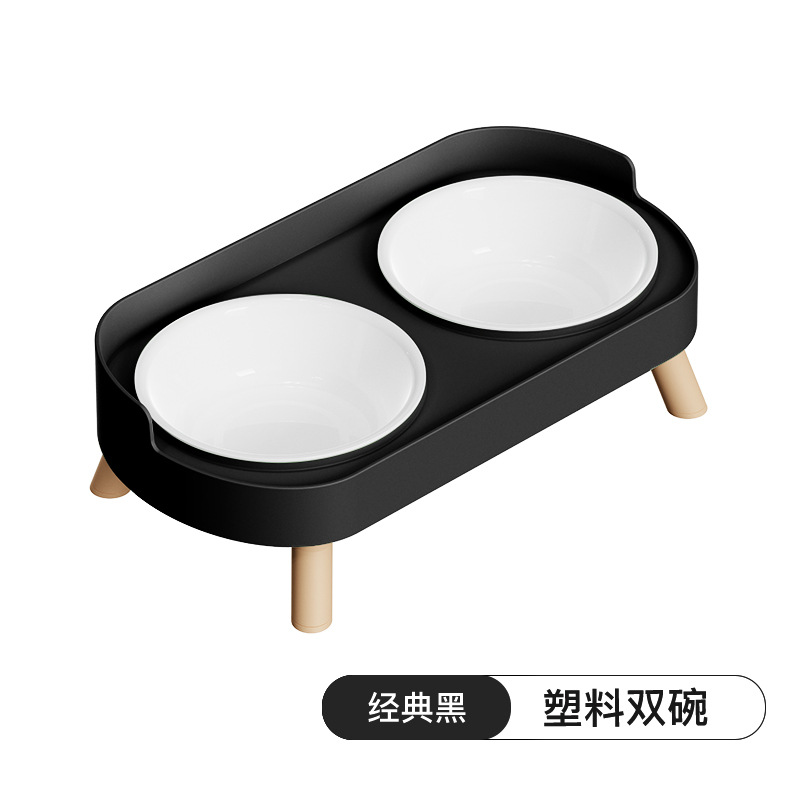 고양이 밥그릇 플라스틱 이중 그릇 고양이용 식기 목 보호 기능, 넘어짐 방지, 밥그릇과 물그릇 일체형