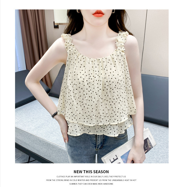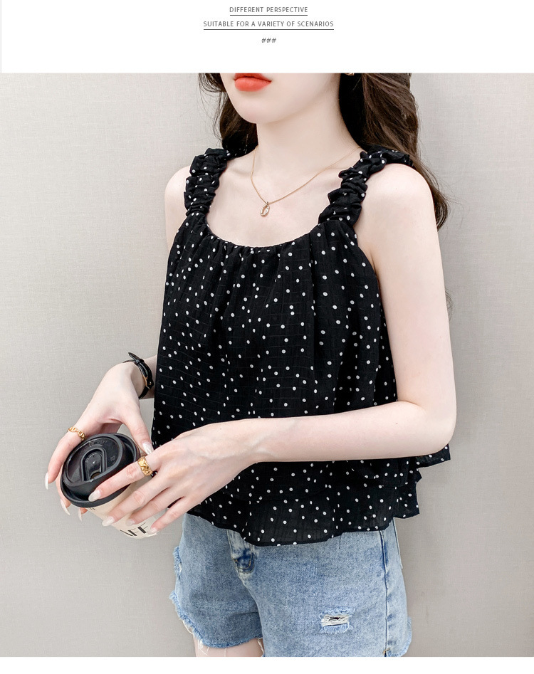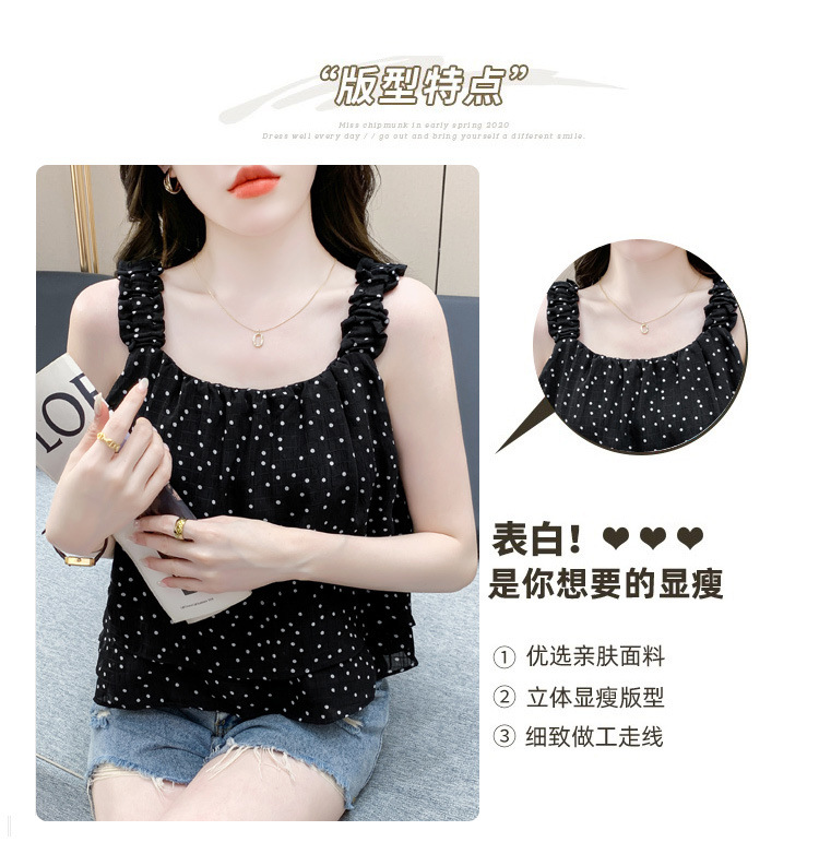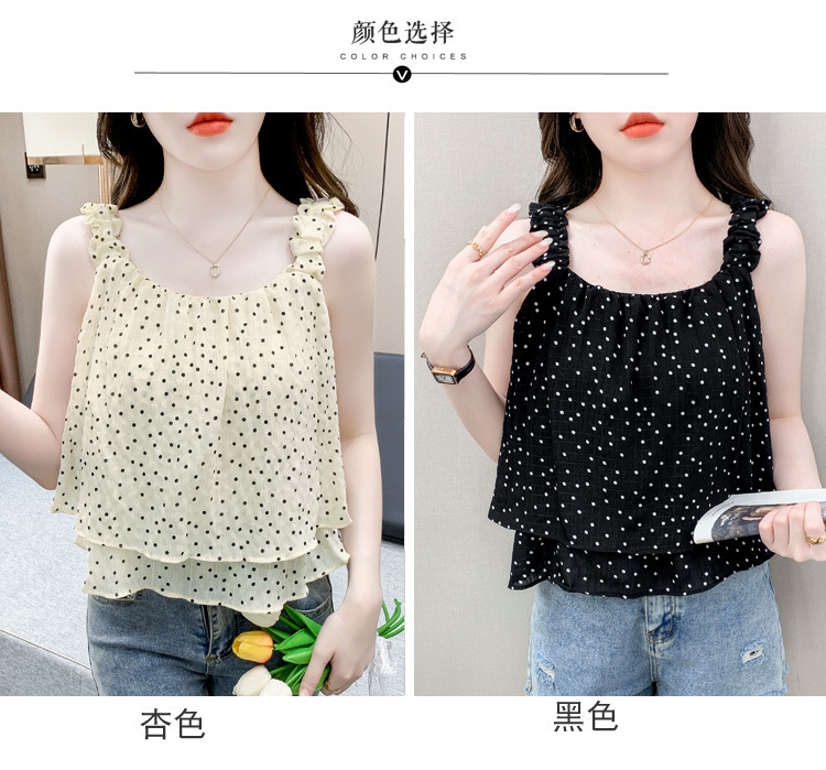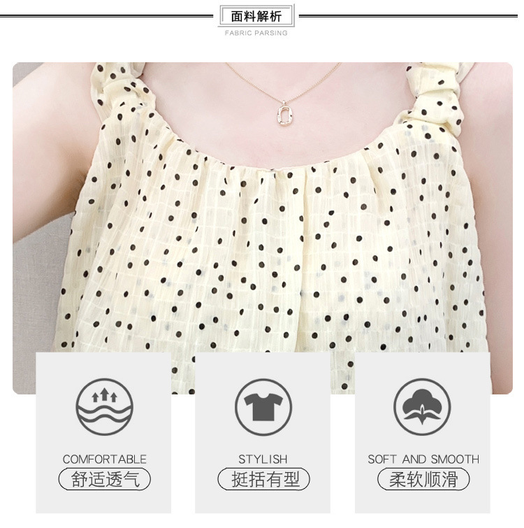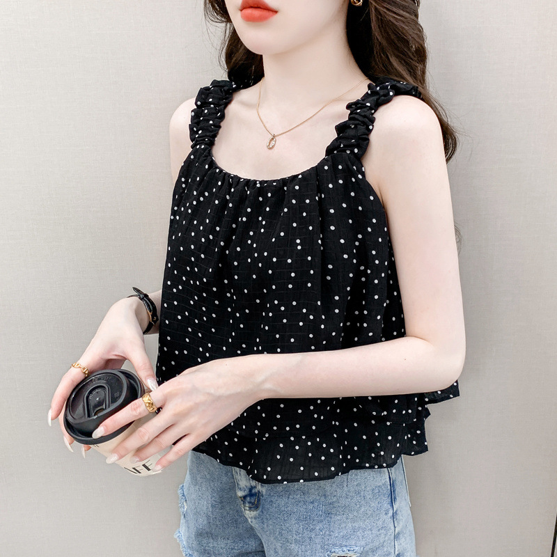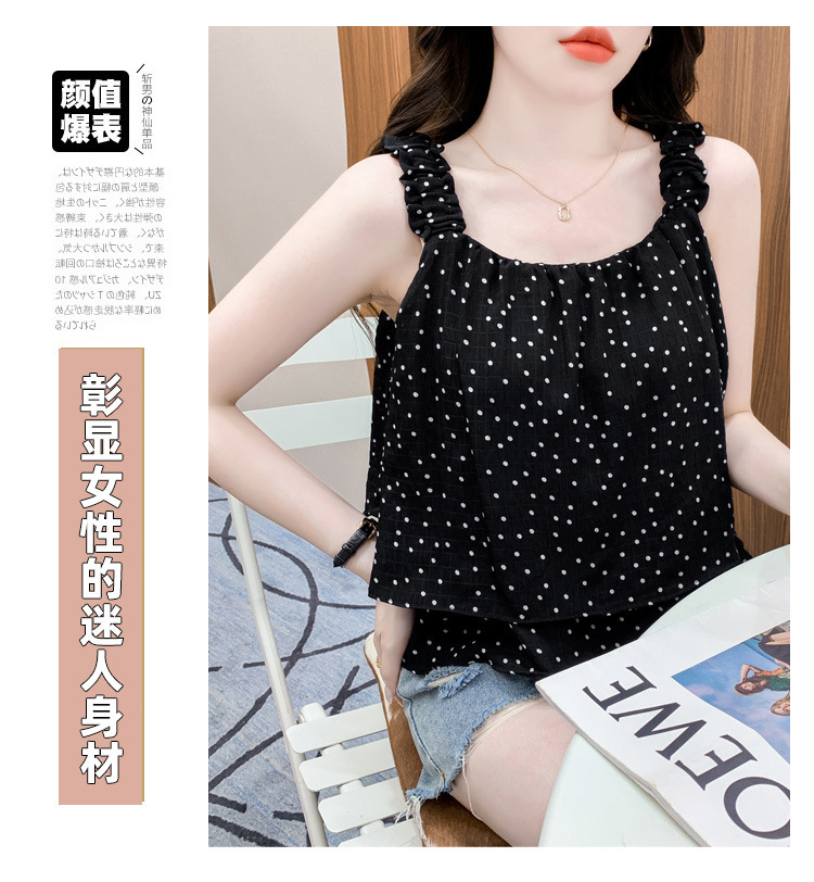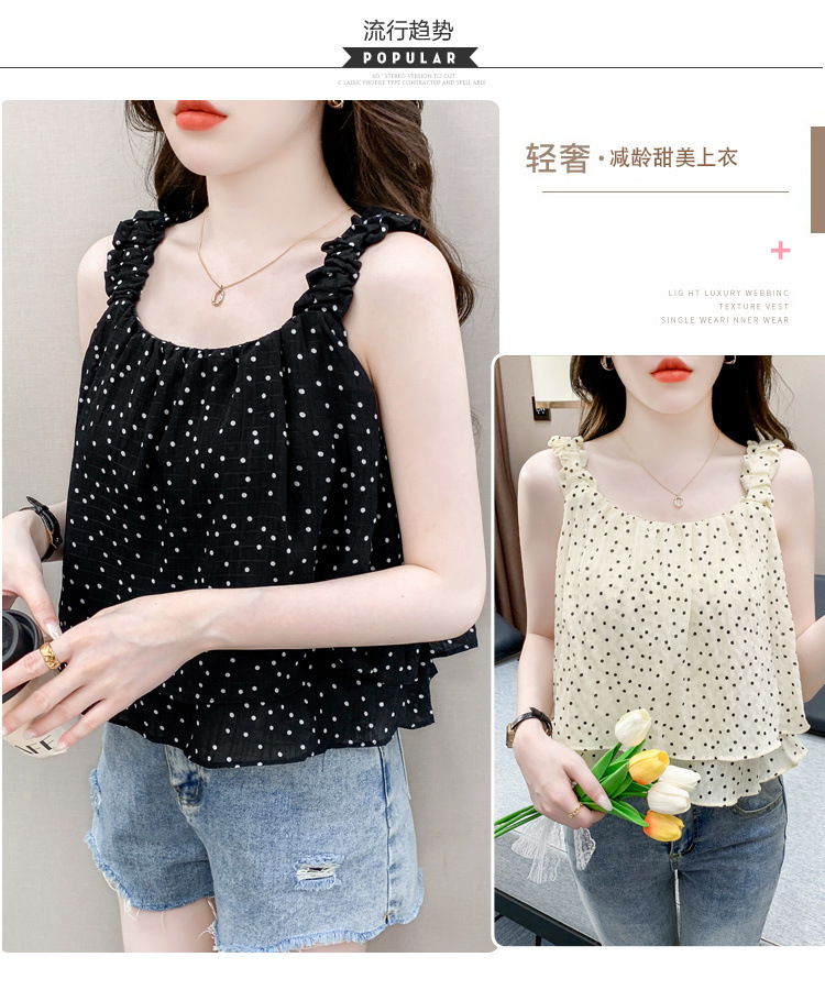 2025년 여름 신작 도트무늬 캐미솔 한국판 달콤한 살 커버 슬리밍 튜브탑 민소매 쇼트탑스토어 가기