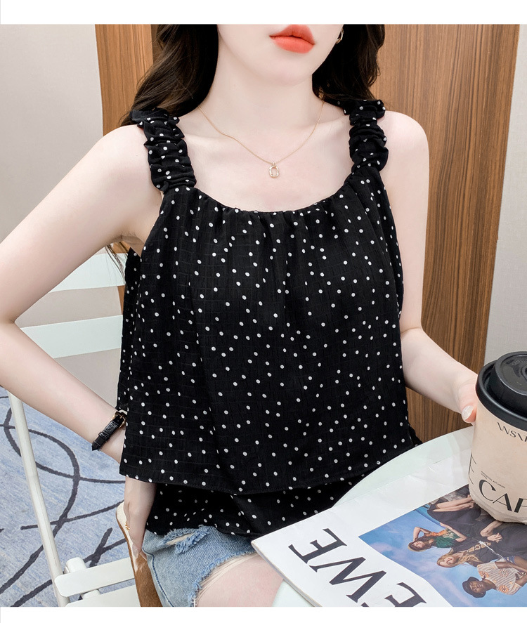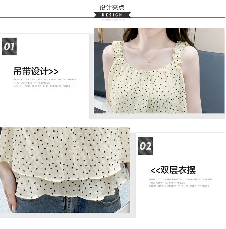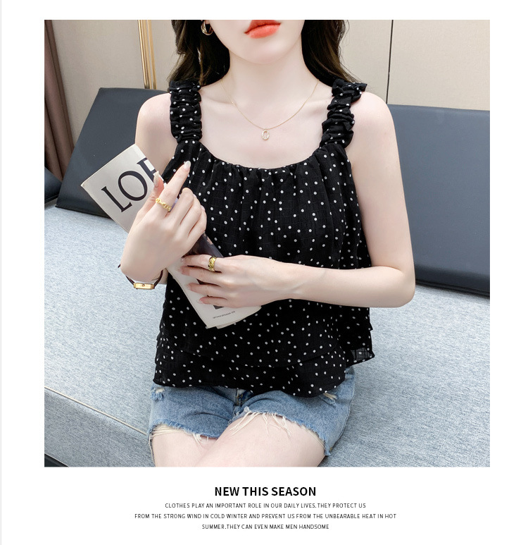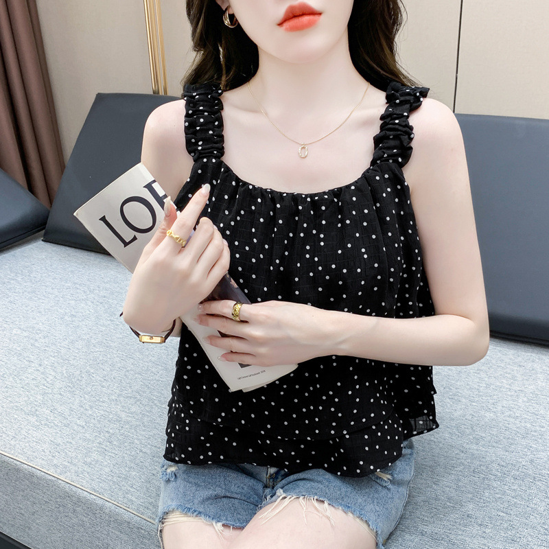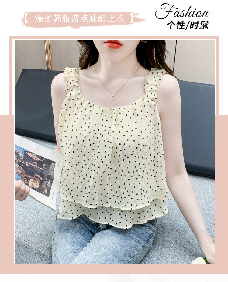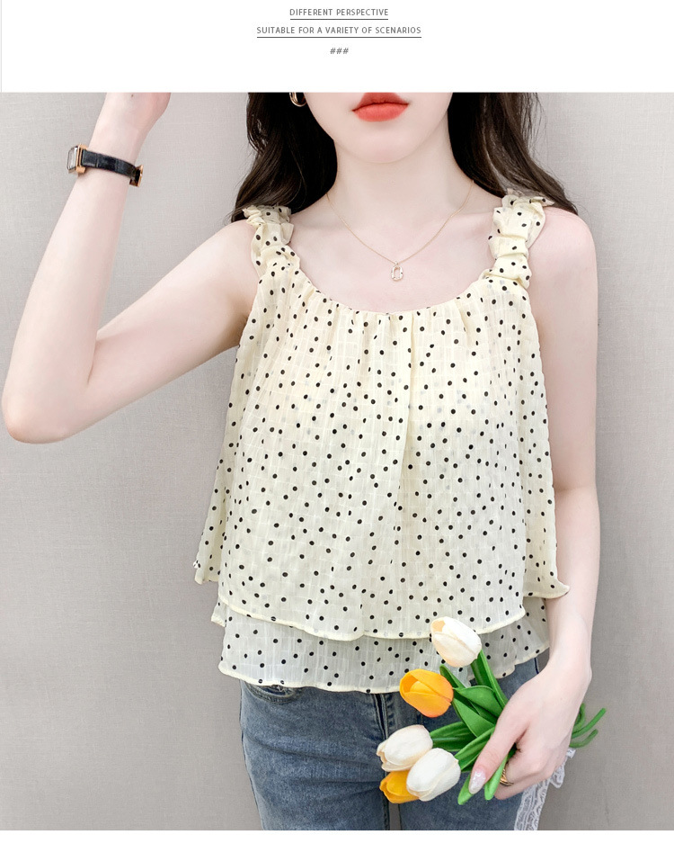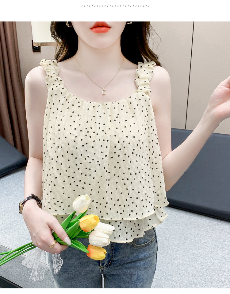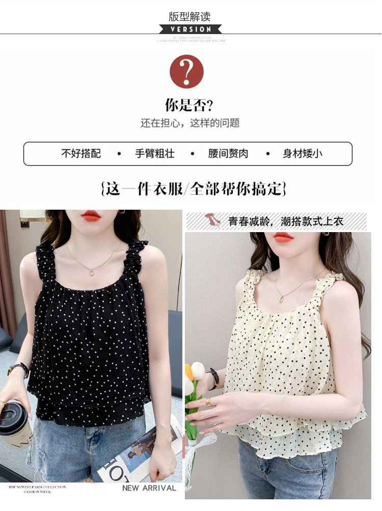 2025년 여름 신작 도트무늬 캐미솔 한국판 달콤한 살 커버 슬리밍 튜브탑 민소매 쇼트탑스토어 가기