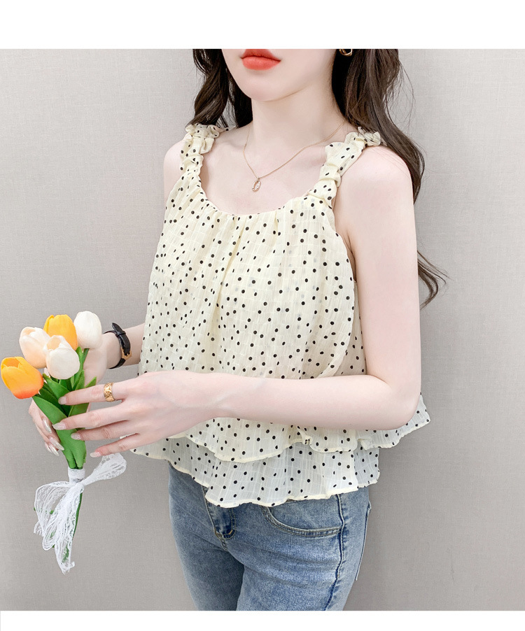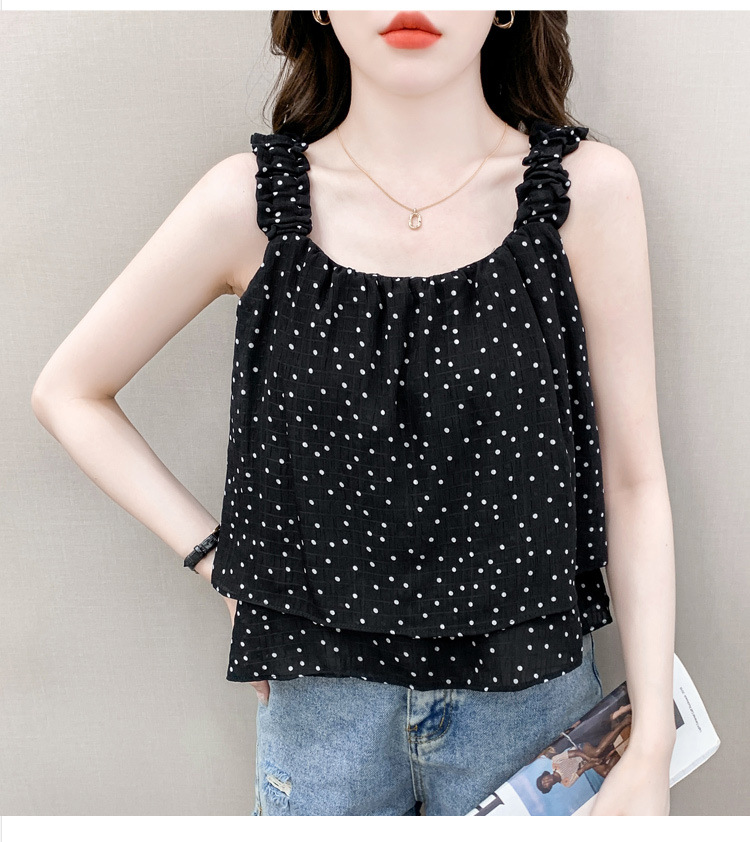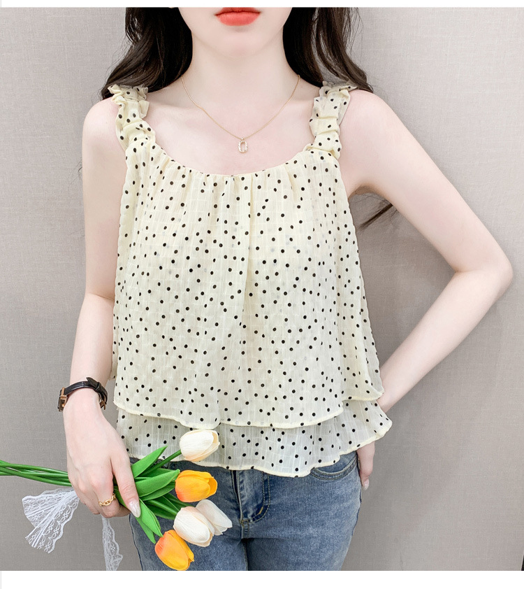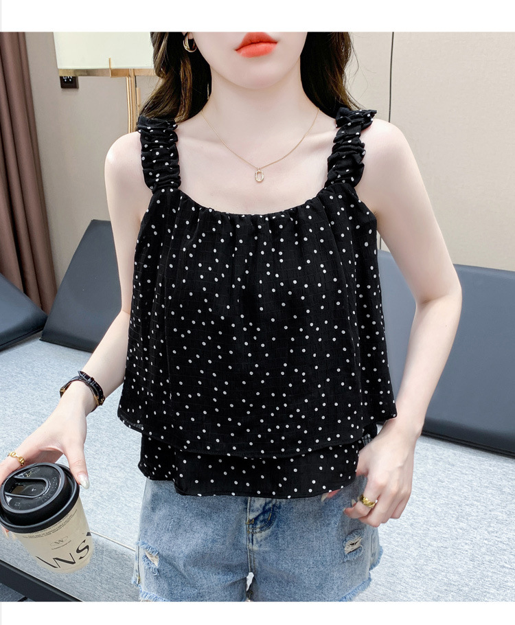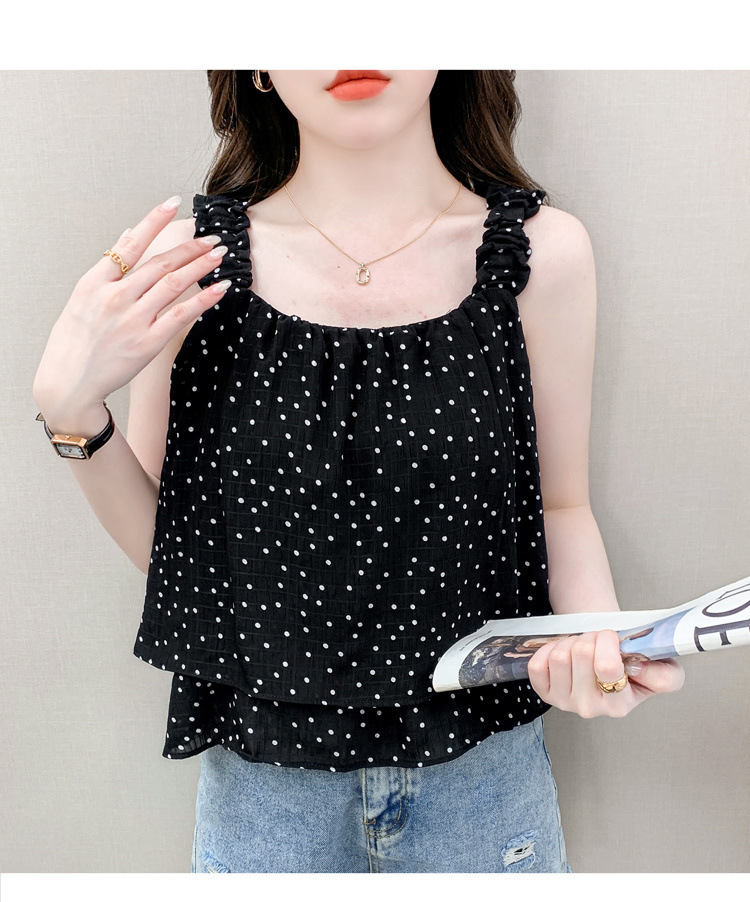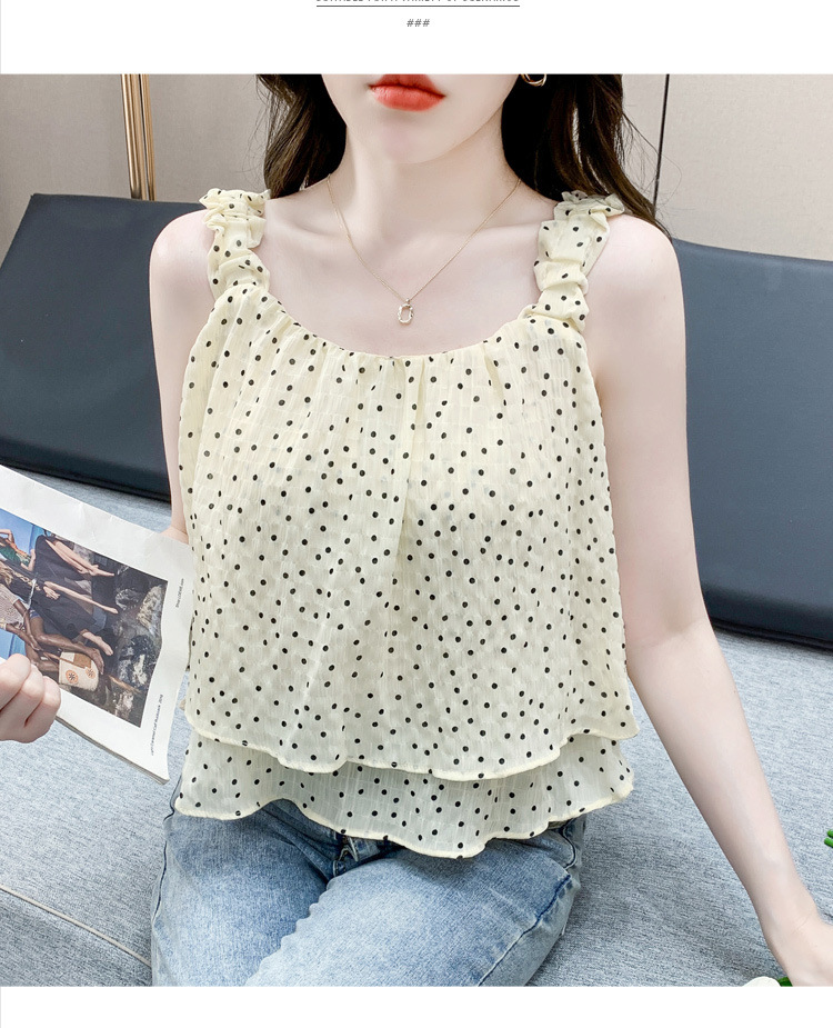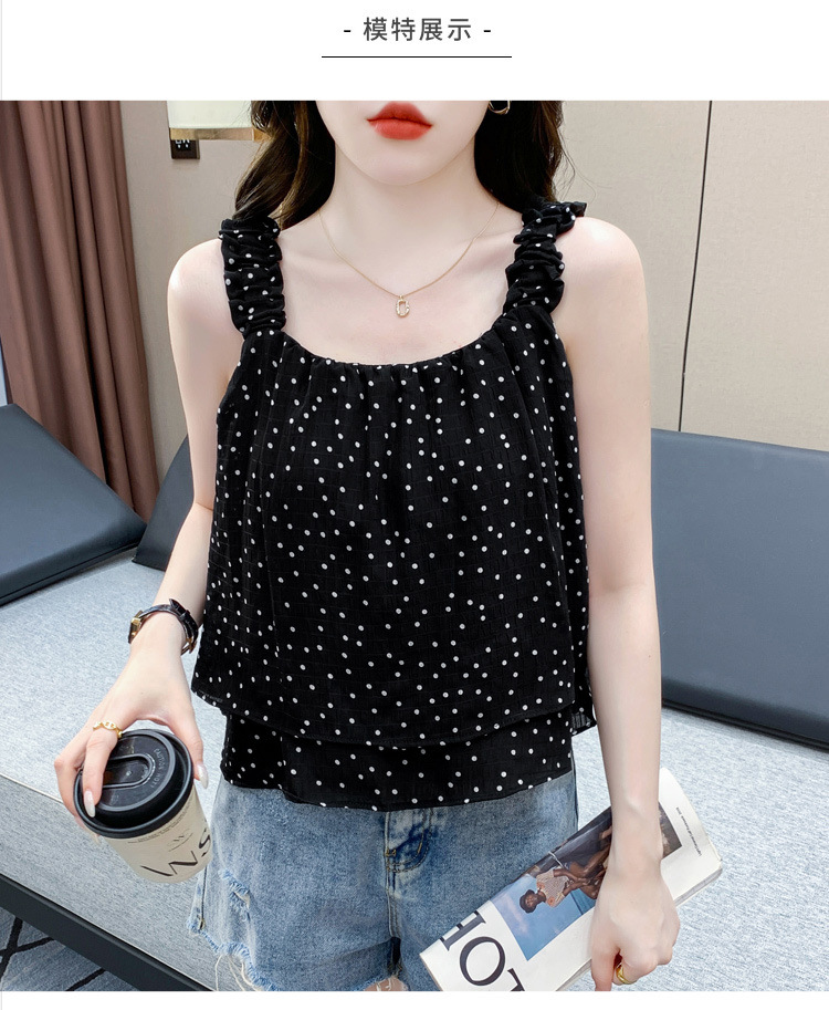 2025년 여름 신작 도트무늬 캐미솔 한국판 달콤한 살 커버 슬리밍 튜브탑 민소매 쇼트탑스토어 가기