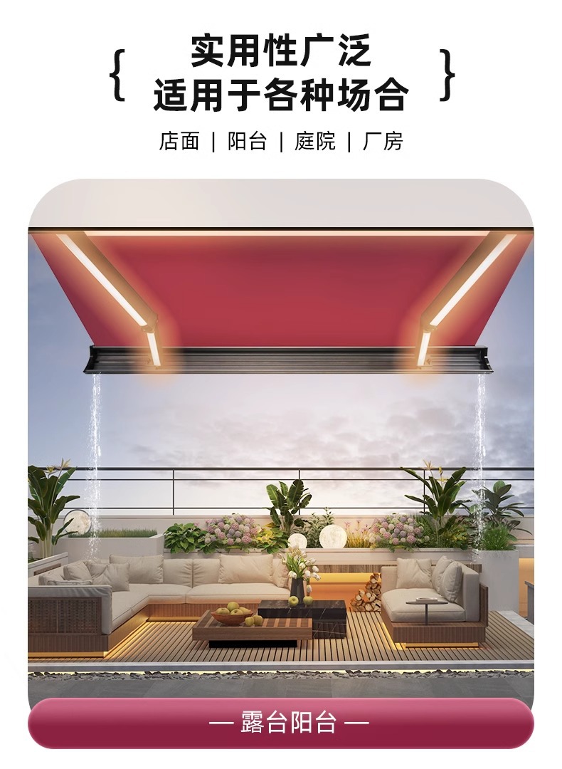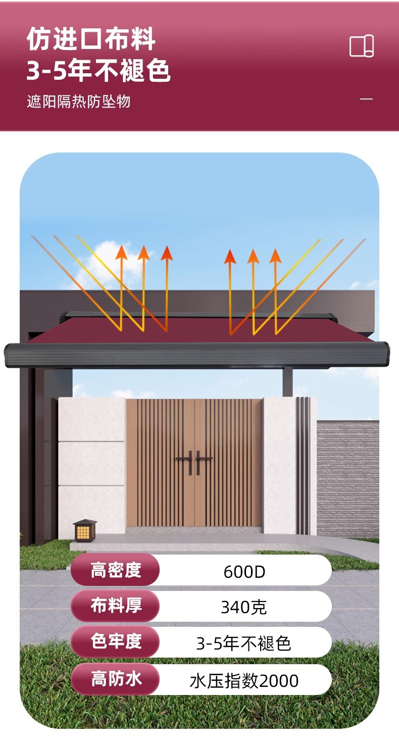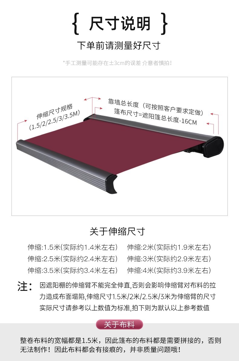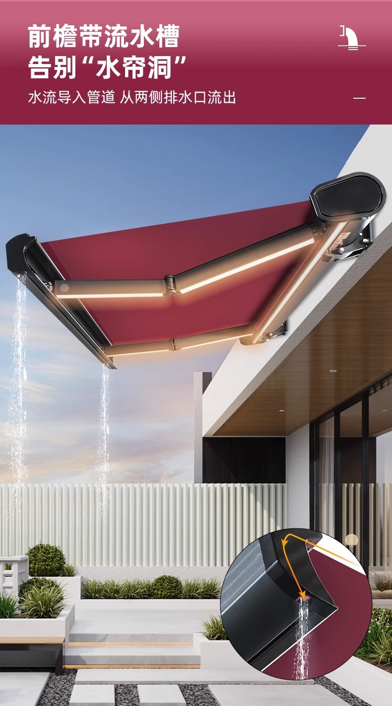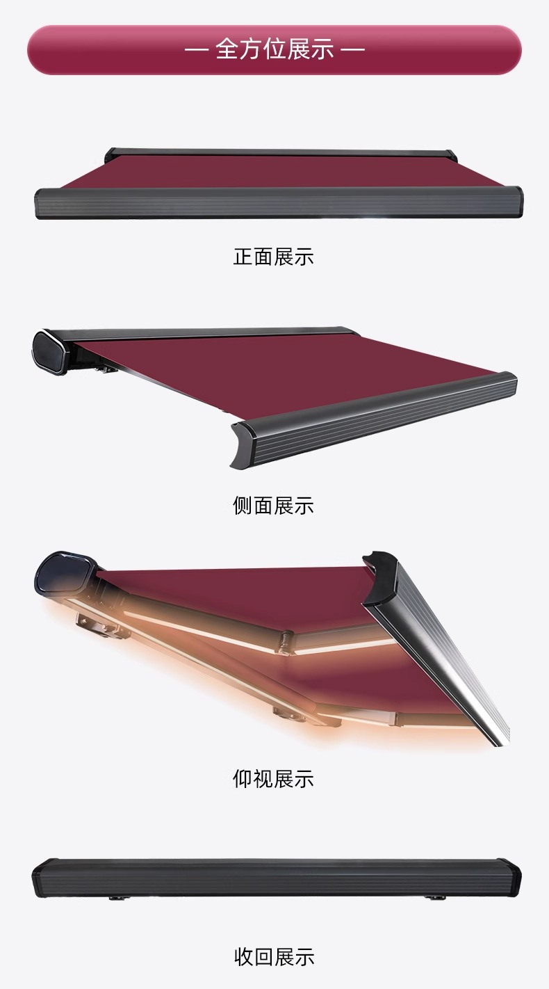 전체 박스형 차양 야외 전기 빌라 창고 조명 발코니 우산 천을 갖춘 접이식 텔레스코픽 알루미늄 합금 안뜰스토어 가기