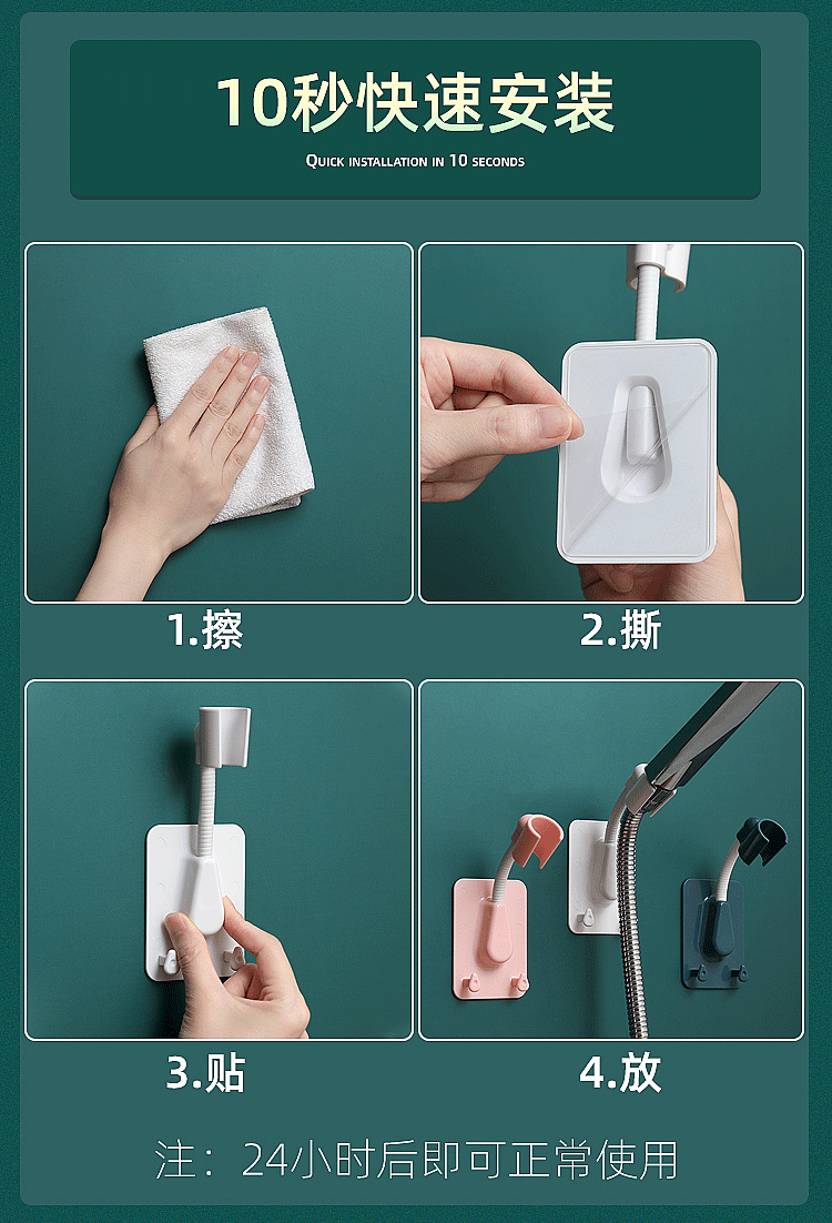 本产品仅限光滑 平面 无缝隙的墙面使用,使用时请务必先用干抹布将墙面擦干净 确保没有灰尘,将无痕贴一面贴产品上一面贴墙面上,按压紧实确保无痕贴与墙面完全接触,静置24小时后使用!!!