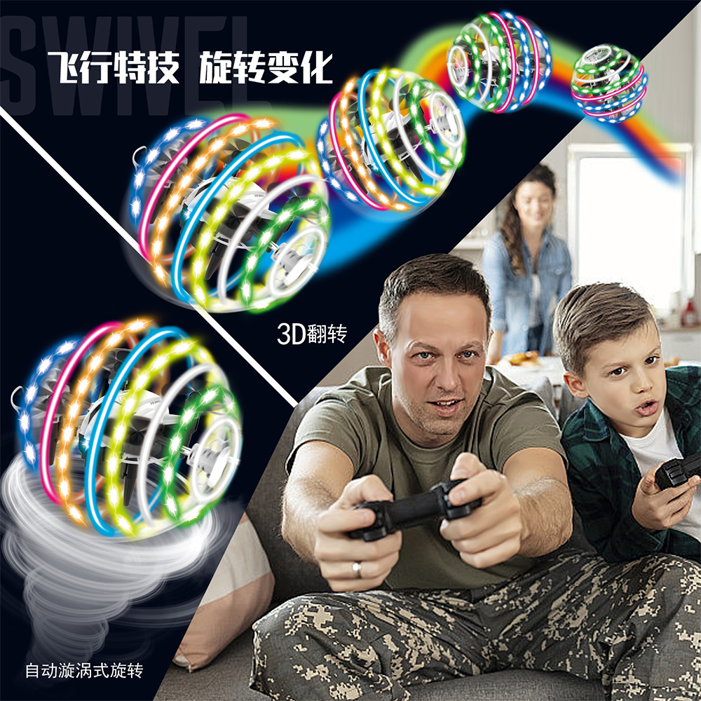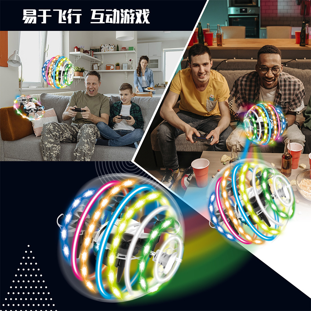 1.特技操作功能:一键360度RGB灯光旋转特技成球型;