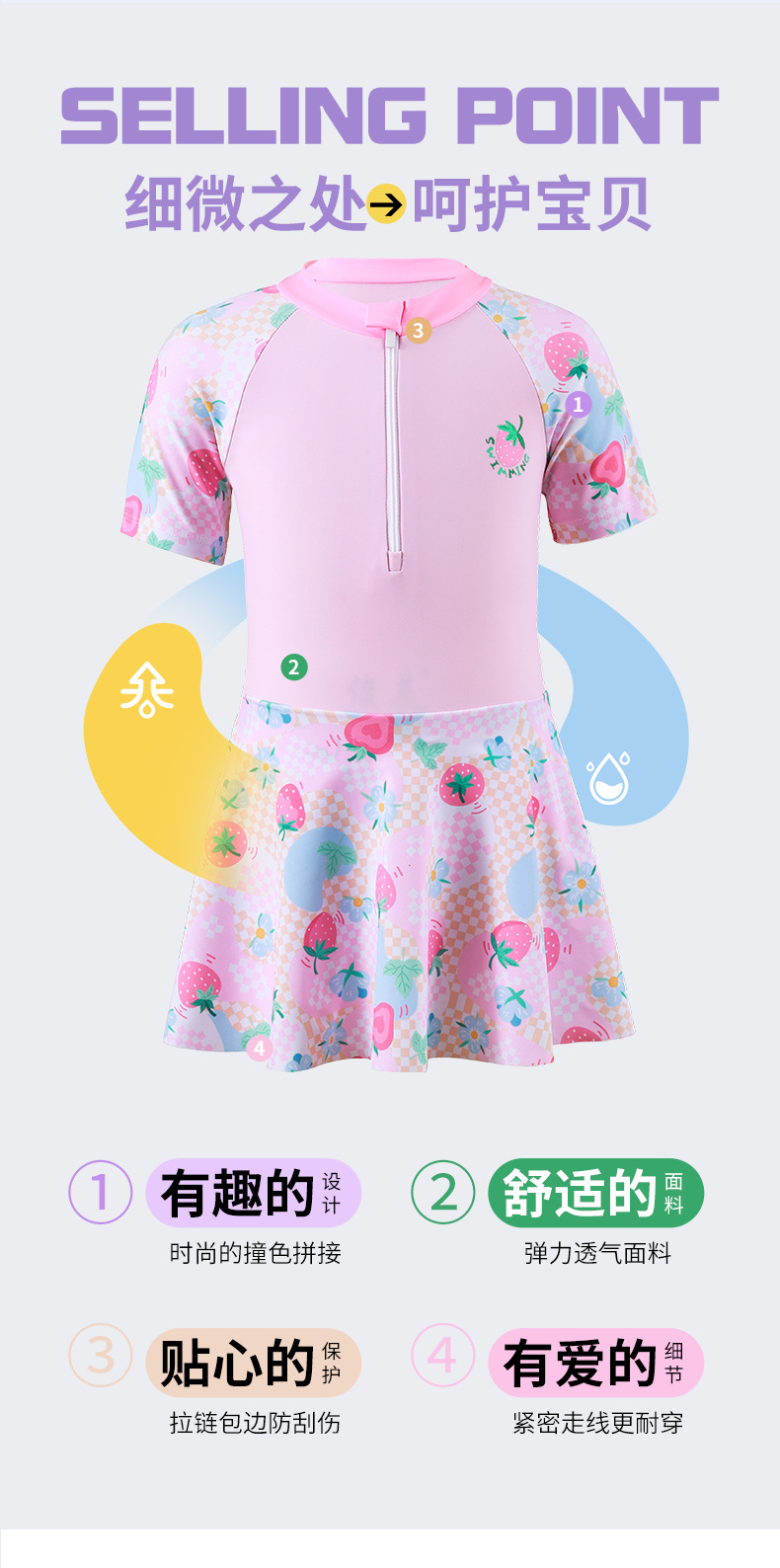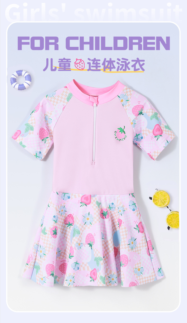 2026 아동 수영복 여아 만화 딸기 스타일 분리형 수영복 중대형 어린이 여아 귀여운 수영복 여름스토어 가기