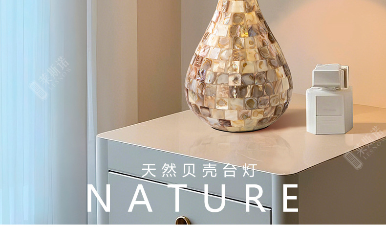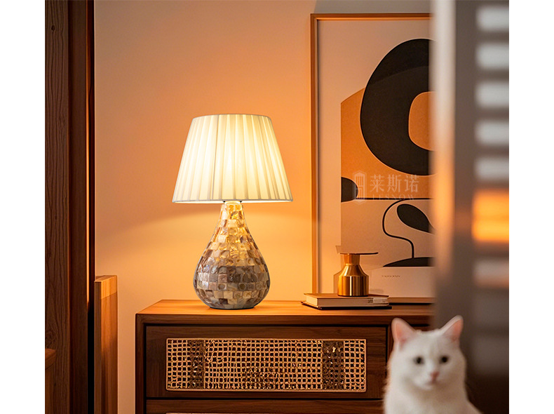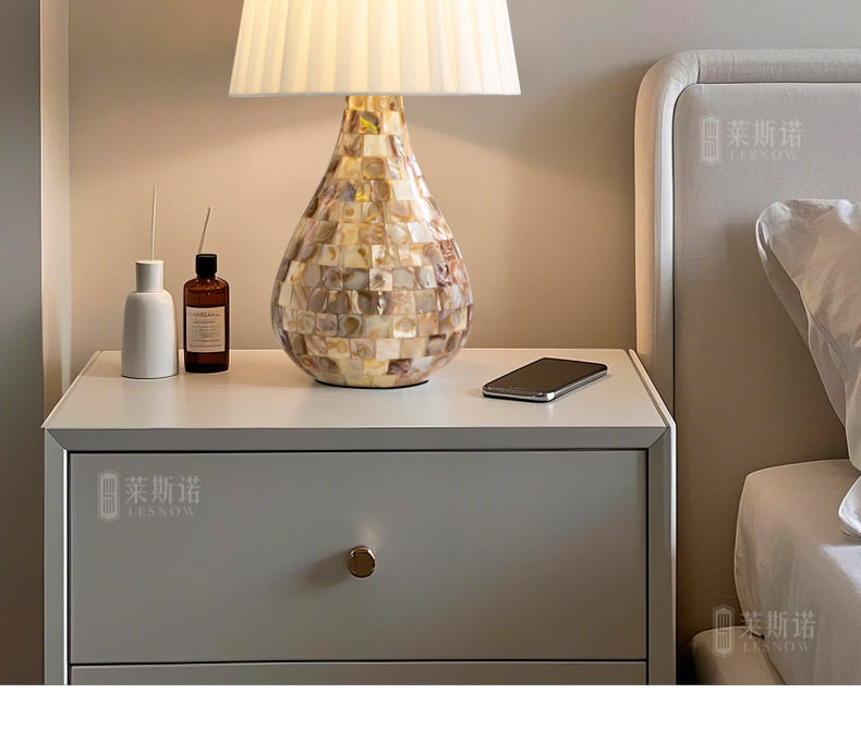새로운 쉘 현대 간단한 침실 머리맡 램프 베이지 디자이너 하이 엔드 중세 거실 하이라이트 라이트 럭셔리 테이블 램프스토어 가기