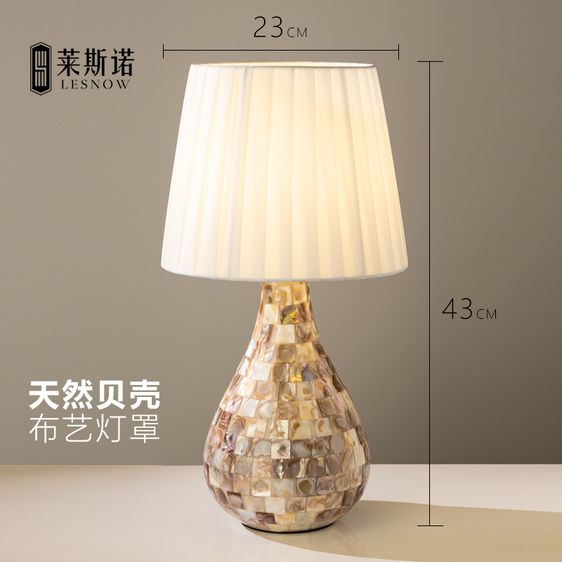 새로운 쉘 현대 간단한 침실 머리맡 램프 베이지 디자이너 하이 엔드 중세 거실 하이라이트 라이트 럭셔리 테이블 램프