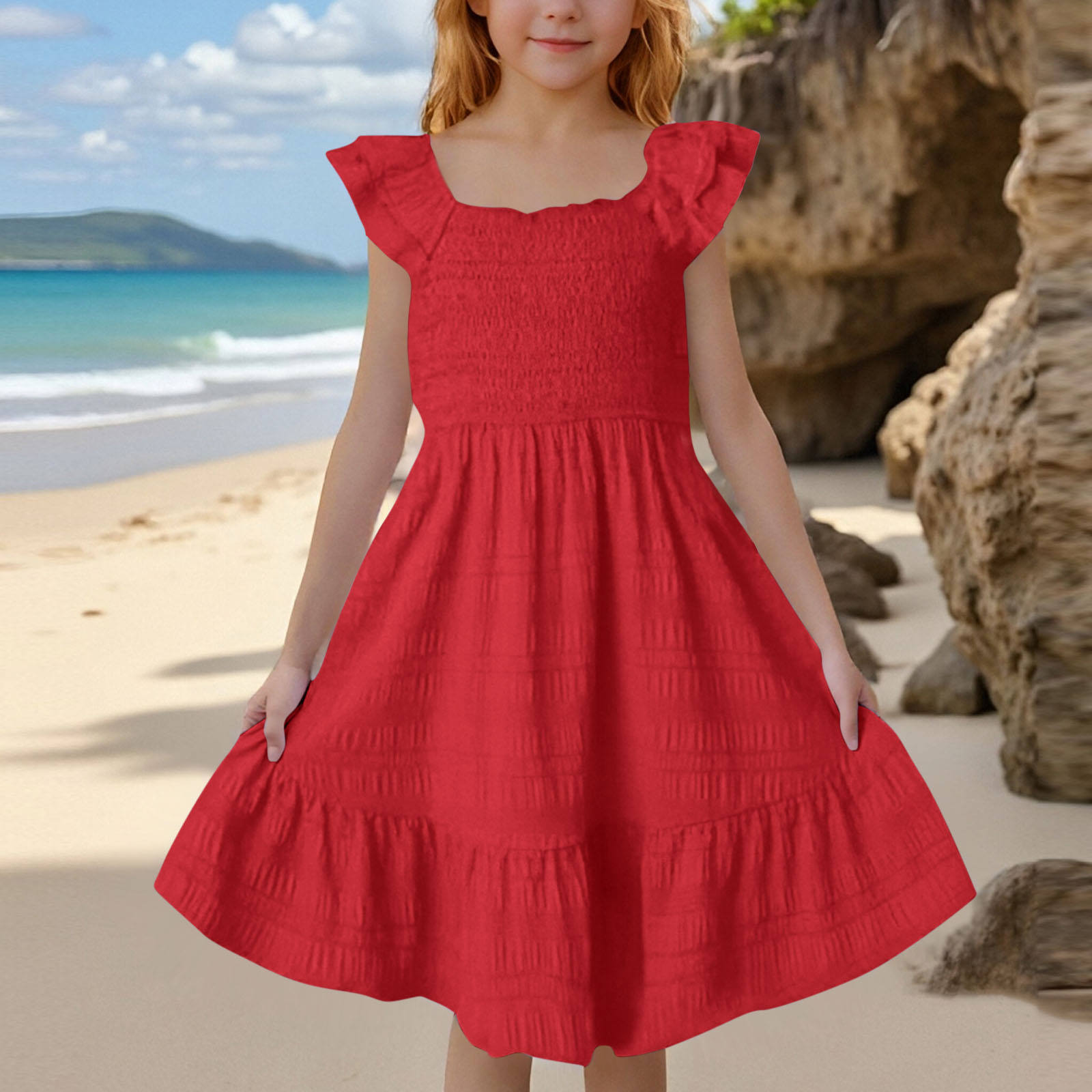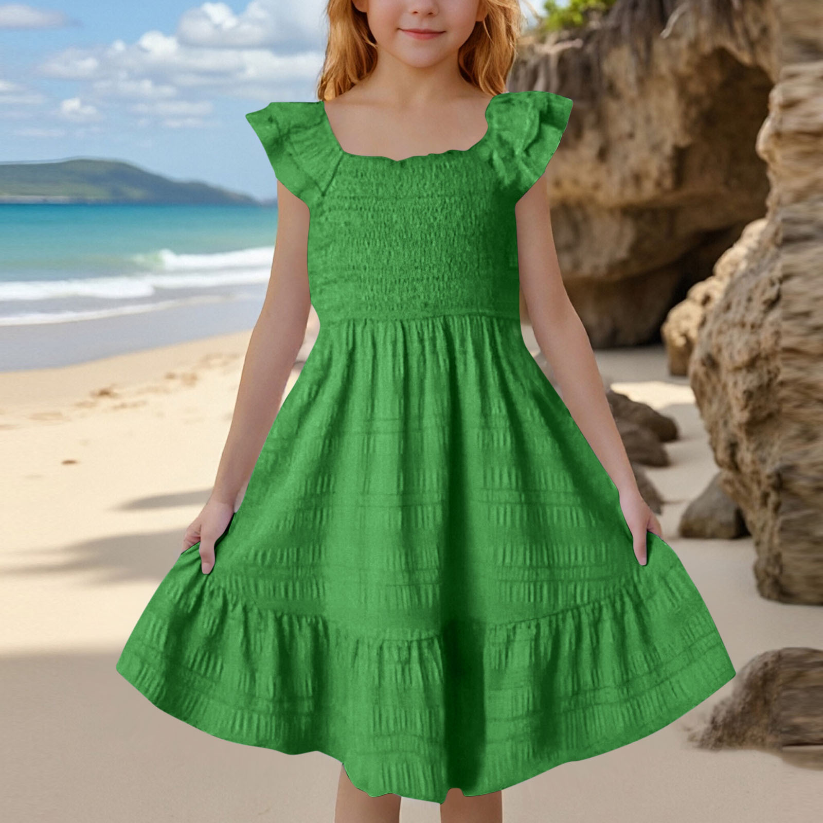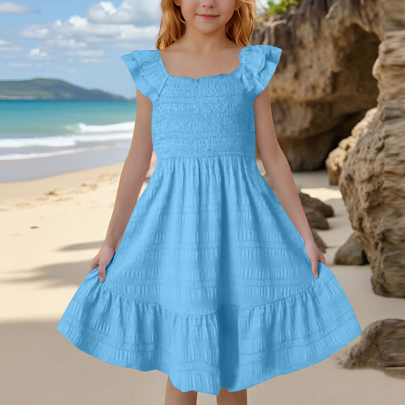 유럽과 미국의 아동복 크로스보더 중대형 아동복 봄 여름 신작 아마존 버블 주름 플라잉 슬리브 대형 스윙 공주 드레스