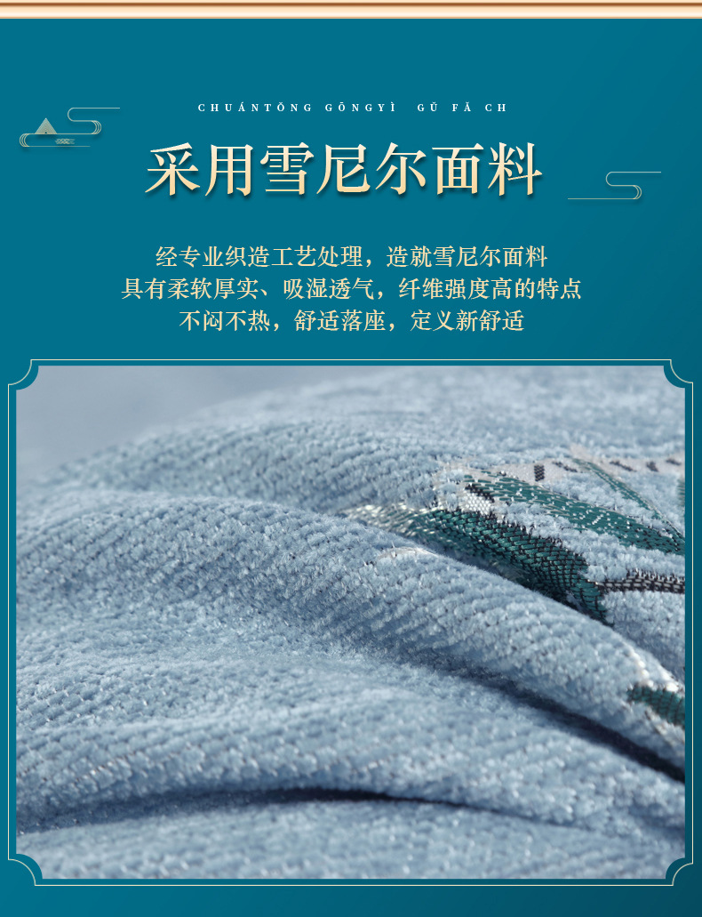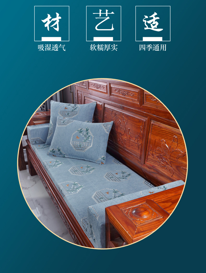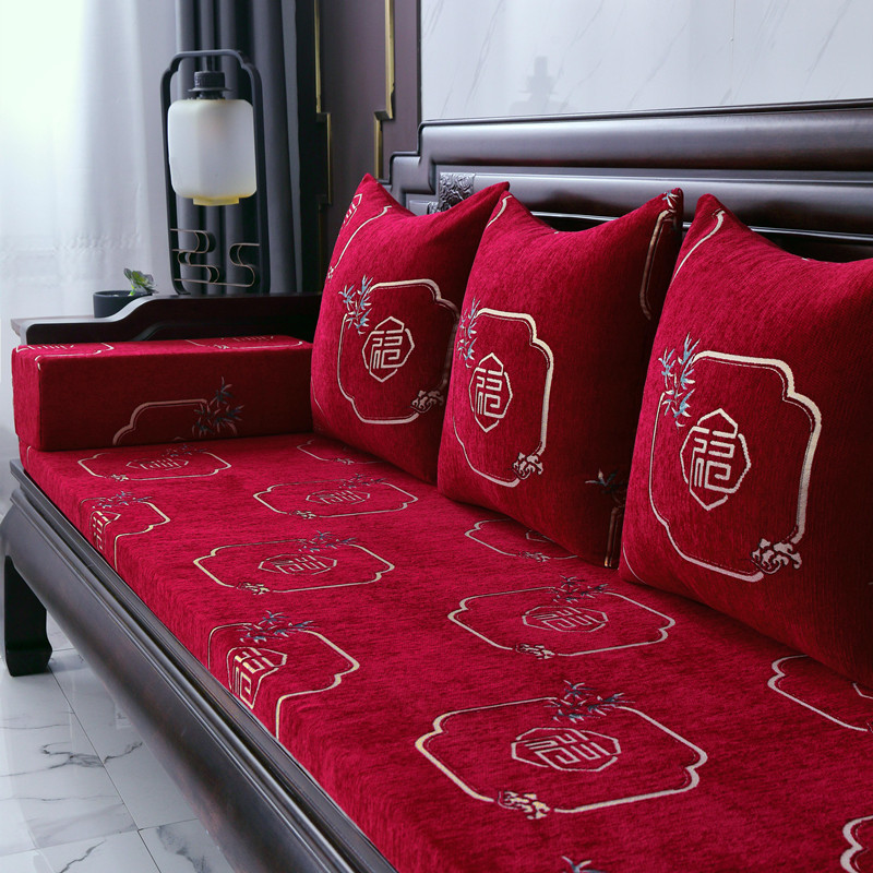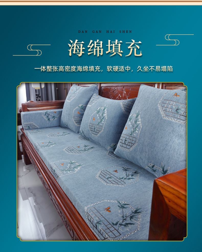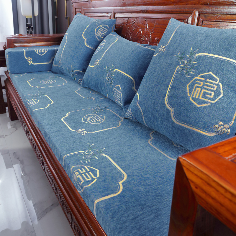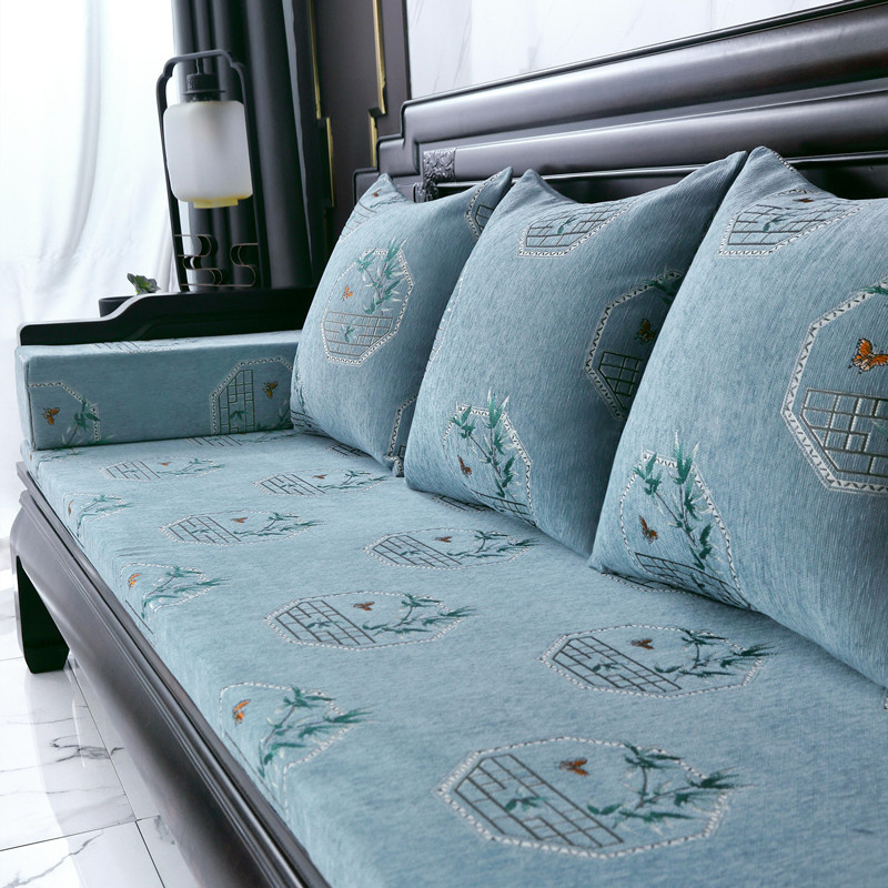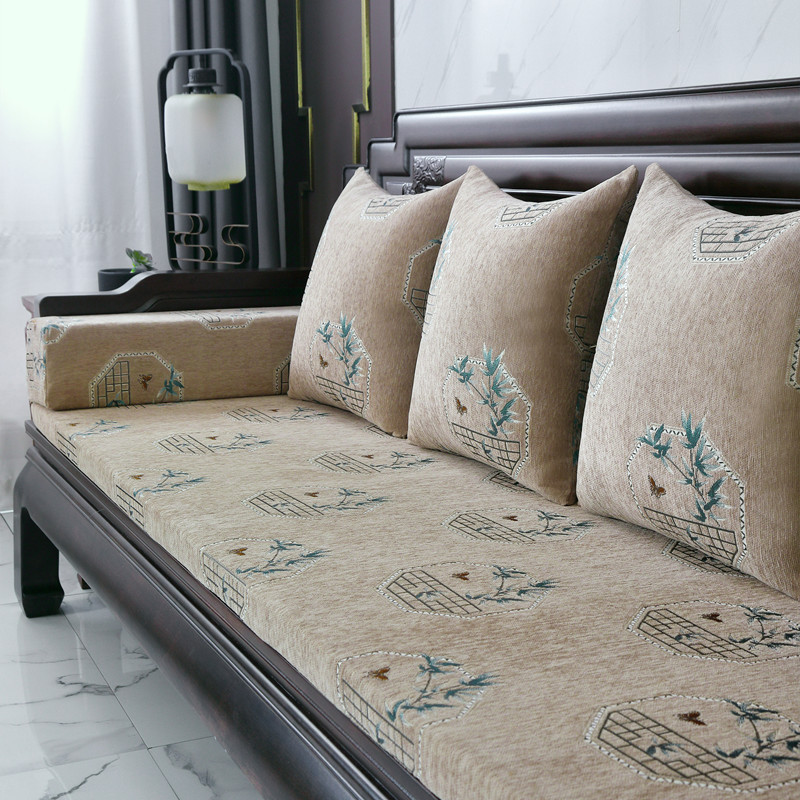 신중국풍 셔닐 소파 쿠션, 패셔너블하고 고급스러운 느낌의 소파 방석, 사계절 사용 가능한 스펀지 쿠션, 두껍고 단단한 제품