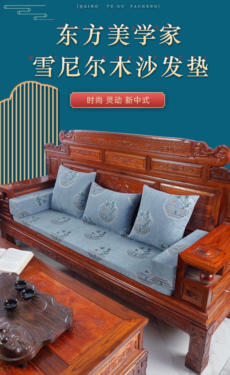 신중국풍 셔닐 소파 쿠션, 패셔너블하고 고급스러운 느낌의 소파 방석, 사계절 사용 가능한 스펀지 쿠션, 두껍고 단단한 제품스토어 가기