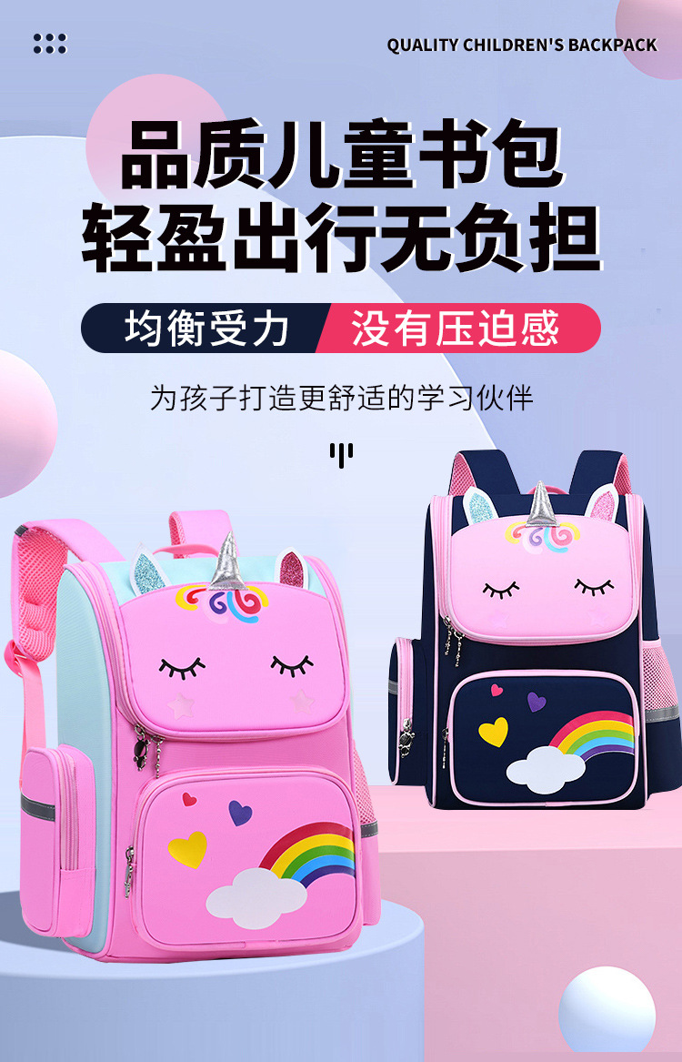 새로운 초등학교 가방 1-3-6 학년 소년과 소녀 대용량 배낭 어린이 귀여운 유니콘 배낭스토어 가기