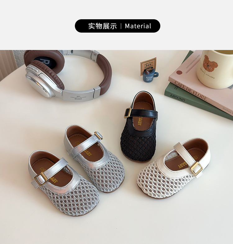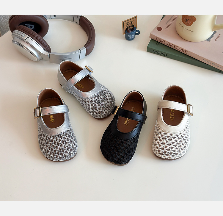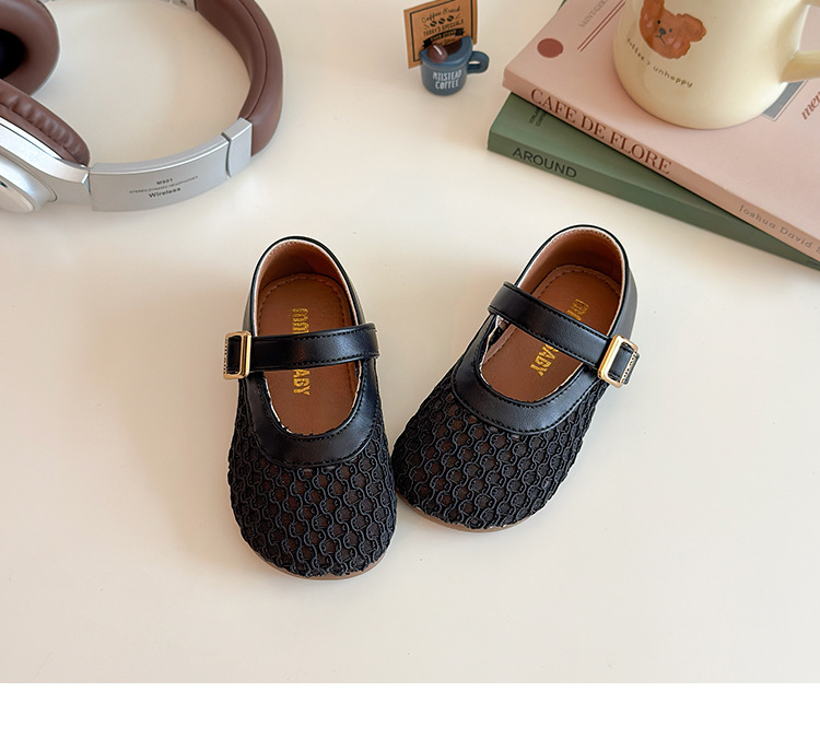 어린이 신발 2025 여름 새로운 스타일 아기 벨크로 부드러운 바닥 공주 신발 어린이 유행 중공 메쉬 가죽 신발스토어 가기