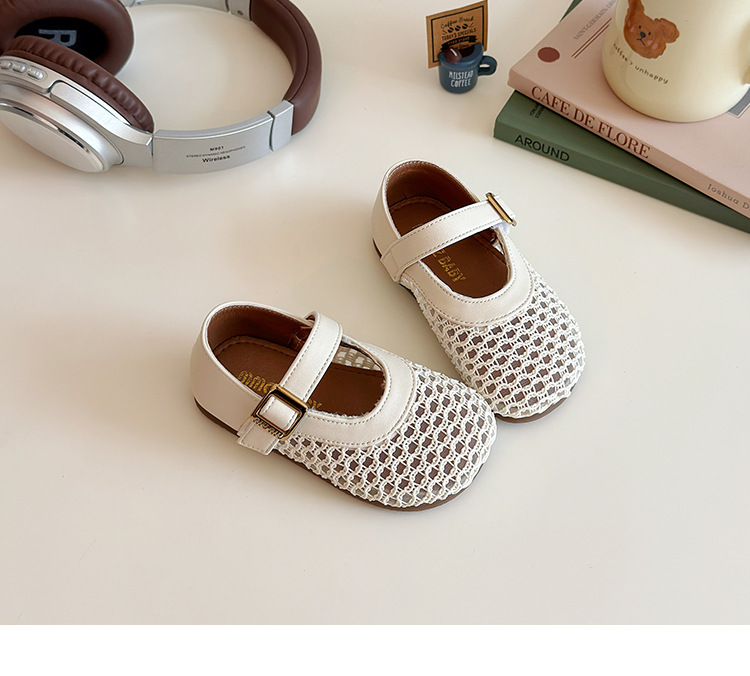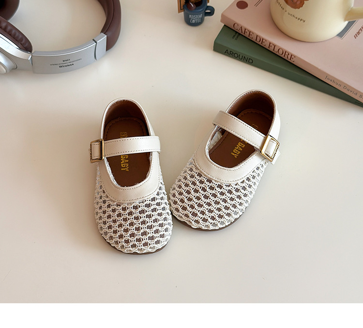 어린이 신발 2025 여름 새로운 스타일 아기 벨크로 부드러운 바닥 공주 신발 어린이 유행 중공 메쉬 가죽 신발