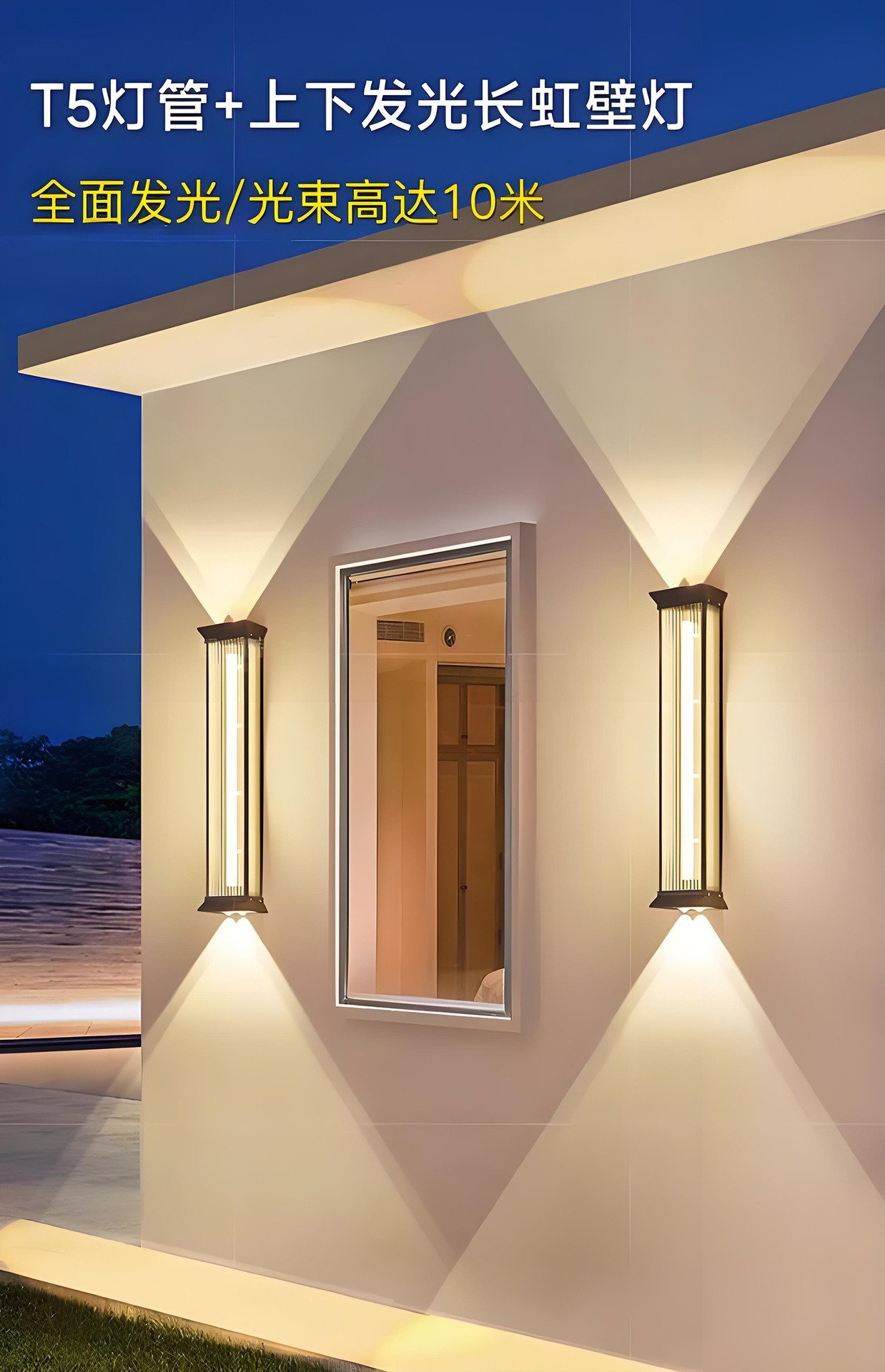 발코니 벽 램프, 문 외벽, 위아래로 빛나는 LED 스트립 벽 램프, 안뜰 테라스, 야외 방수 양방향 벽 램프