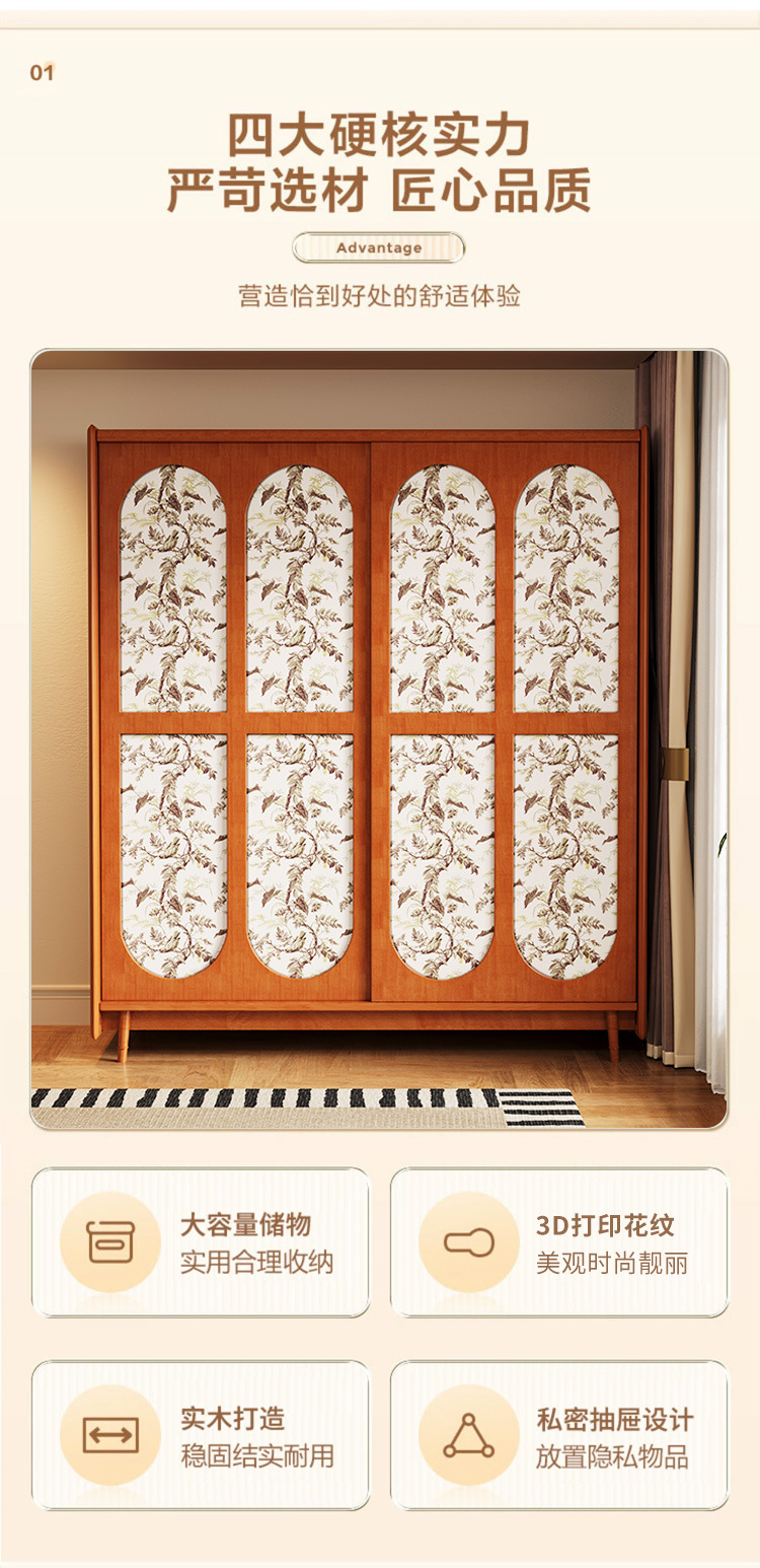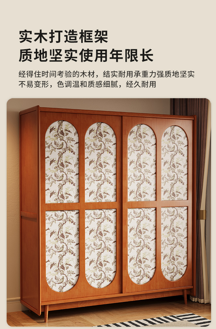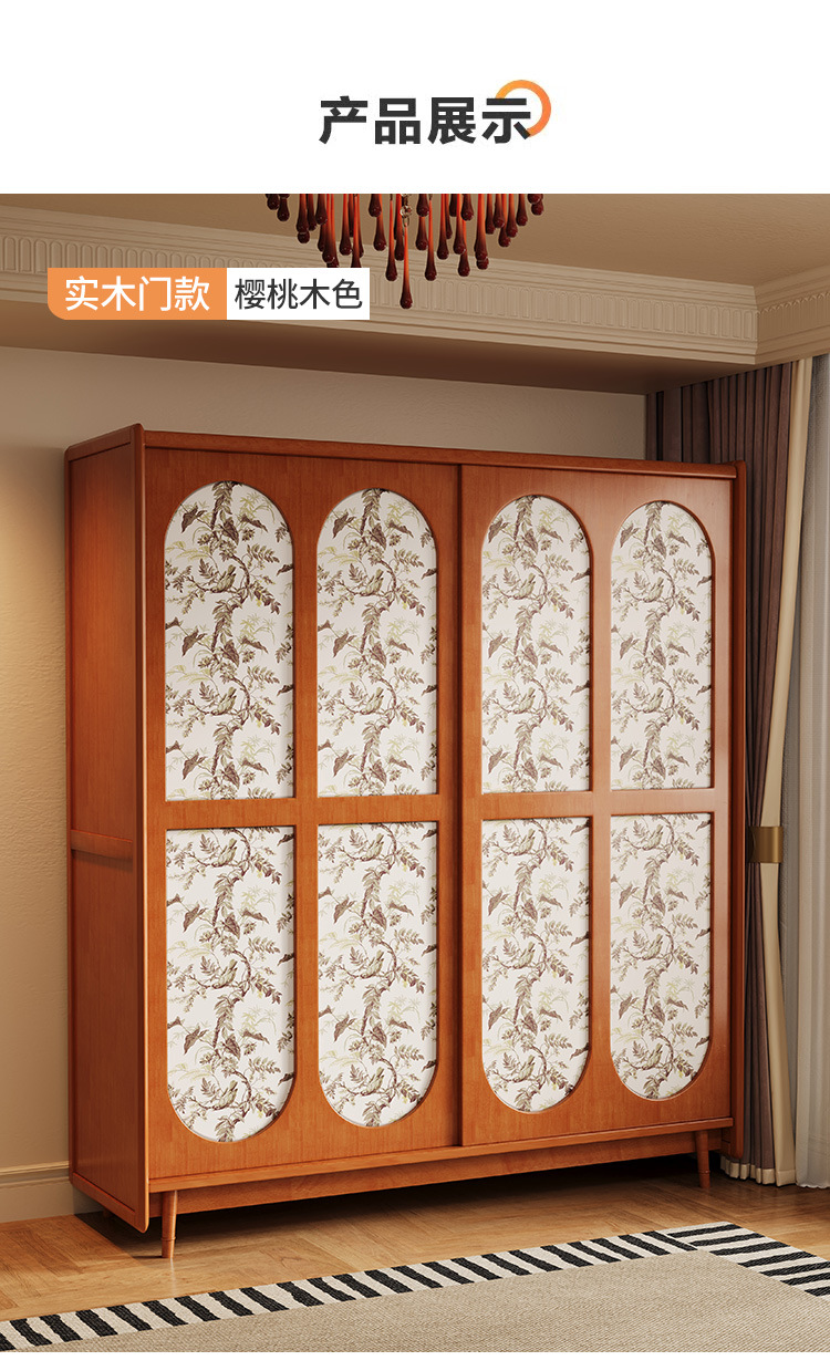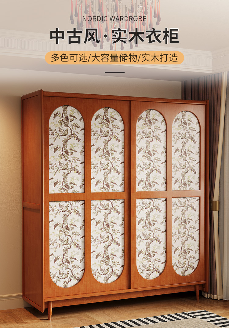 프랑스 복고풍 단단한 나무 옷장 홈 침실 보관 걸이 옷장 중세 스타일 작은 아파트 슬라이딩 도어 나무 옷장
