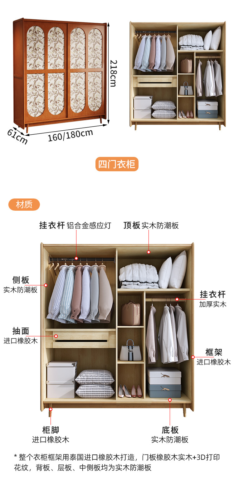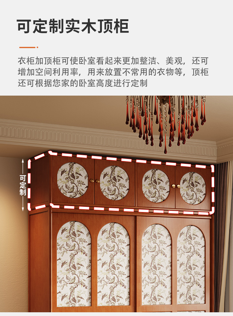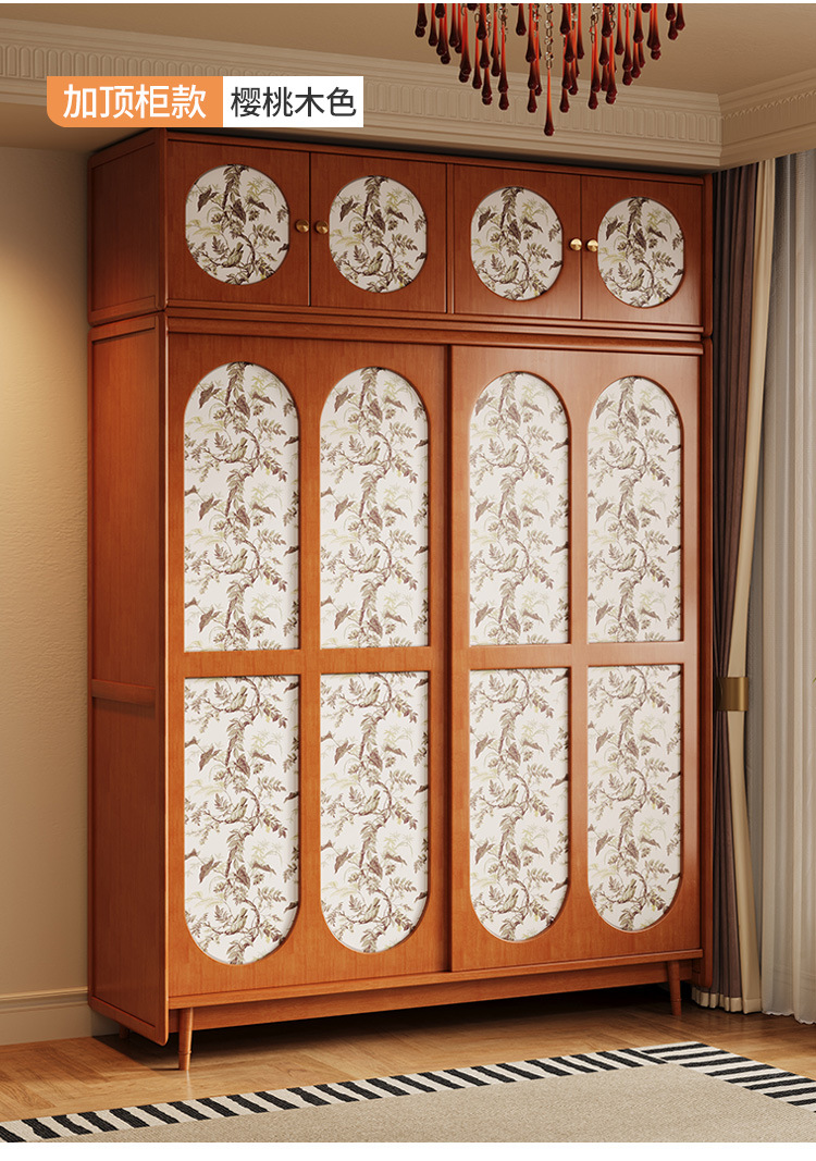 프랑스 복고풍 단단한 나무 옷장 홈 침실 보관 걸이 옷장 중세 스타일 작은 아파트 슬라이딩 도어 나무 옷장스토어 가기
