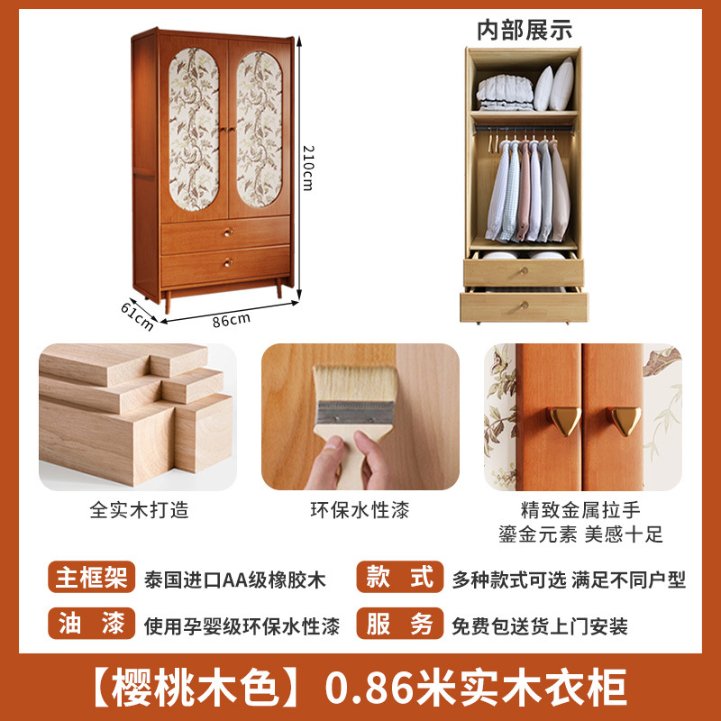 • 원목 옷장【0.86m】체리색【중간색】