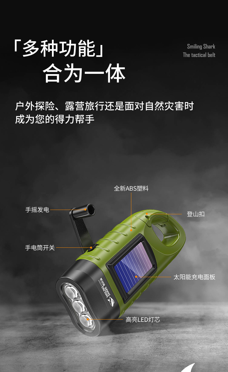 국경 간 새로운 다기능 야외 비상 조명 태양열 핸드 크랭크 충전 ABS 작업 조명 벨트 버클 디자인 핸드스토어 가기