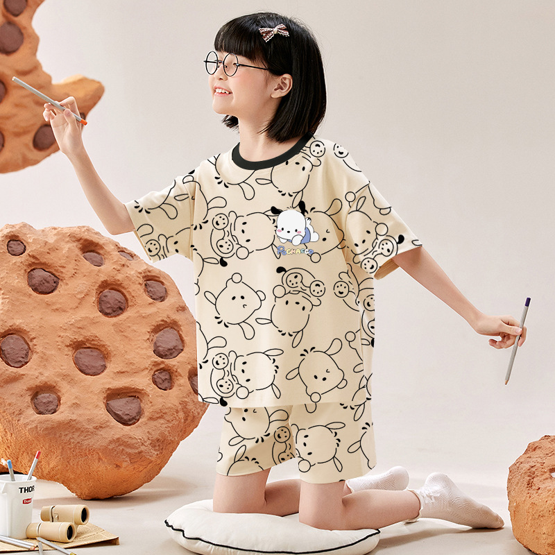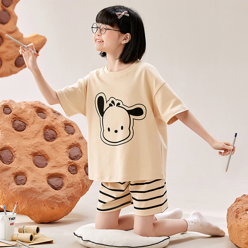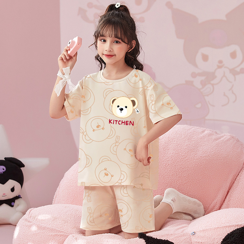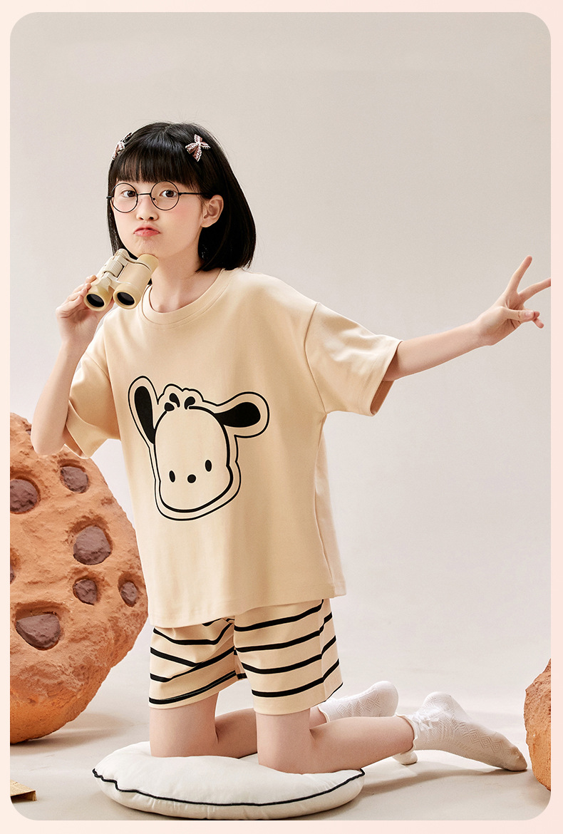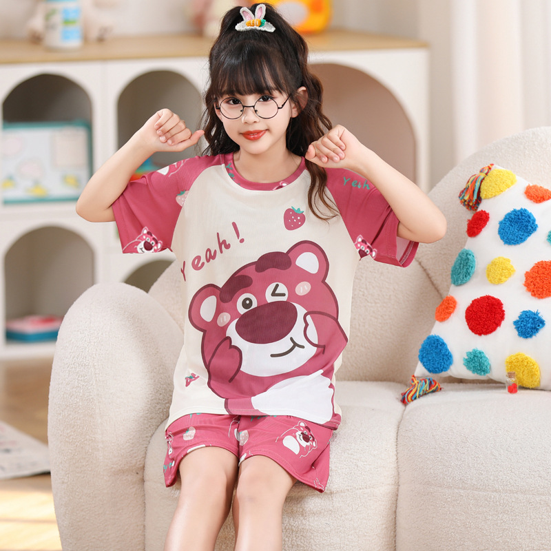 여아, 중대형 아동용 새 잠옷, 봄 여름 만화 반팔 반바지 정장, 외부에서 착용 가능한 아동복스토어 가기