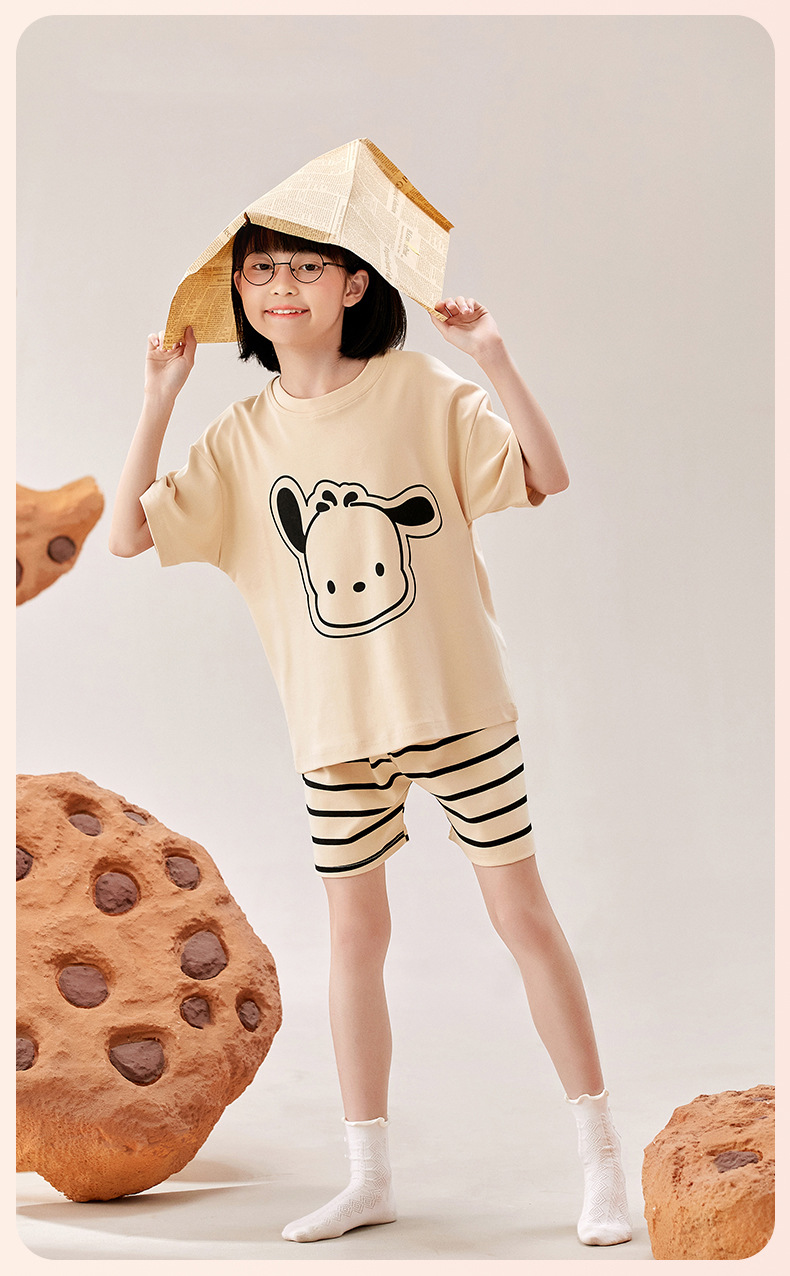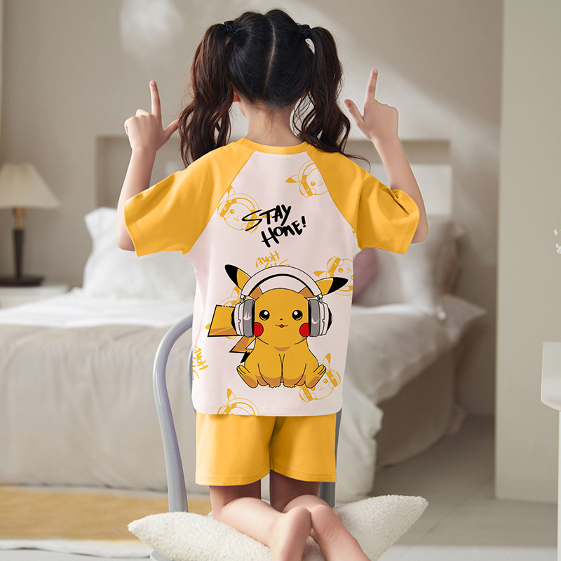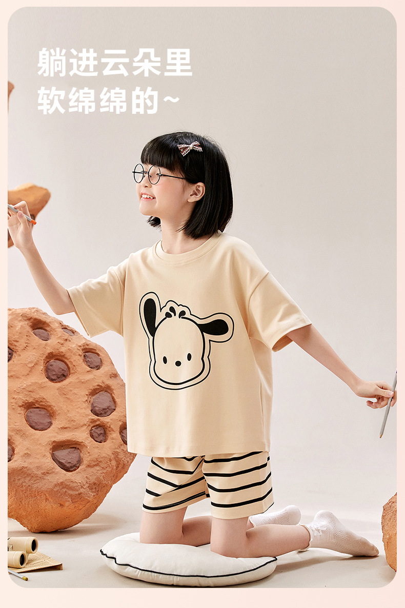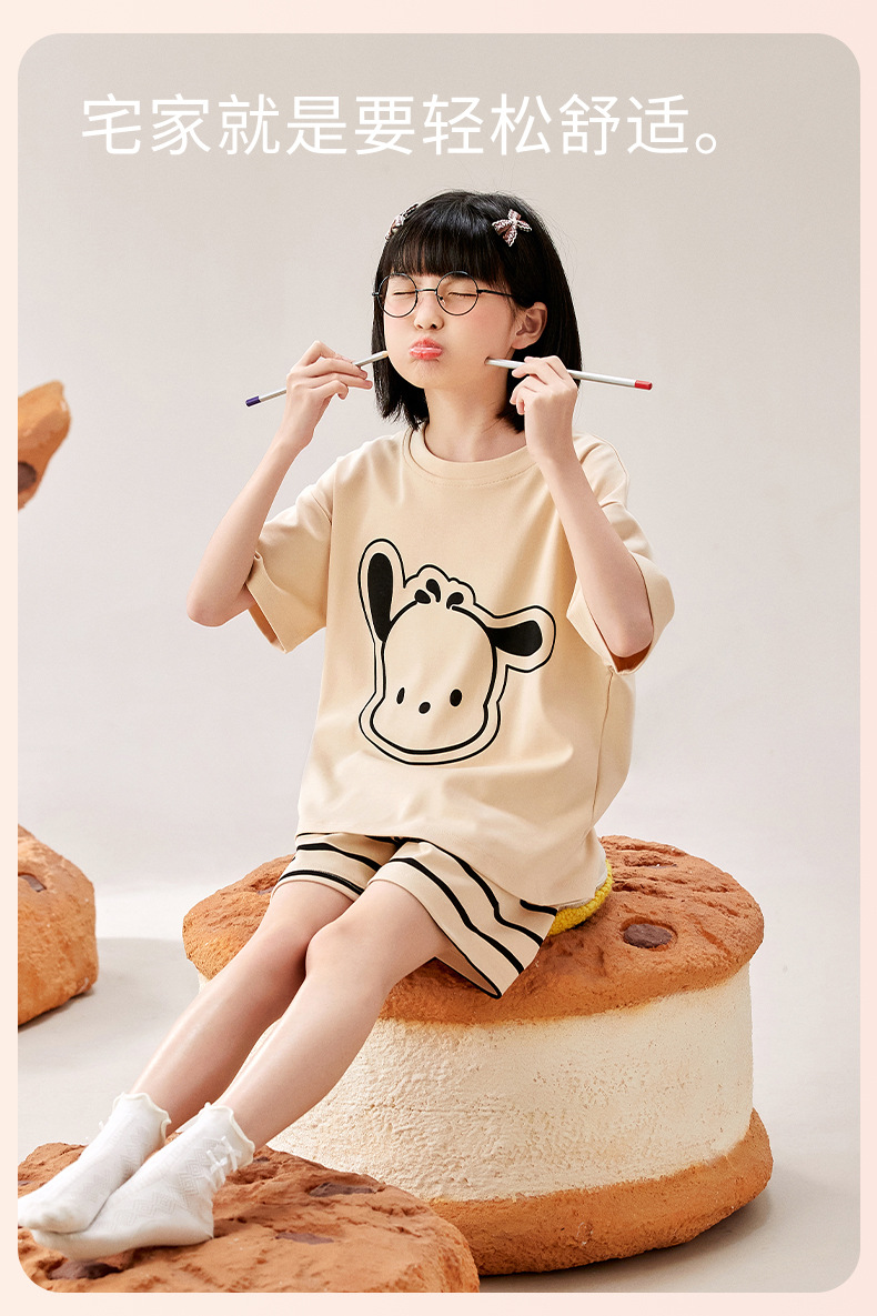 여아, 중대형 아동용 새 잠옷, 봄 여름 만화 반팔 반바지 정장, 외부에서 착용 가능한 아동복스토어 가기
