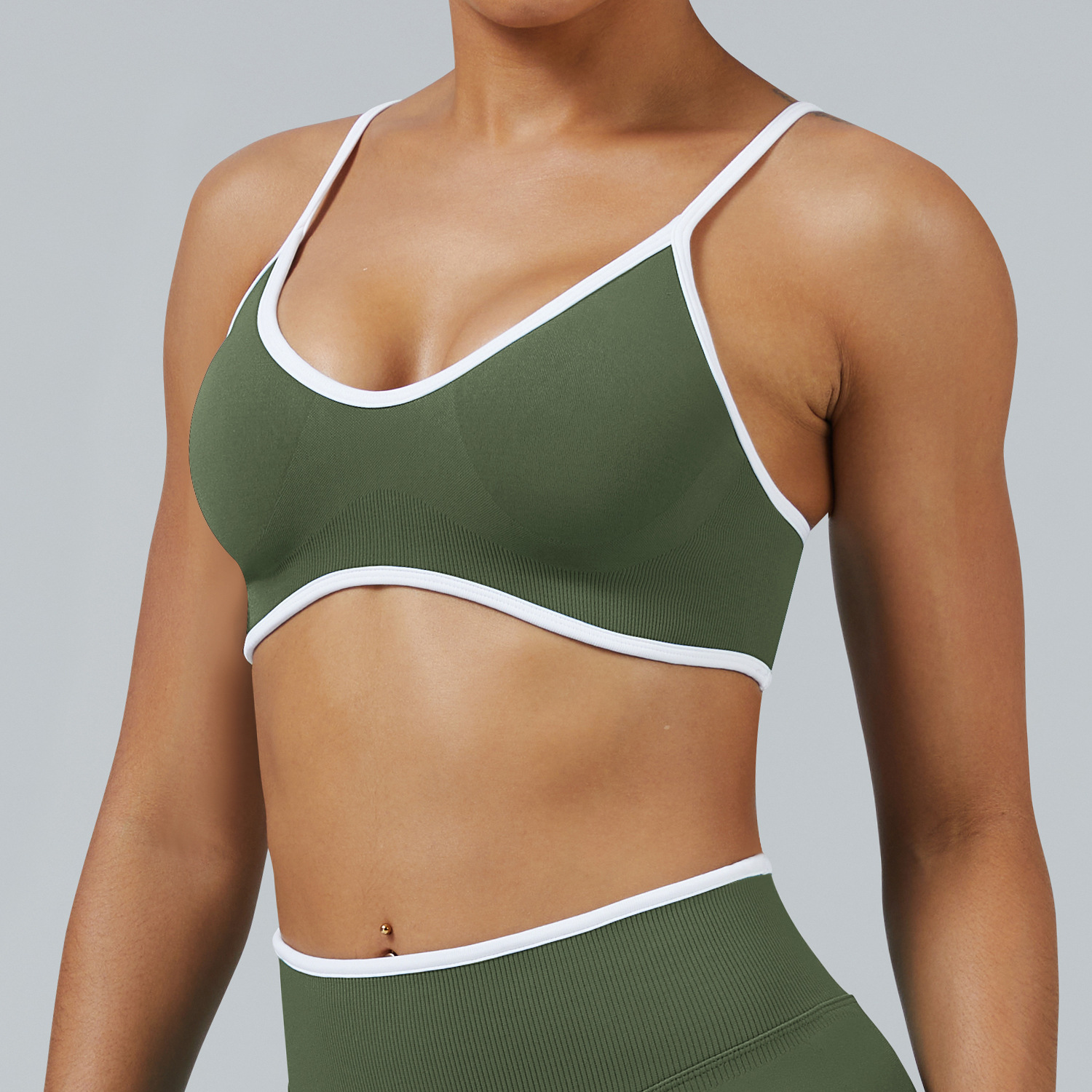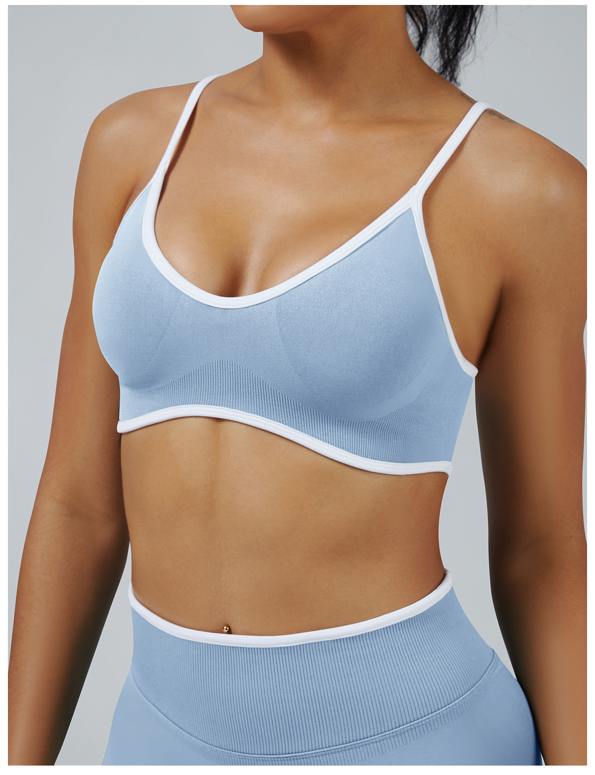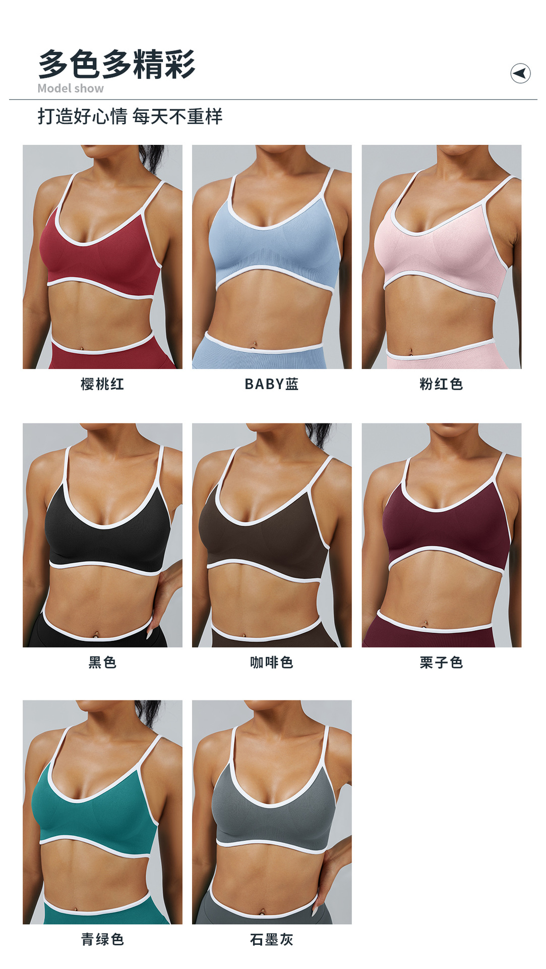 국경 간 새로운 대비 색 슬링 스포츠 브래지어 충격 방지 요가 브래지어 야외 피트니스 요가 탑 스포츠 조끼