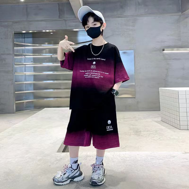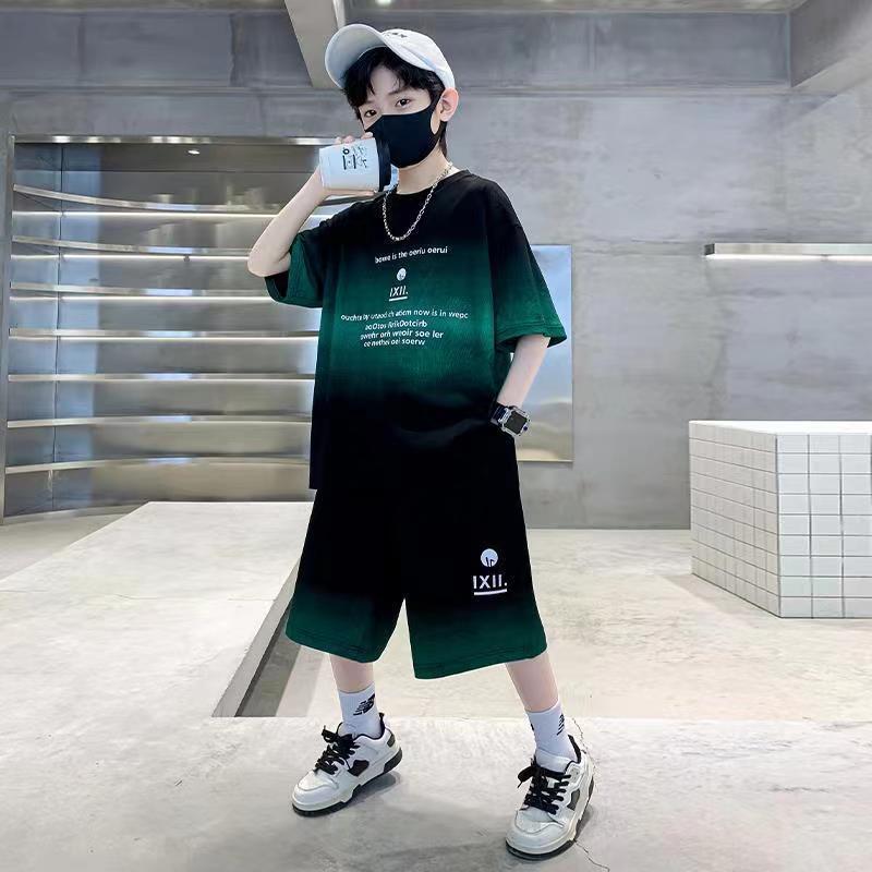 여름 남아 시원하고 멋진 한국식 반팔 양복, 큰 어린이를 위한 패셔너블한 스트리트 스타일 아동 여름 캐주얼 루즈 스포츠웨어
