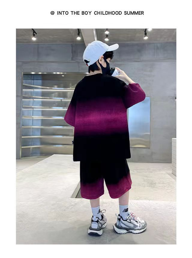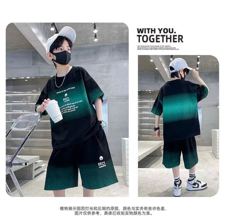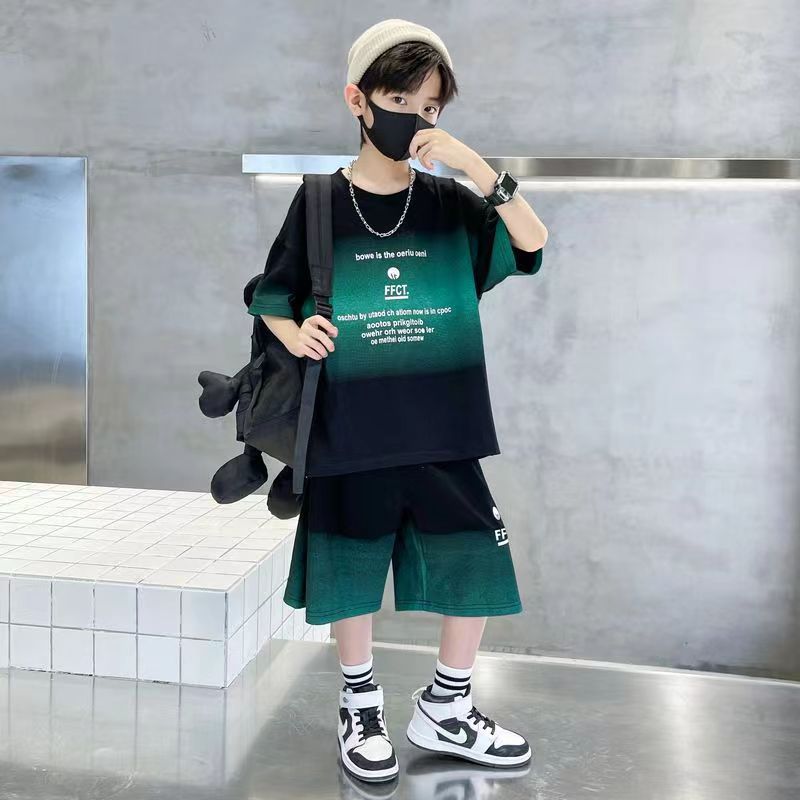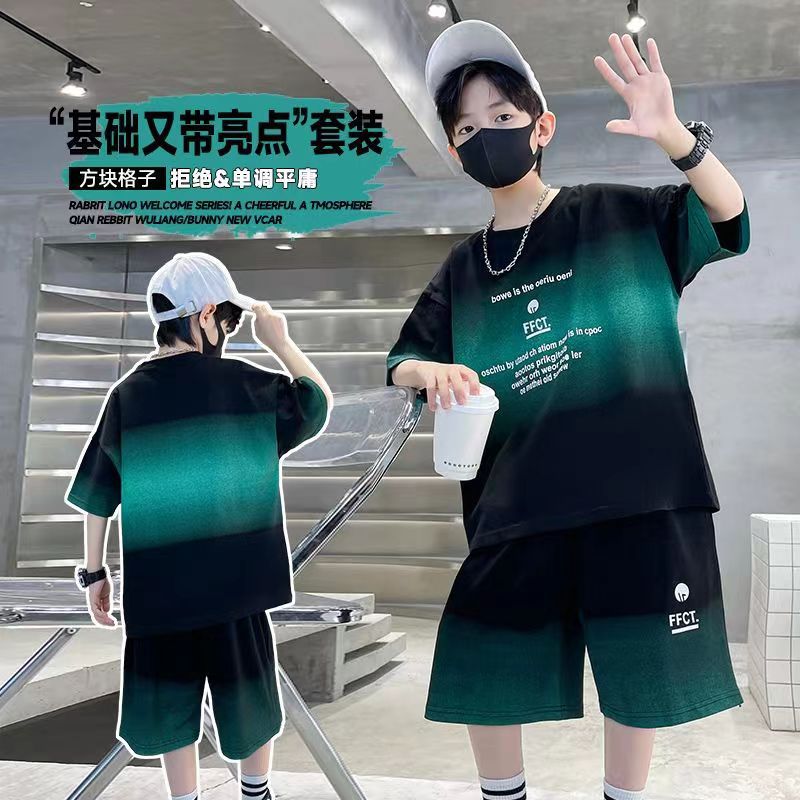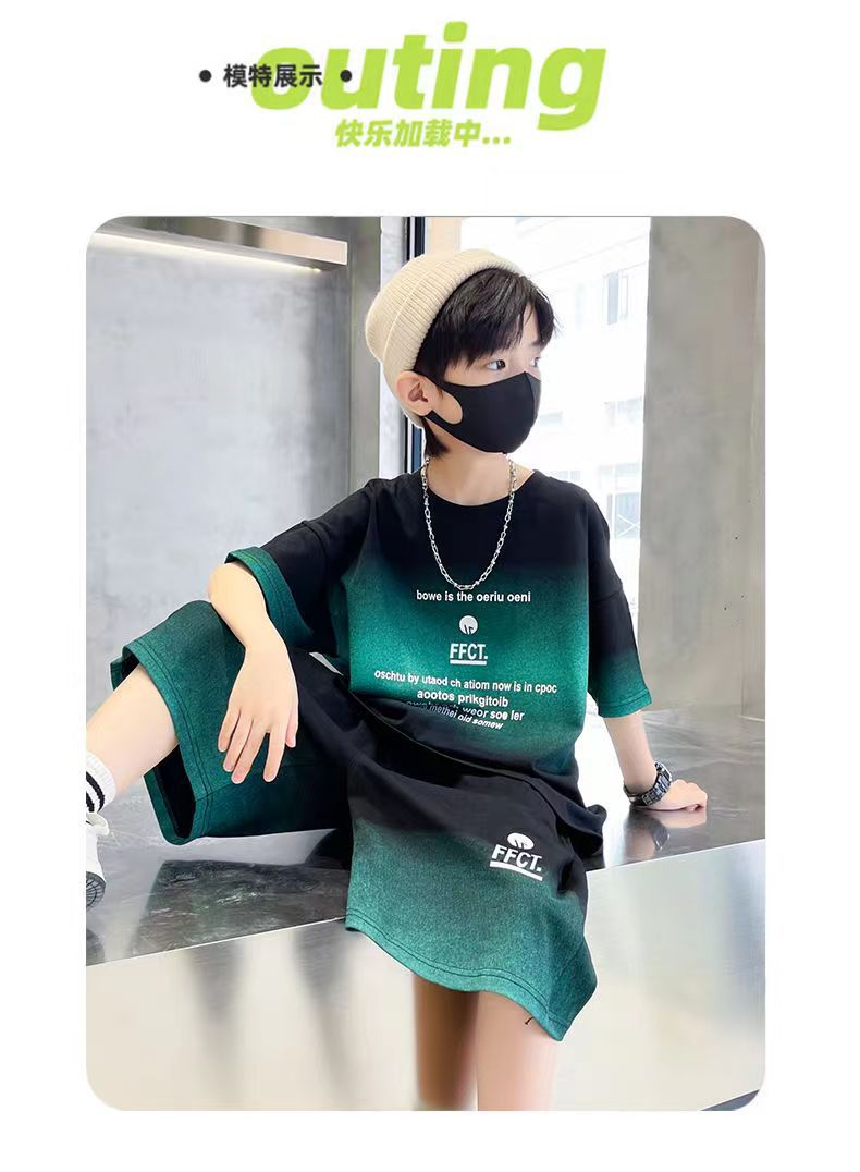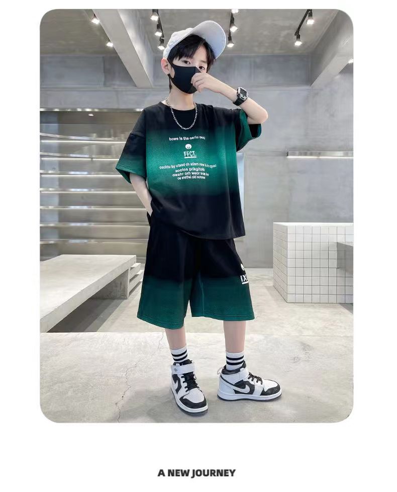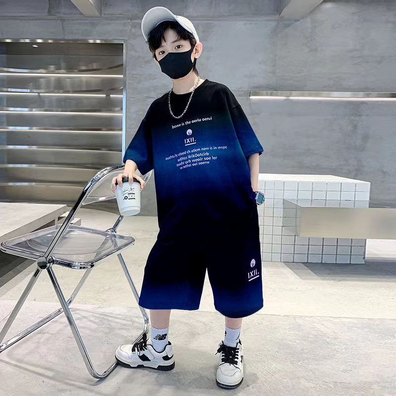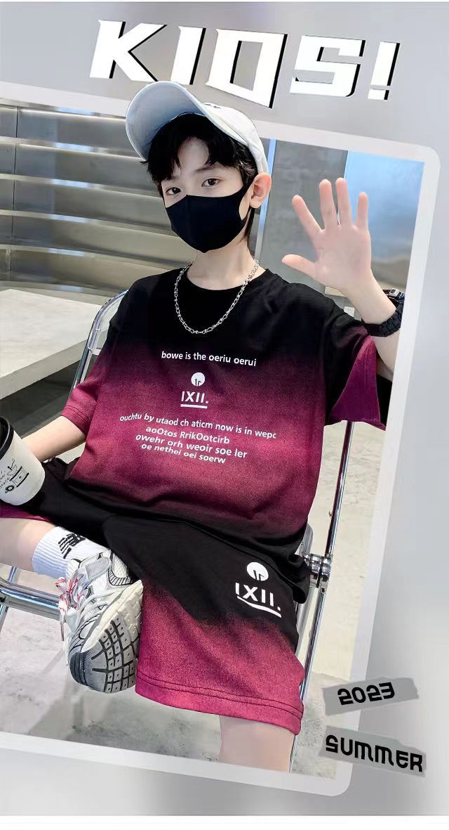 여름 남아 시원하고 멋진 한국식 반팔 양복, 큰 어린이를 위한 패셔너블한 스트리트 스타일 아동 여름 캐주얼 루즈 스포츠웨어스토어 가기