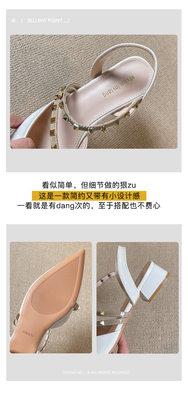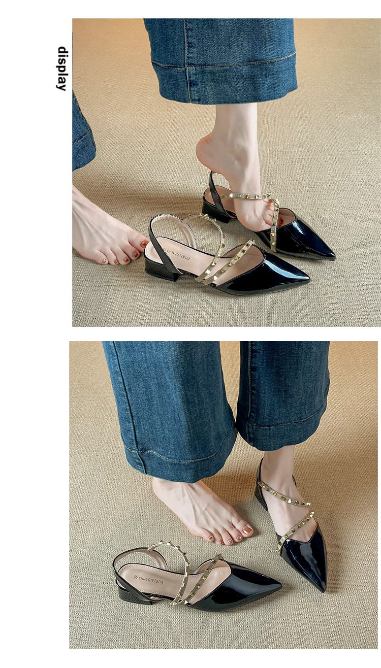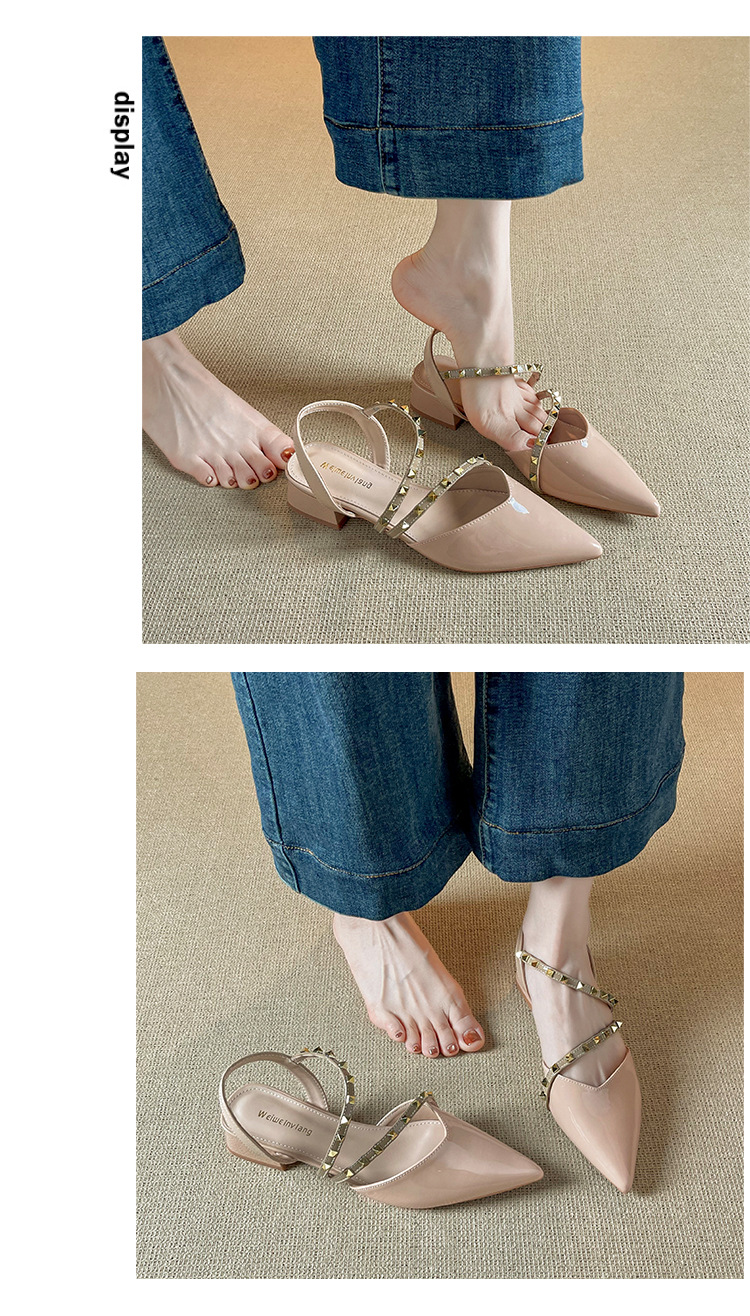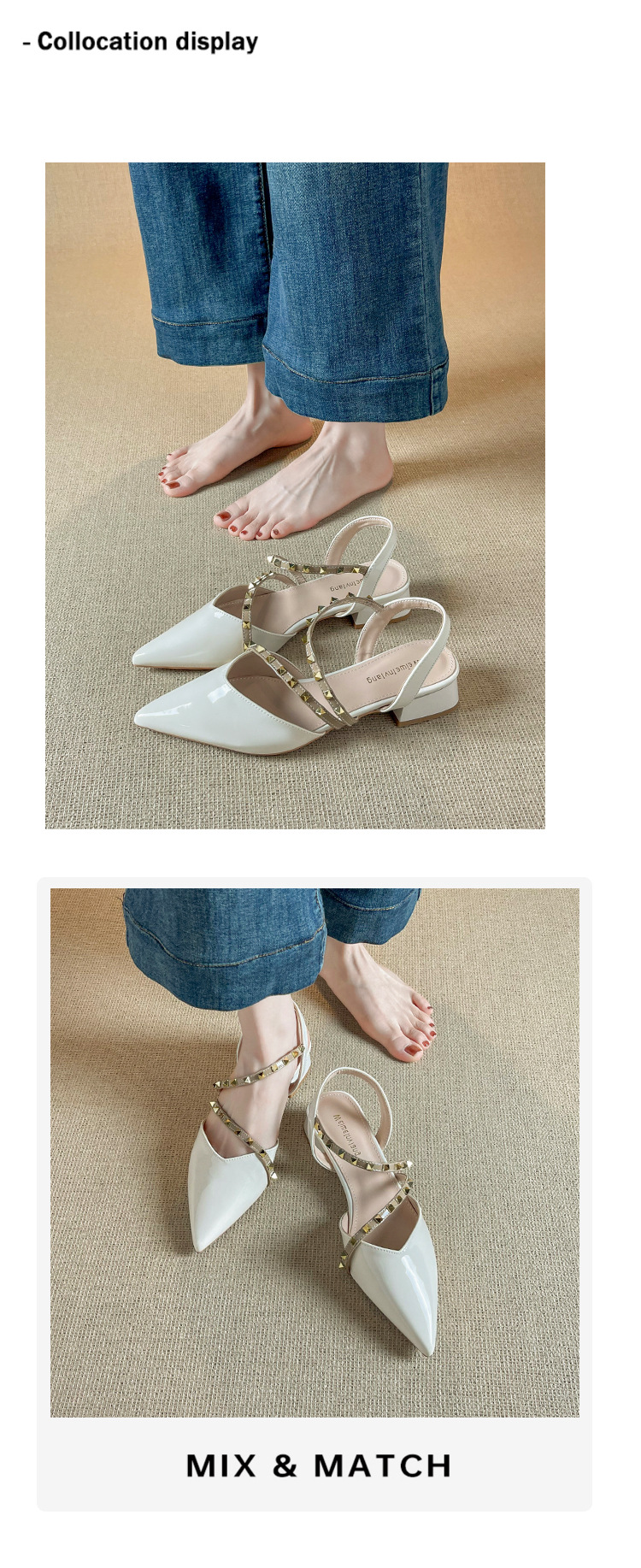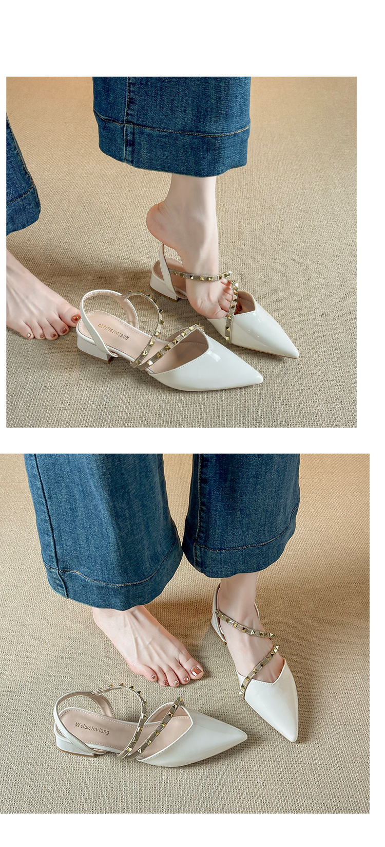 여성을위한 프렌치 포인티드 토 리벳 발가락 샌들 여름 2025 새로운 요정 스타일 빈 신발 대형 여성 신발 41 ~ 43스토어 가기