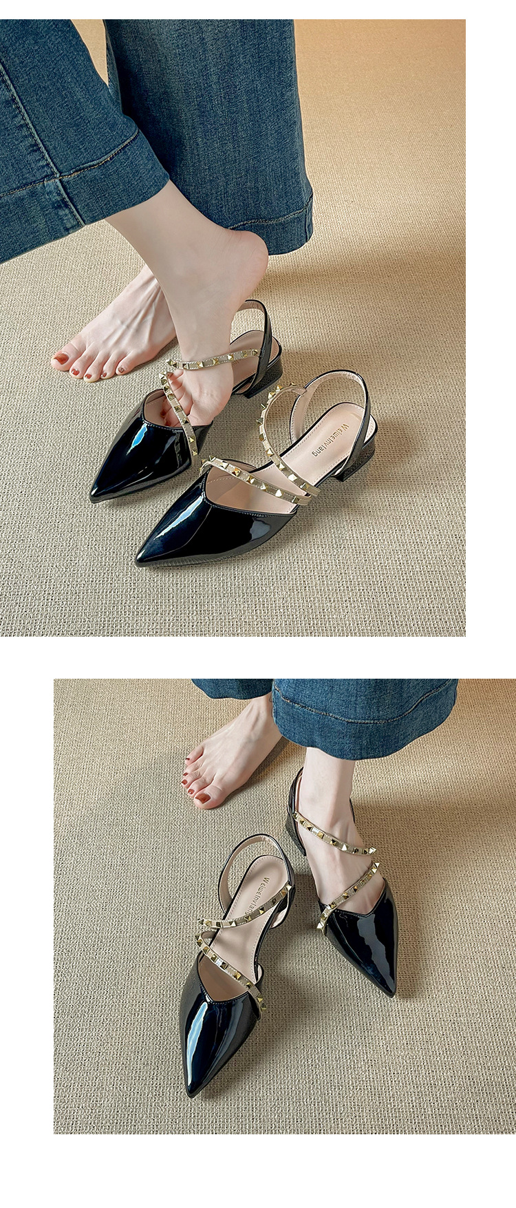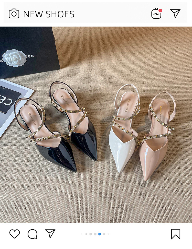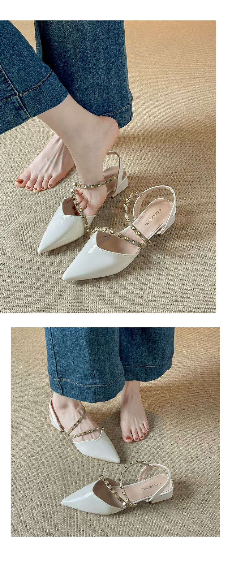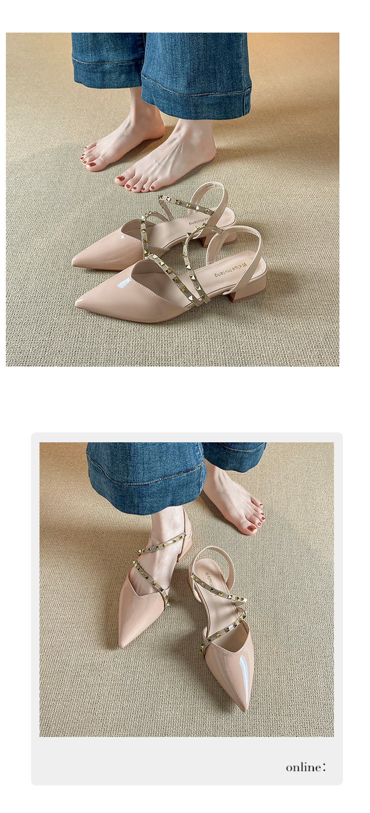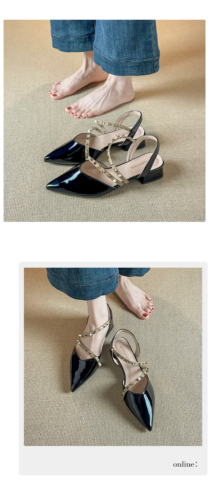 여성을위한 프렌치 포인티드 토 리벳 발가락 샌들 여름 2025 새로운 요정 스타일 빈 신발 대형 여성 신발 41 ~ 43스토어 가기