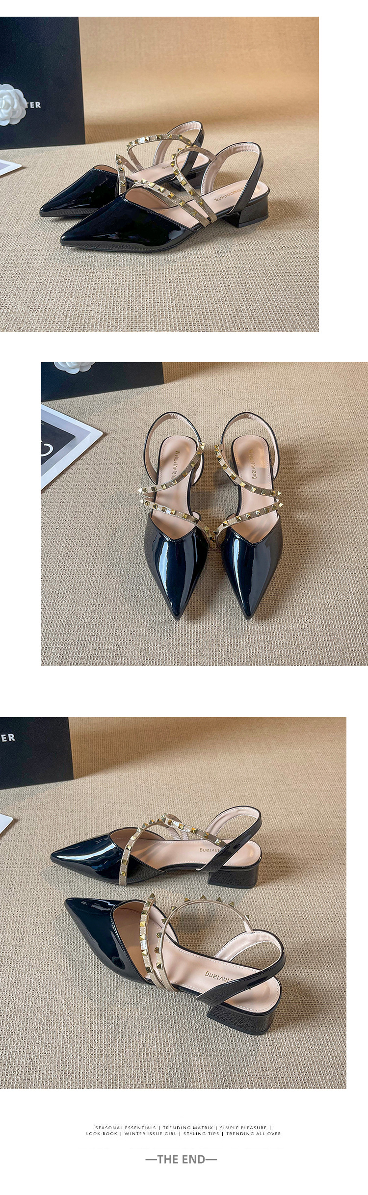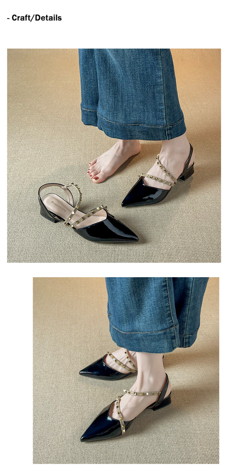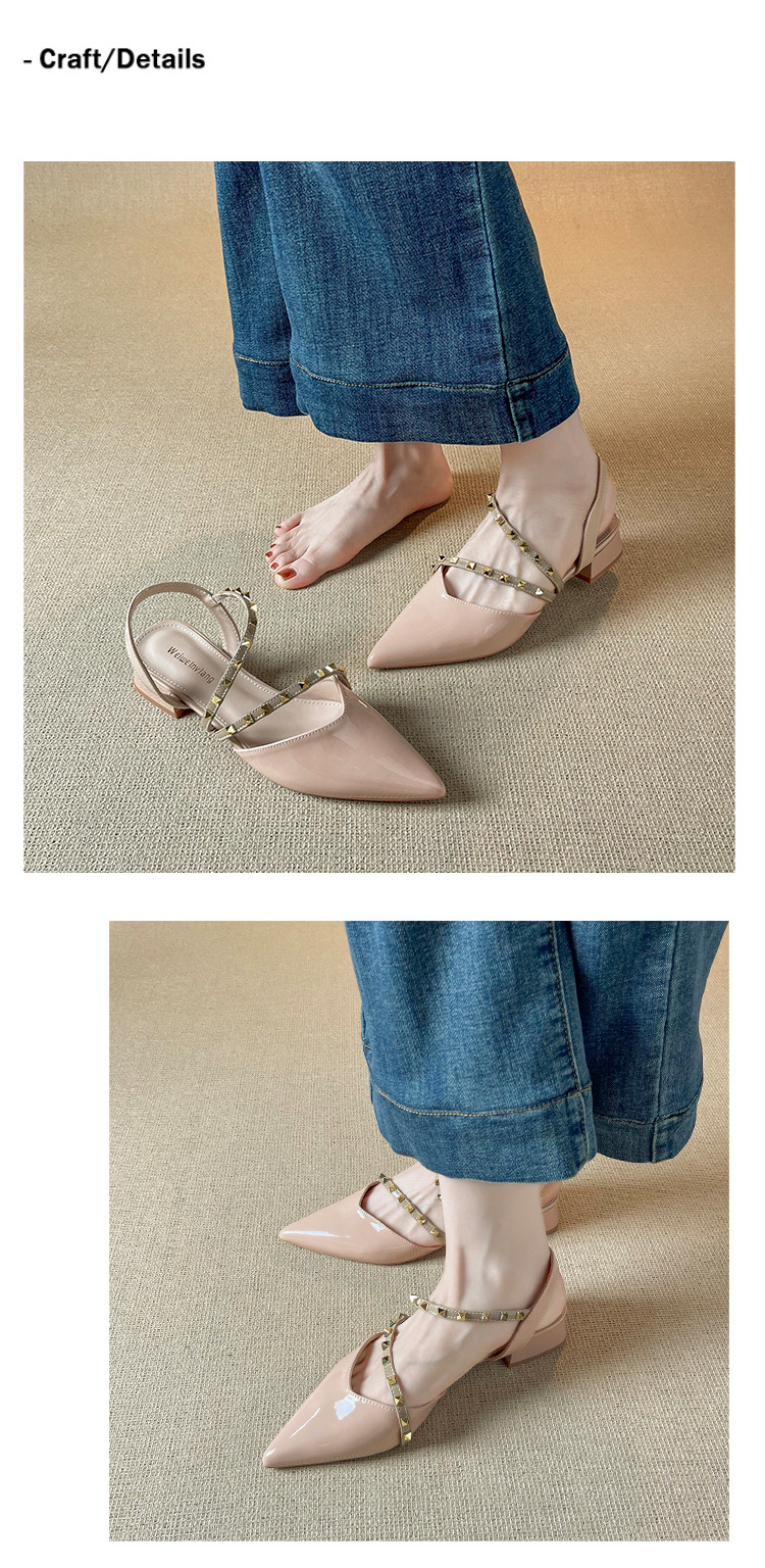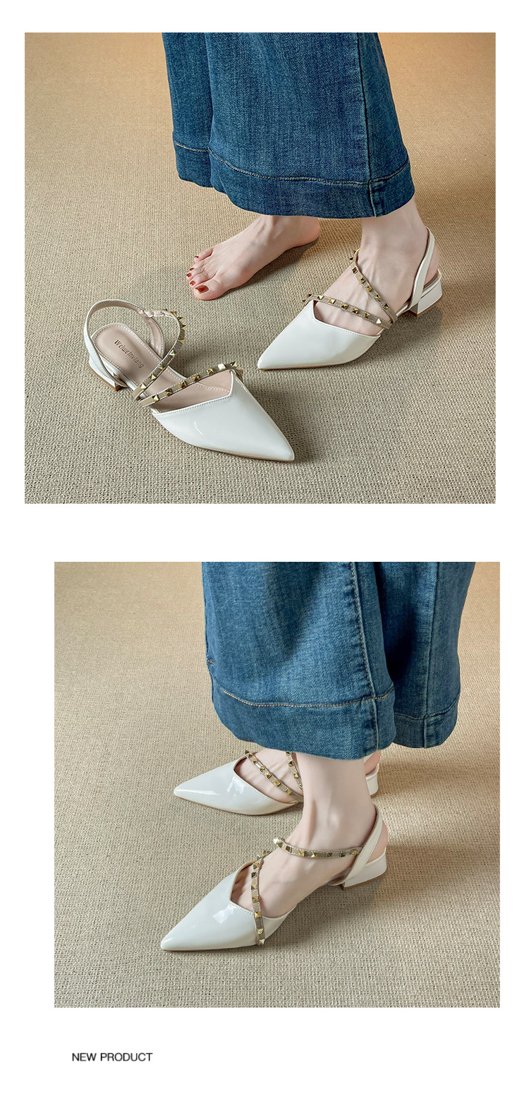 여성을위한 프렌치 포인티드 토 리벳 발가락 샌들 여름 2025 새로운 요정 스타일 빈 신발 대형 여성 신발 41 ~ 43
