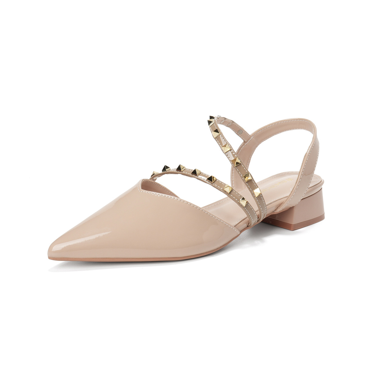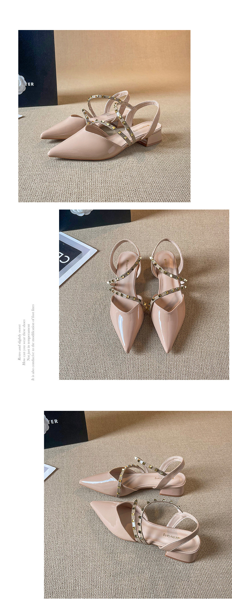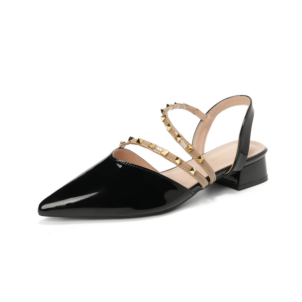여성을위한 프렌치 포인티드 토 리벳 발가락 샌들 여름 2025 새로운 요정 스타일 빈 신발 대형 여성 신발 41 ~ 43