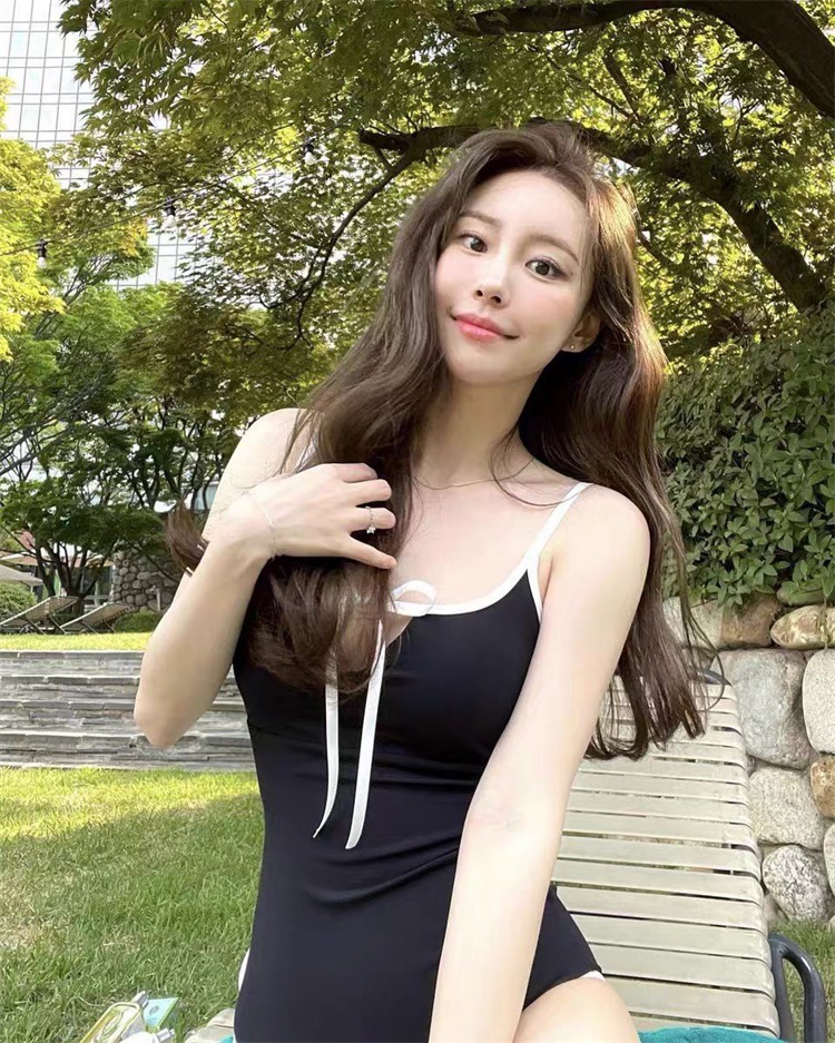 일본 순수한 욕망 스타일 수영복, 여성스러운 삼각형 원피스 서스펜더, 심플하고 슬림하며 패셔너블한 새로운 단색 온천 수영복스토어 가기