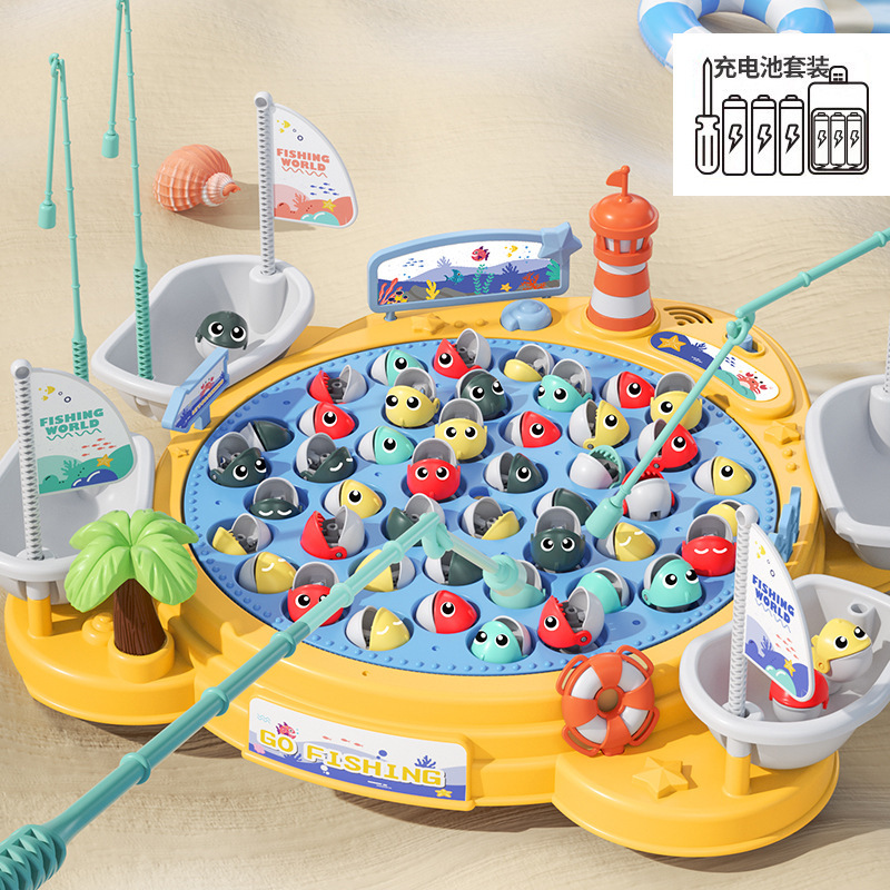 전기 회전 자기 낚시 장난감 어린이 조기 교육 부모-자식 대화 형 조명 음악 회전 대형 낚시 플레이트 선물스토어 가기
