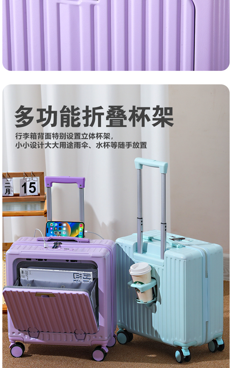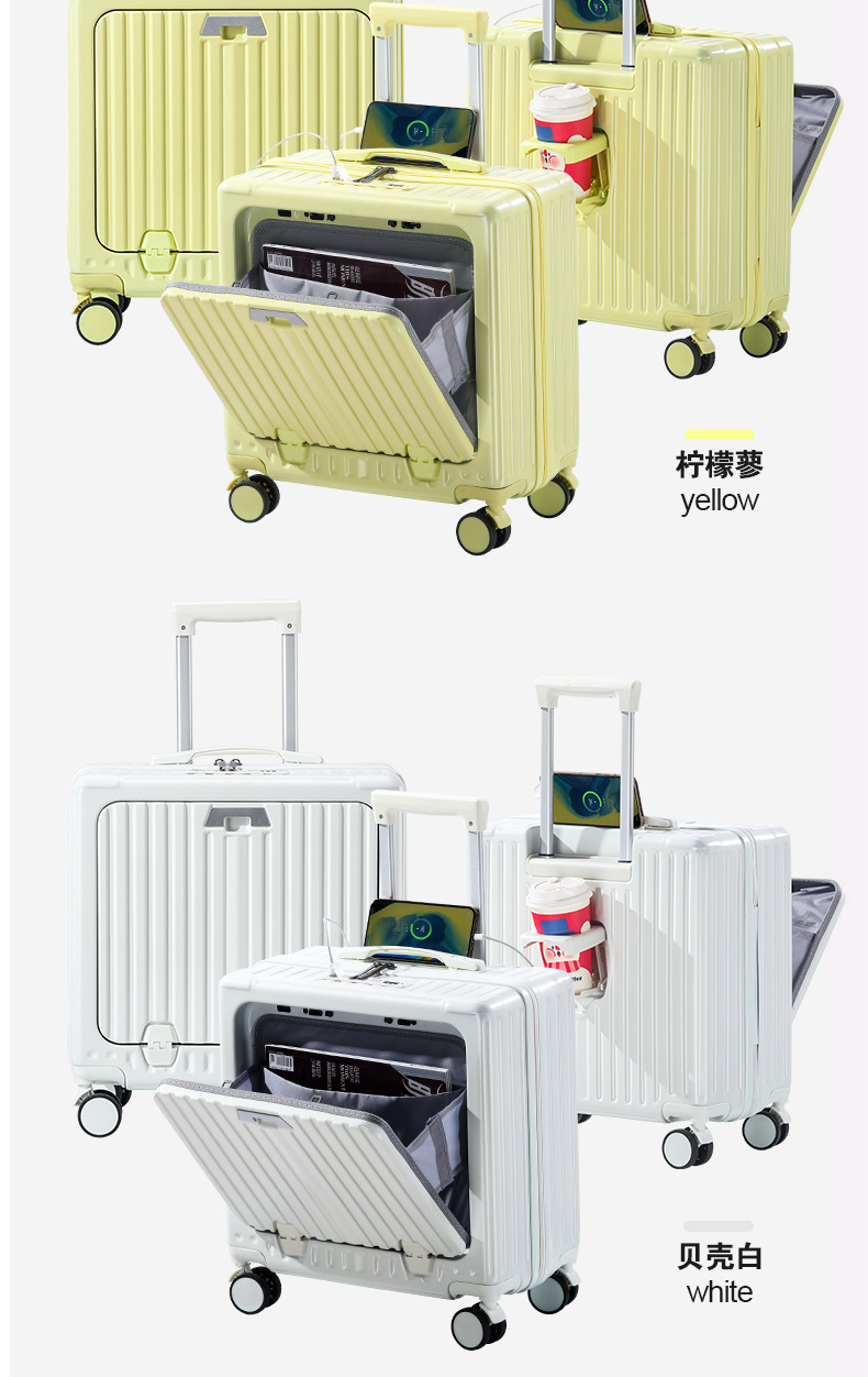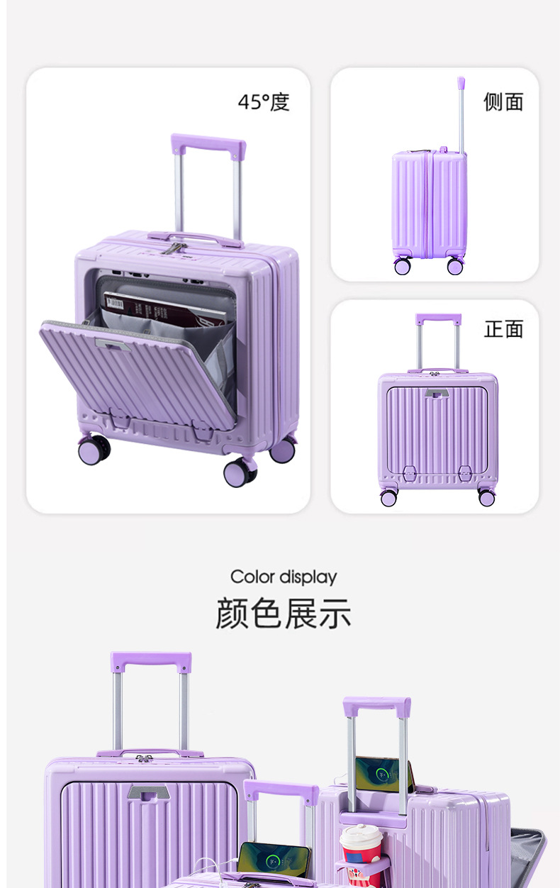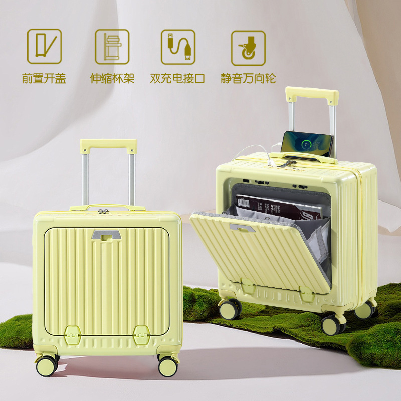 새로운 전면 개방형 다기능 미니 가방 인치 소형 탑승 케이스 어린이 트롤리 케이스 암호 가죽 케이스