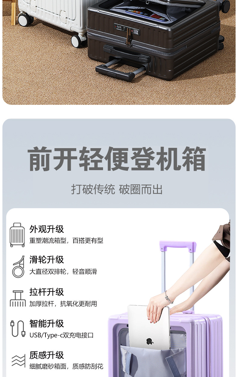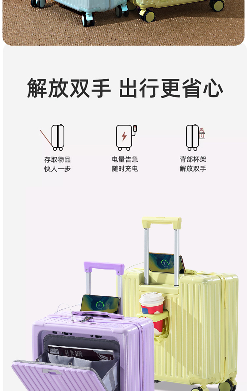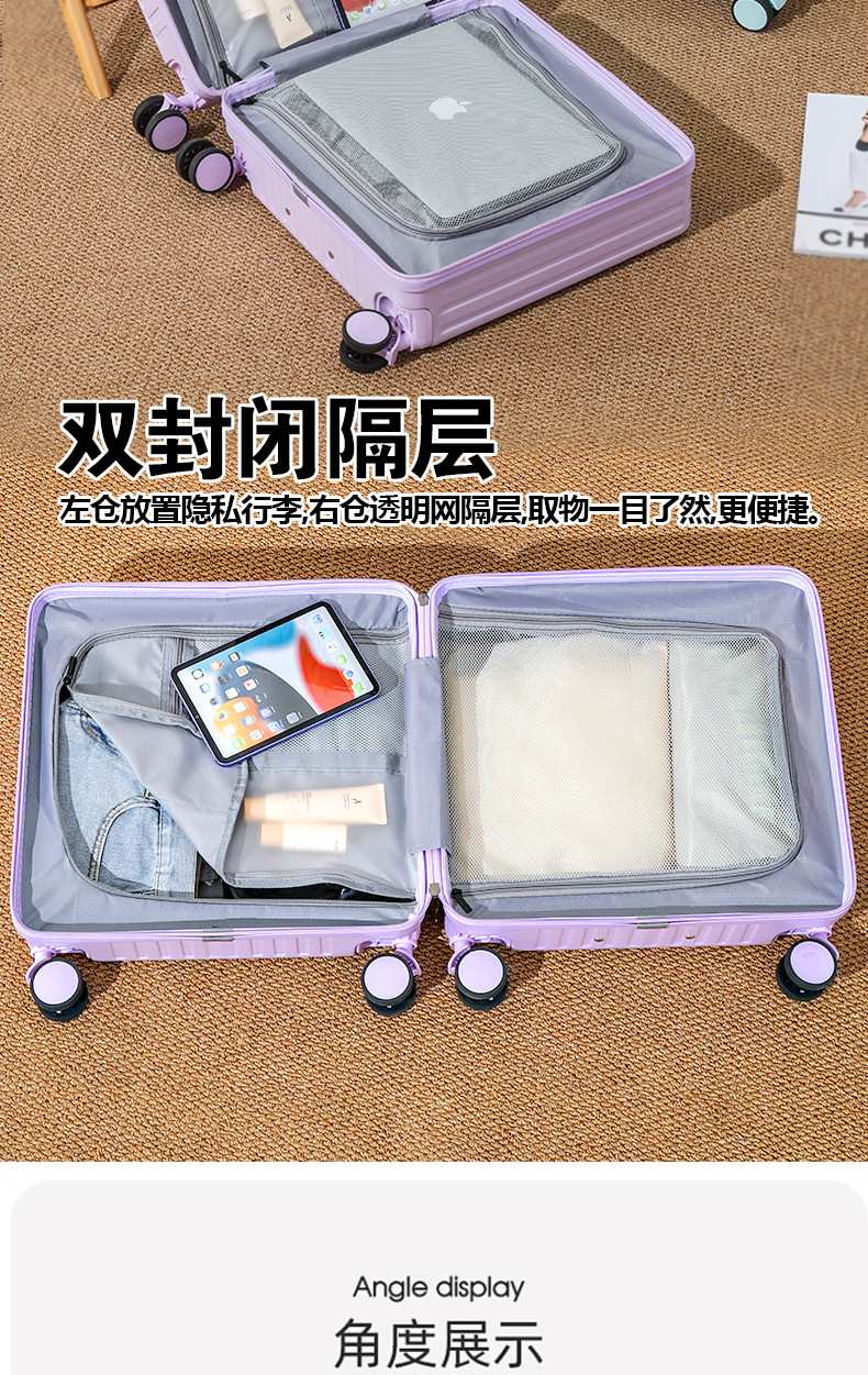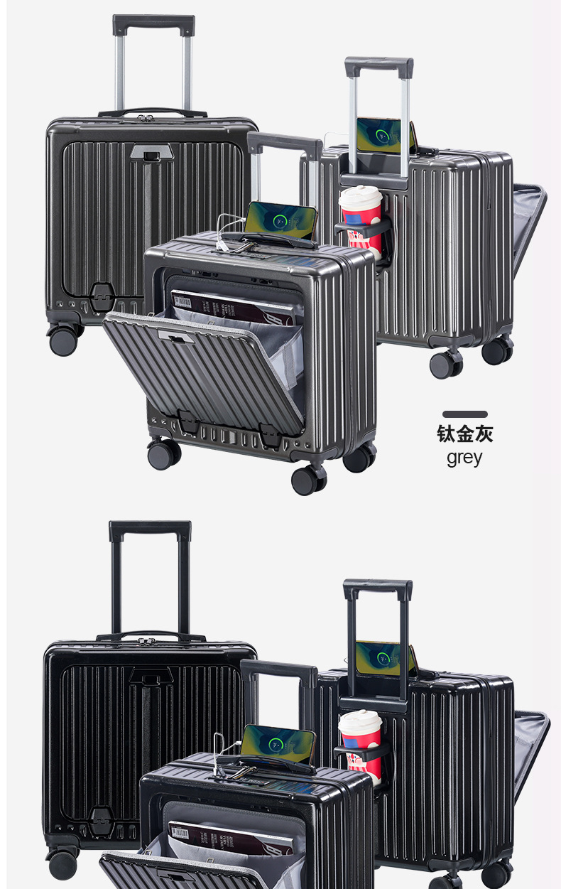 새로운 전면 개방형 다기능 미니 가방 인치 소형 탑승 케이스 어린이 트롤리 케이스 암호 가죽 케이스