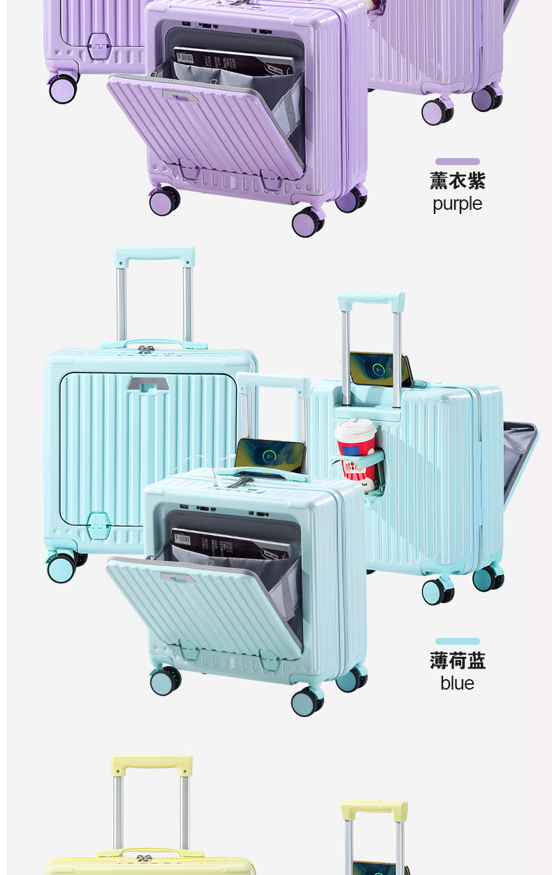 새로운 전면 개방형 다기능 미니 가방 인치 소형 탑승 케이스 어린이 트롤리 케이스 암호 가죽 케이스스토어 가기