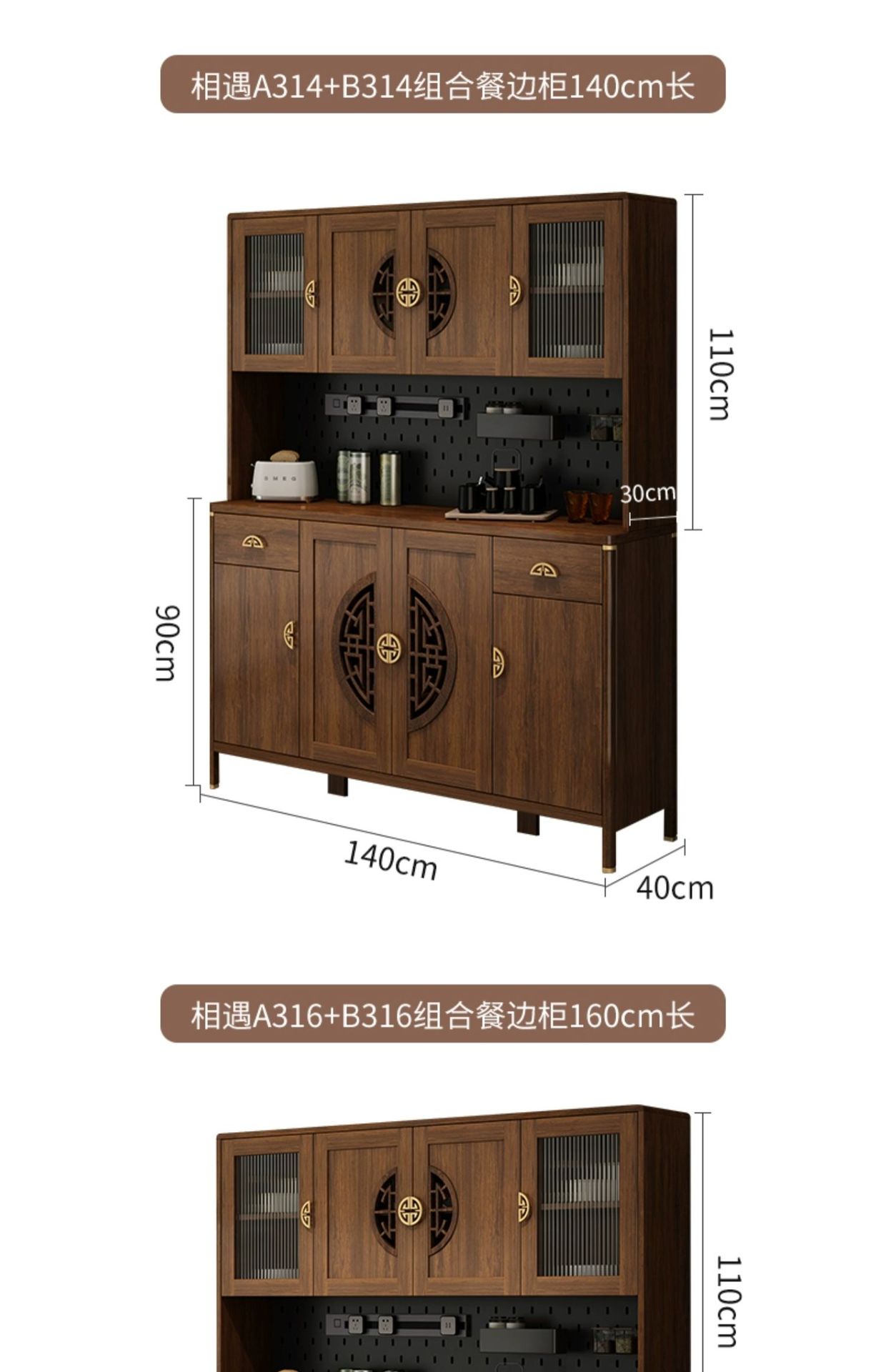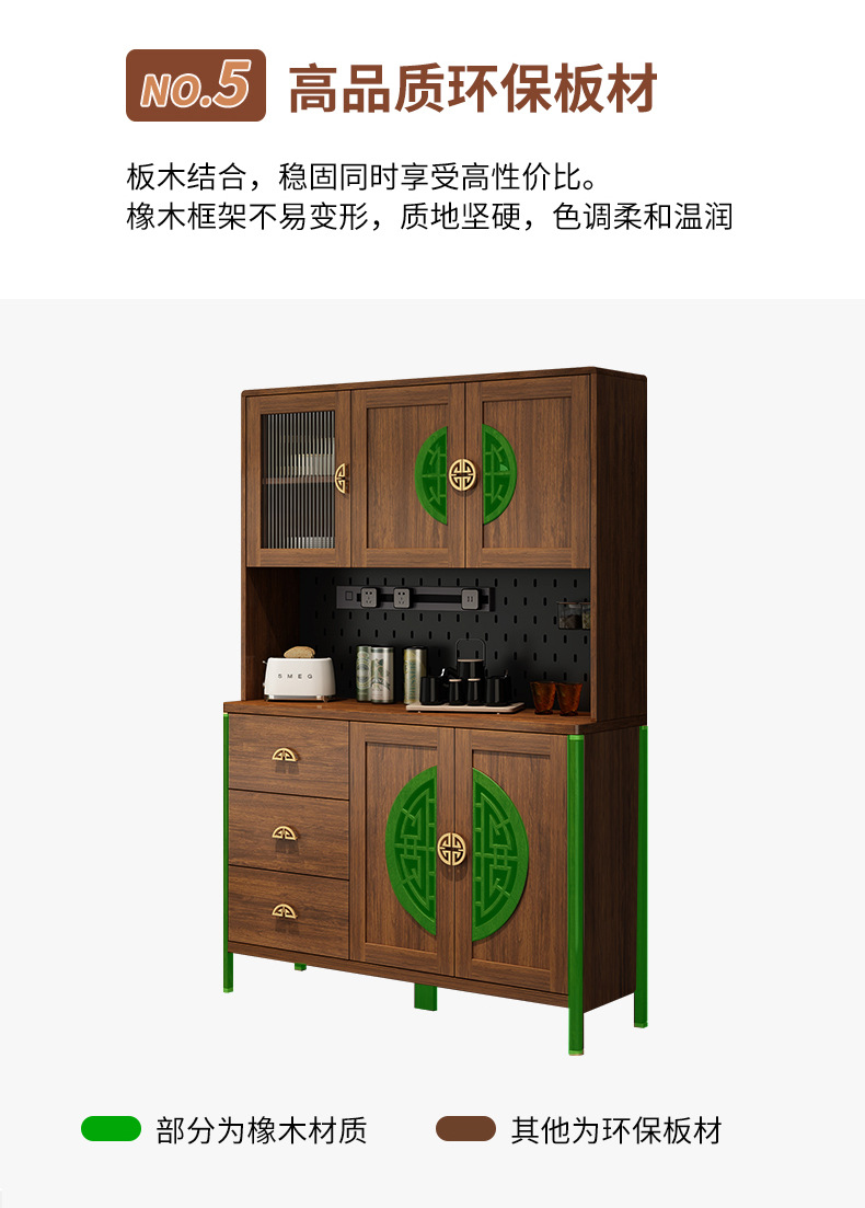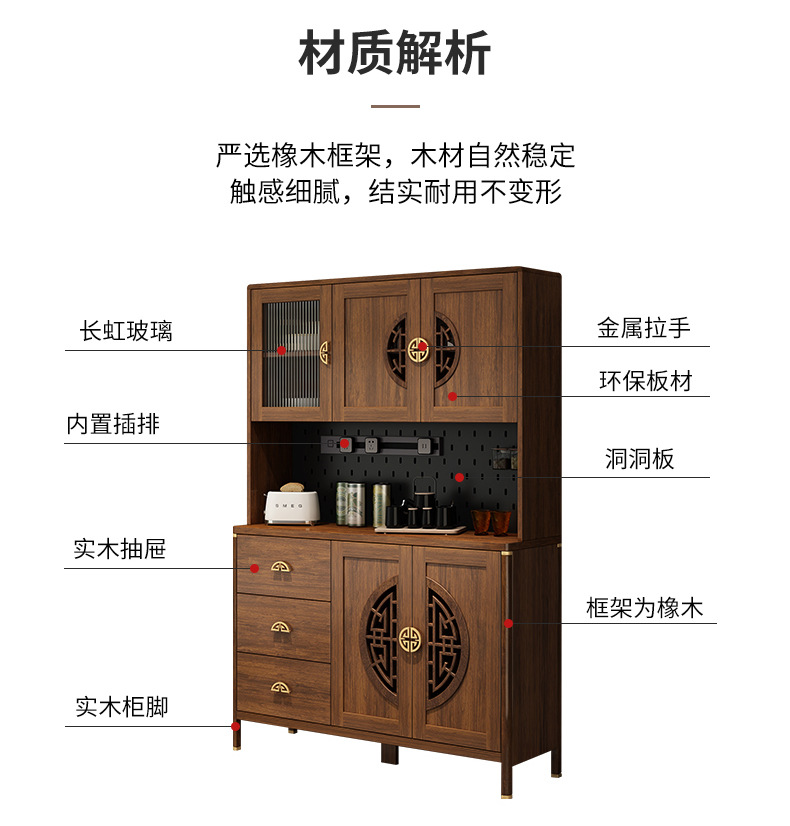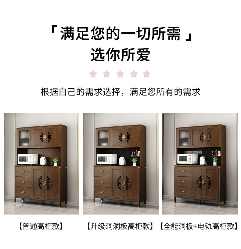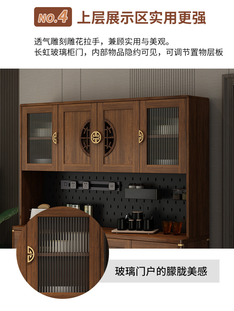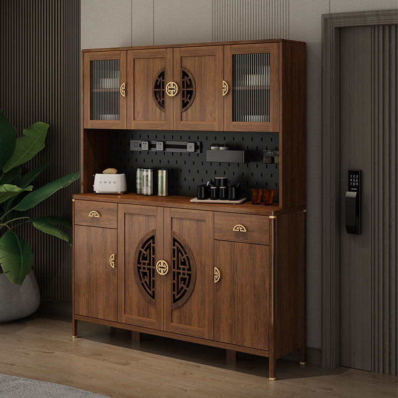 새로운 중국 스타일 찬장 단단한 나무 프레임 사물함 주방 찬장 대용량 사물함 거실 벽 일체형 와인 캐비닛