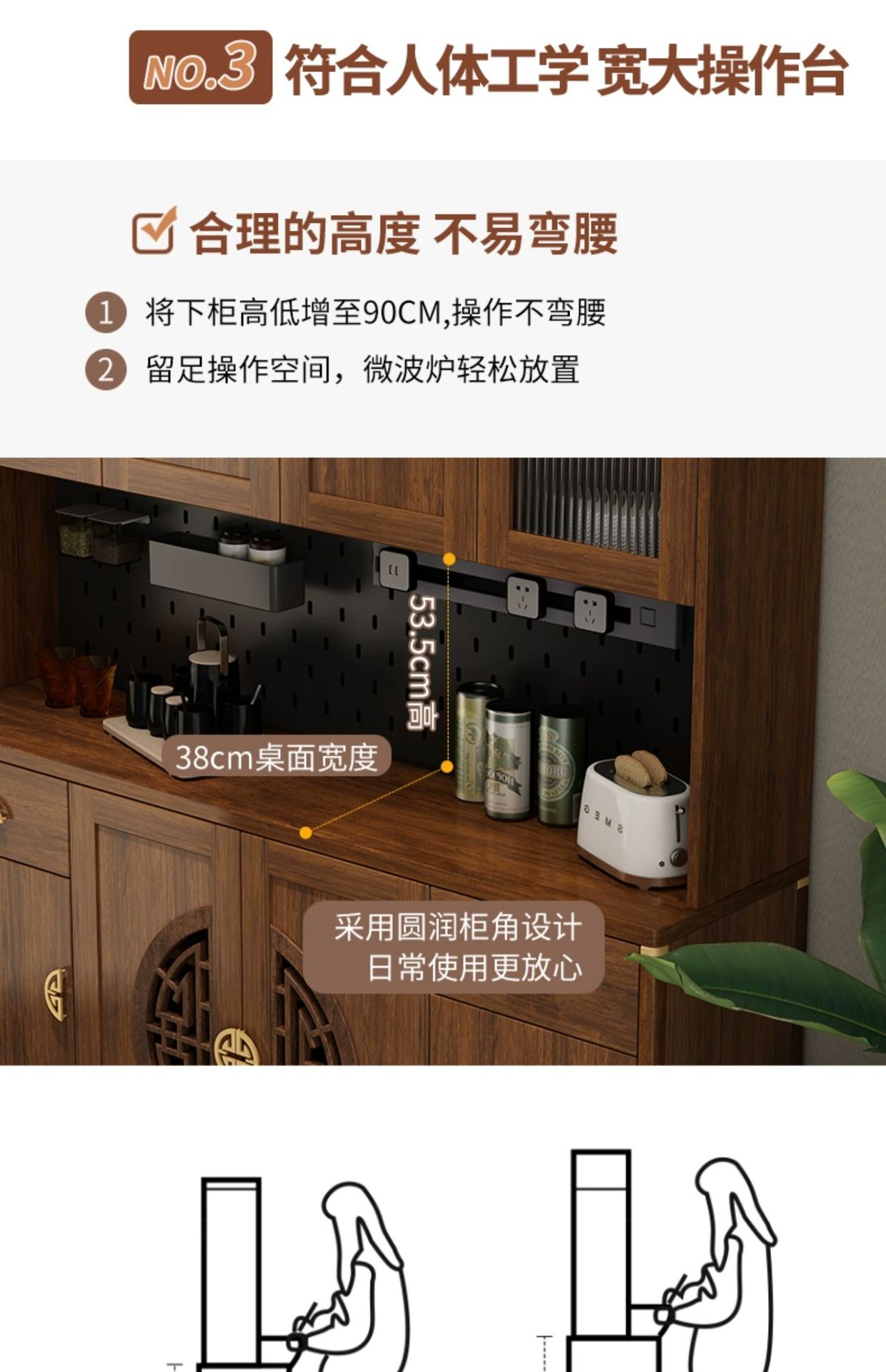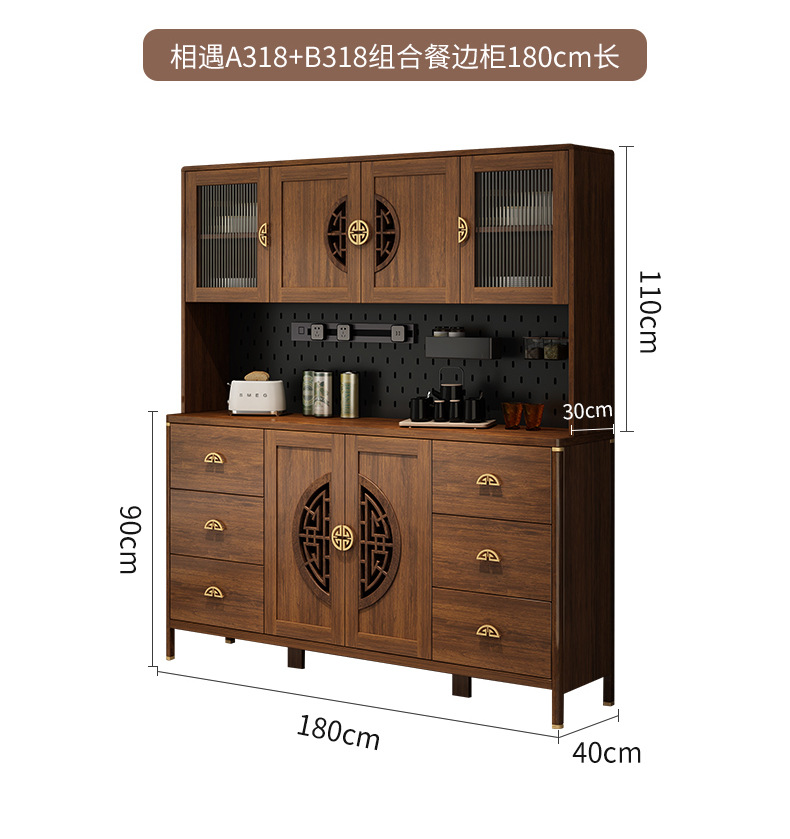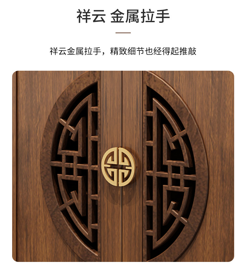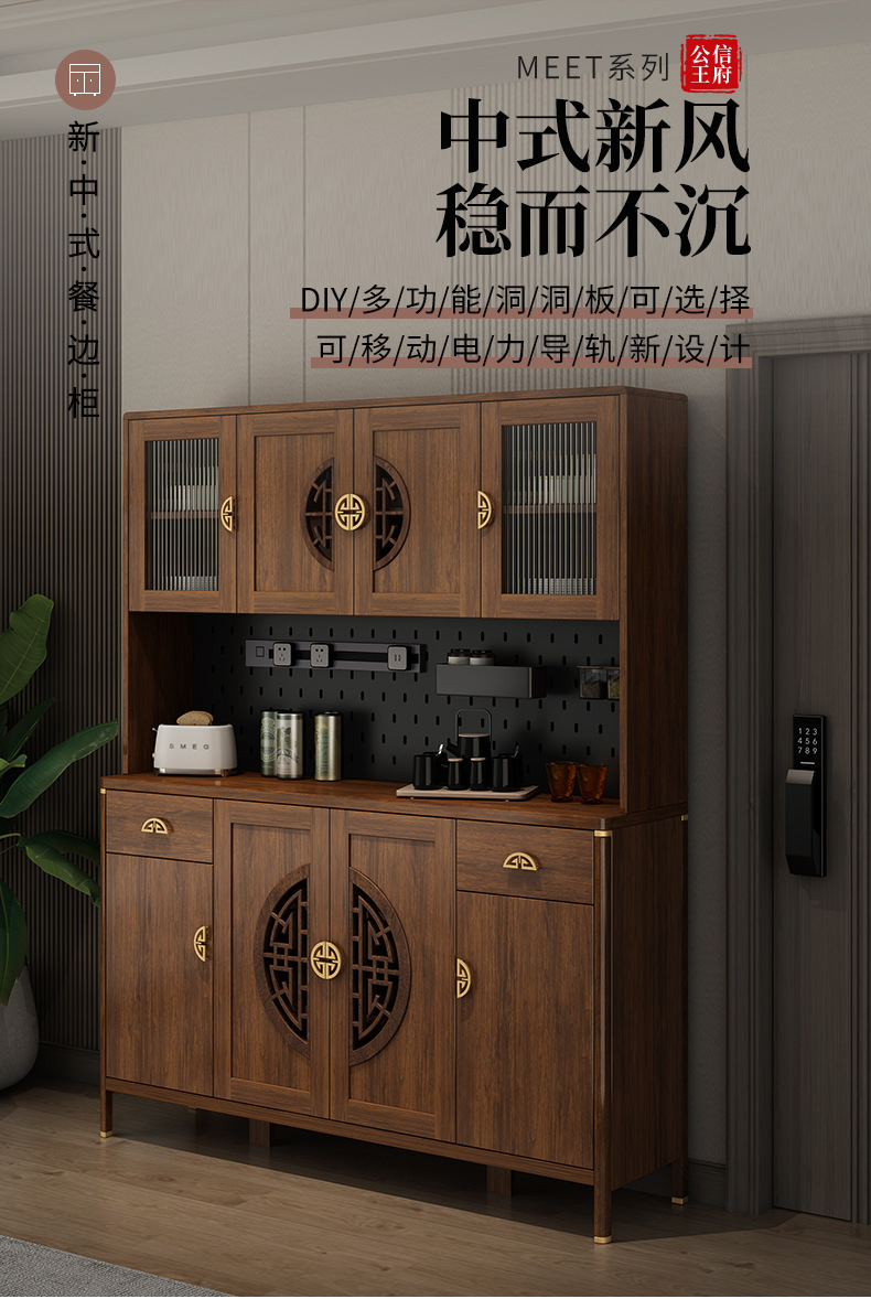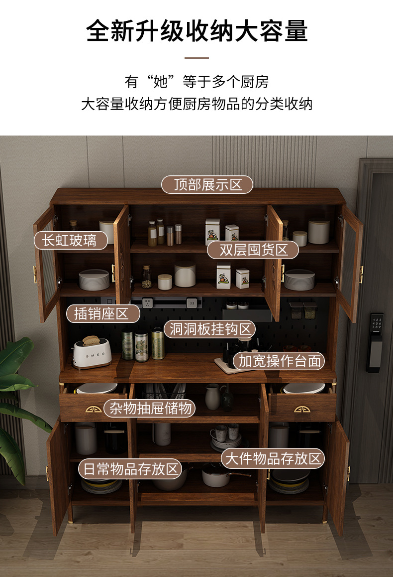 새로운 중국 스타일 찬장 단단한 나무 프레임 사물함 주방 찬장 대용량 사물함 거실 벽 일체형 와인 캐비닛