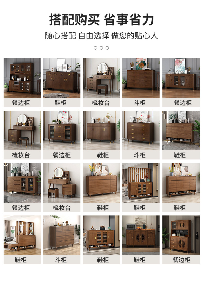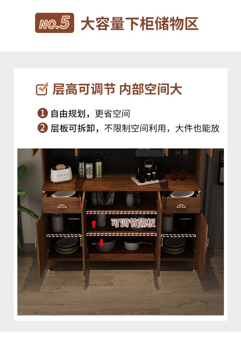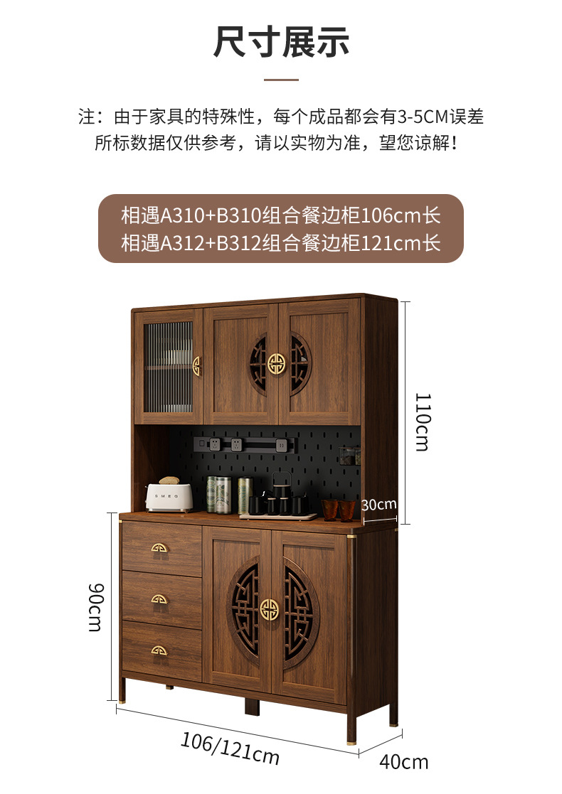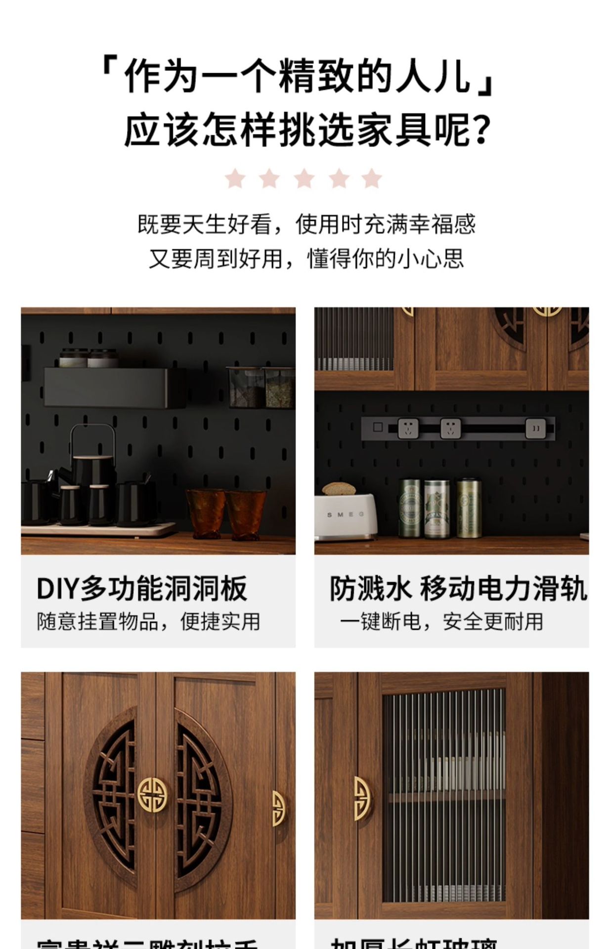 새로운 중국 스타일 찬장 단단한 나무 프레임 사물함 주방 찬장 대용량 사물함 거실 벽 일체형 와인 캐비닛